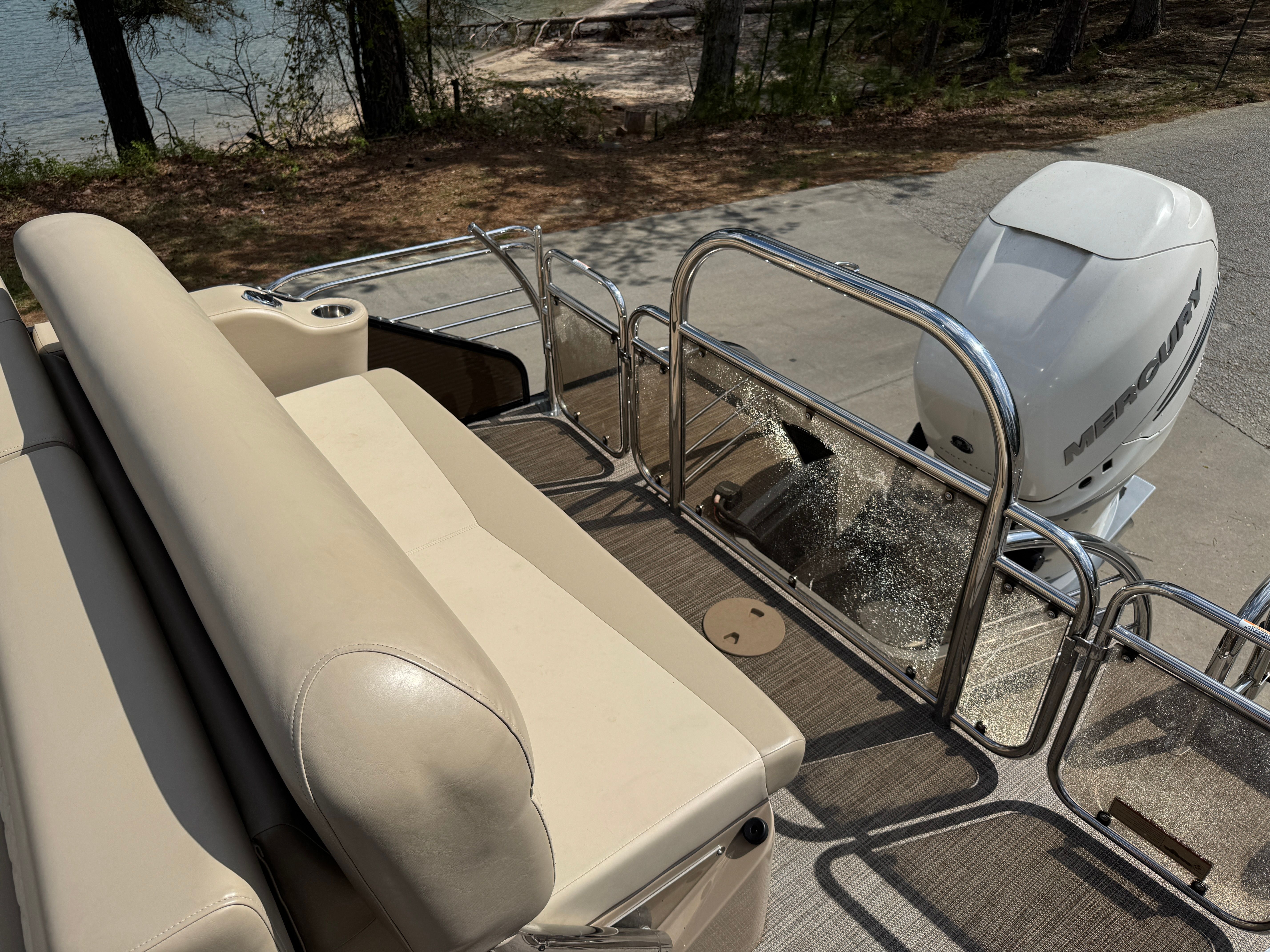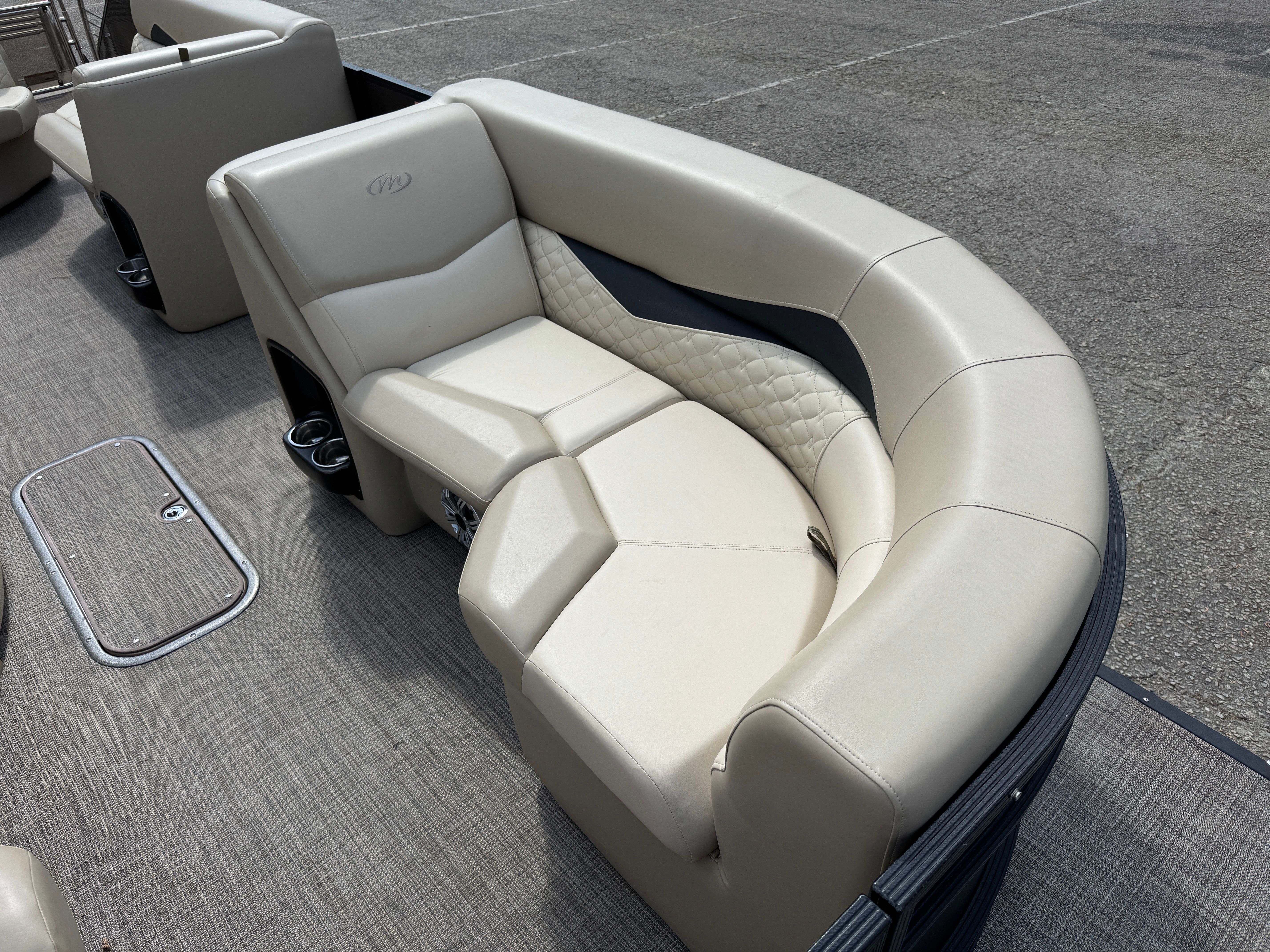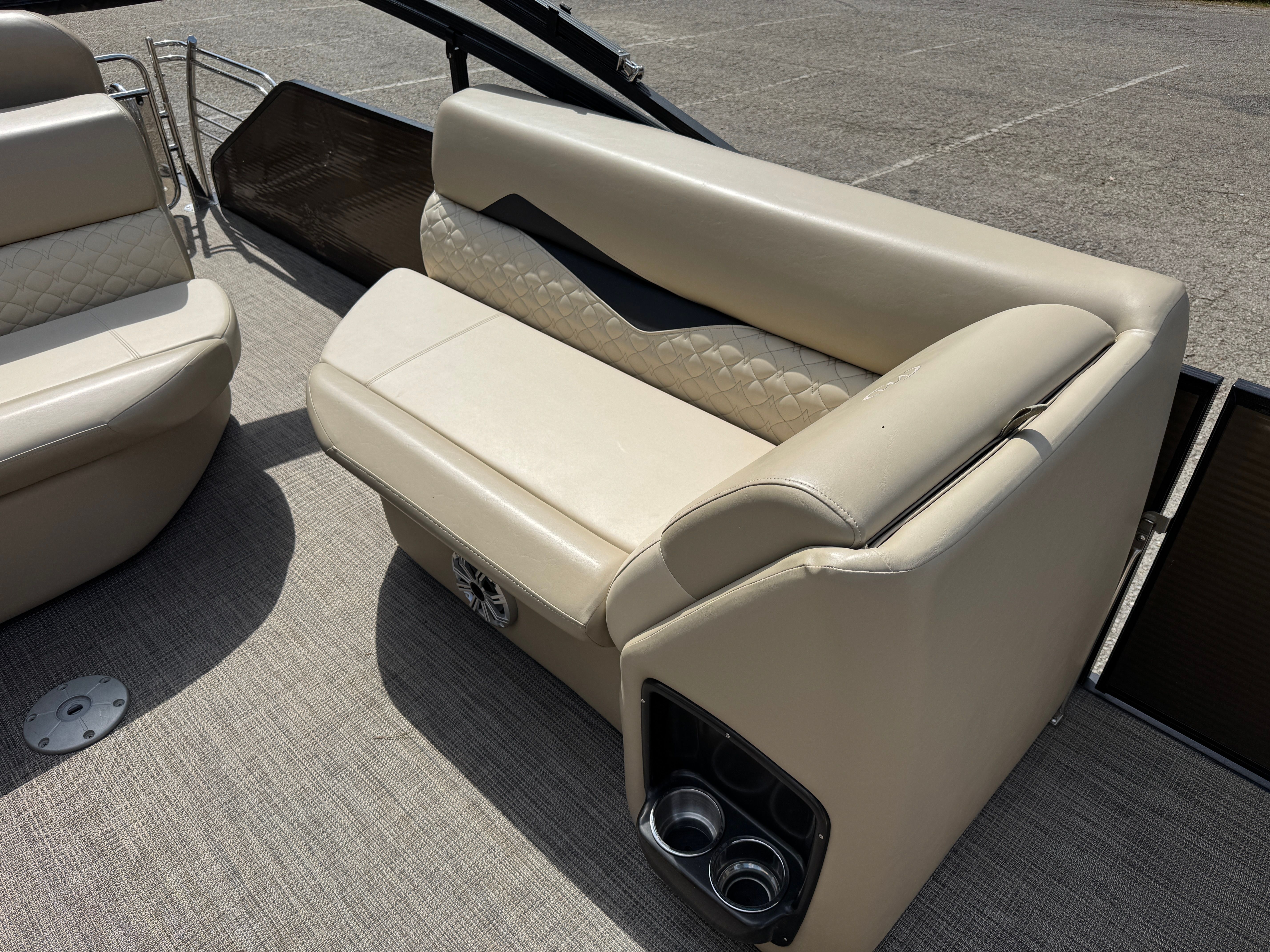 Under the hood, the Manitou SES SHP 25 is powered by a single engine delivering a robust 300 horsepower. With only 256 engine hours, this pontoon boat offers plenty of life and excitement for its next owner. The powerful engine ensures smooth acceleration, impressive top speeds, and the ability to handle a variety of water conditions with ease. Whether you’re towing water toys, cruising at a leisurely pace, or seeking a little adrenaline, the performance of this pontoon boat for sale is sure to impress.
