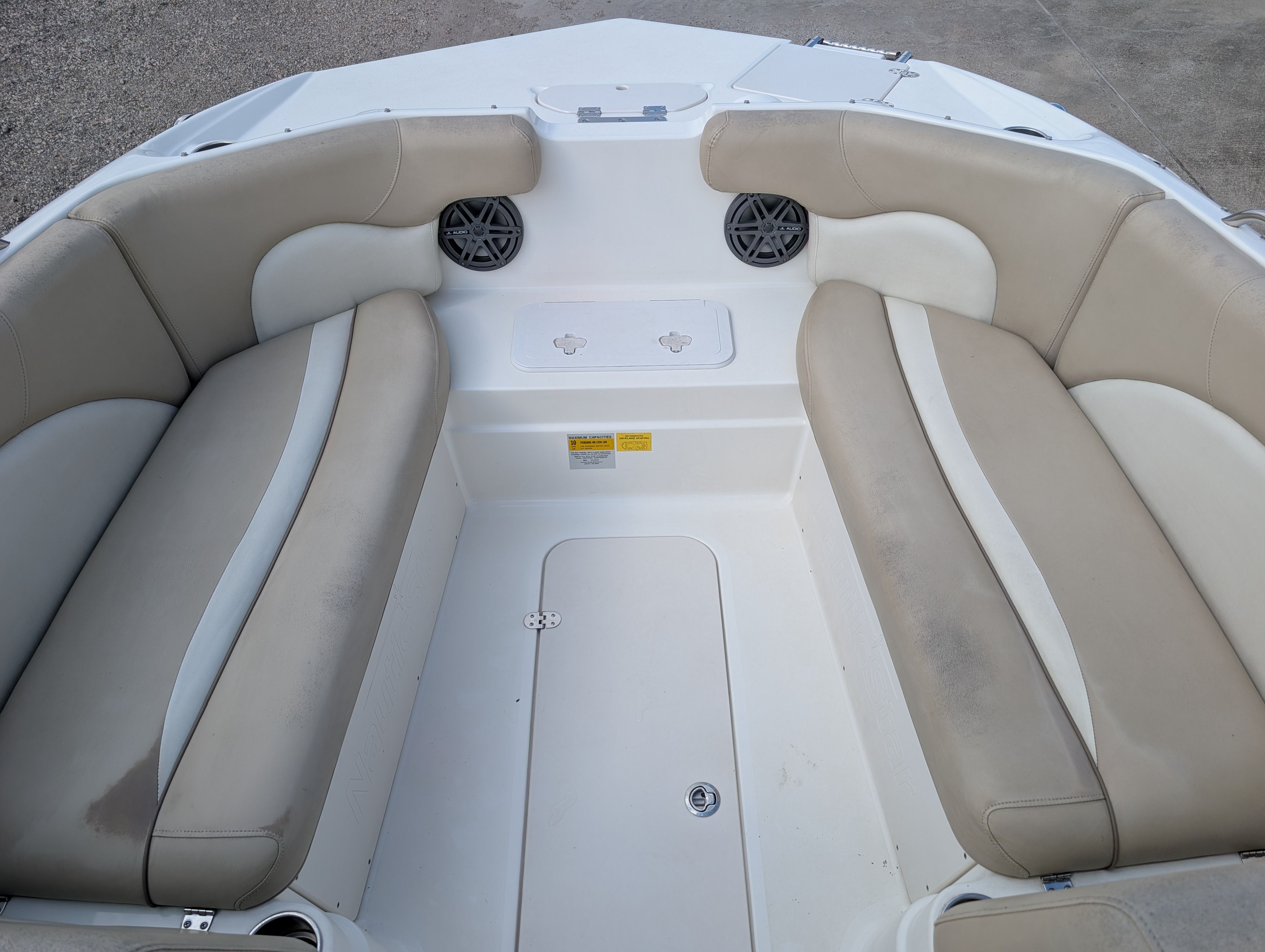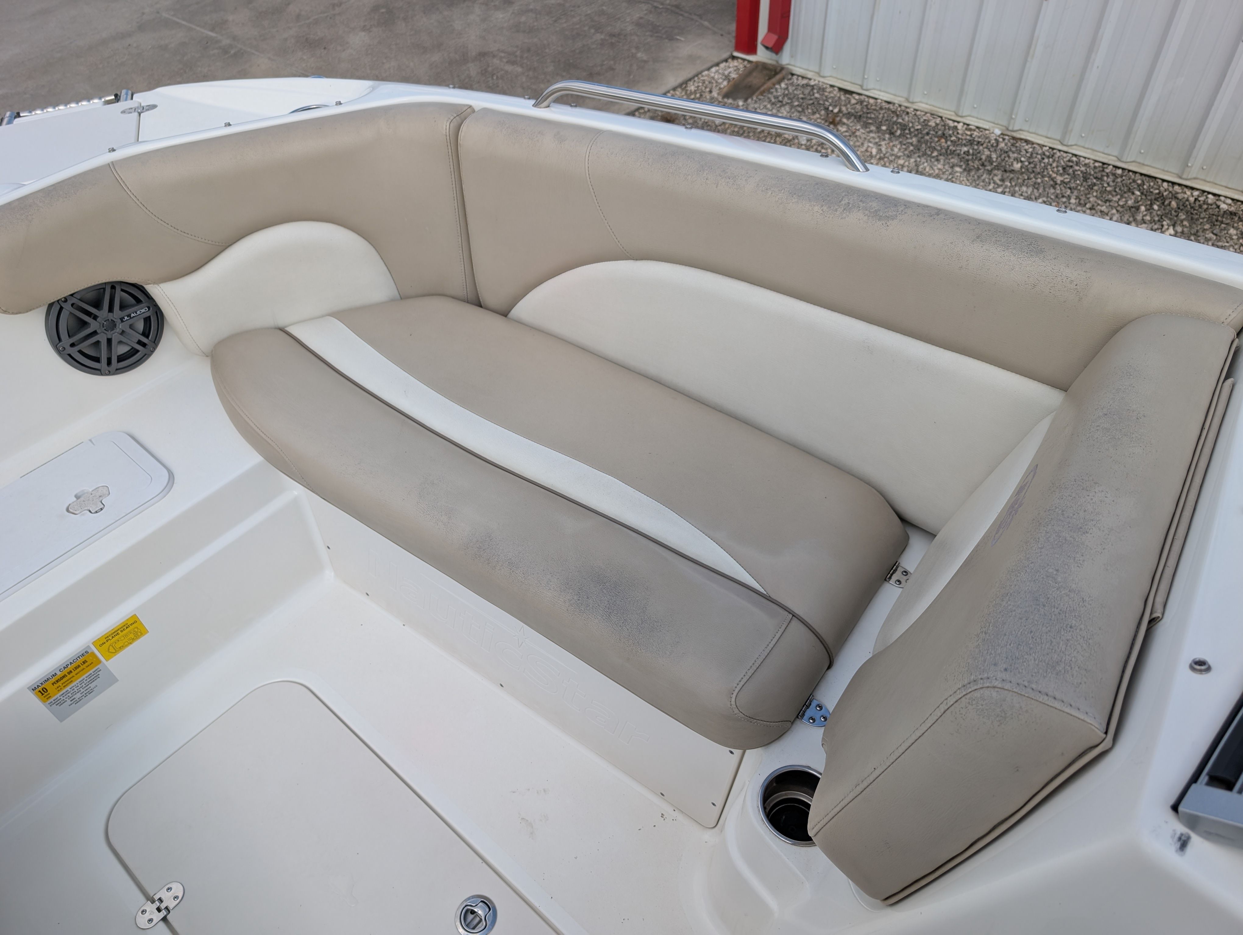 This Nauticstar boat for sale is packed with features that enhance both its functionality and comfort. The Dual Console design provides separate seating and storage areas, allowing for greater flexibility and convenience. The spacious cockpit and bow seating areas are perfect for relaxing, socializing, or enjoying a picnic on the water. The ergonomic helm station offers excellent visibility and easy access to controls, ensuring a stress-free driving experience. Ample storage compartments throughout the boat make it easy to stow away gear, life jackets, and other essentials, keeping the deck clutter-free and organized.