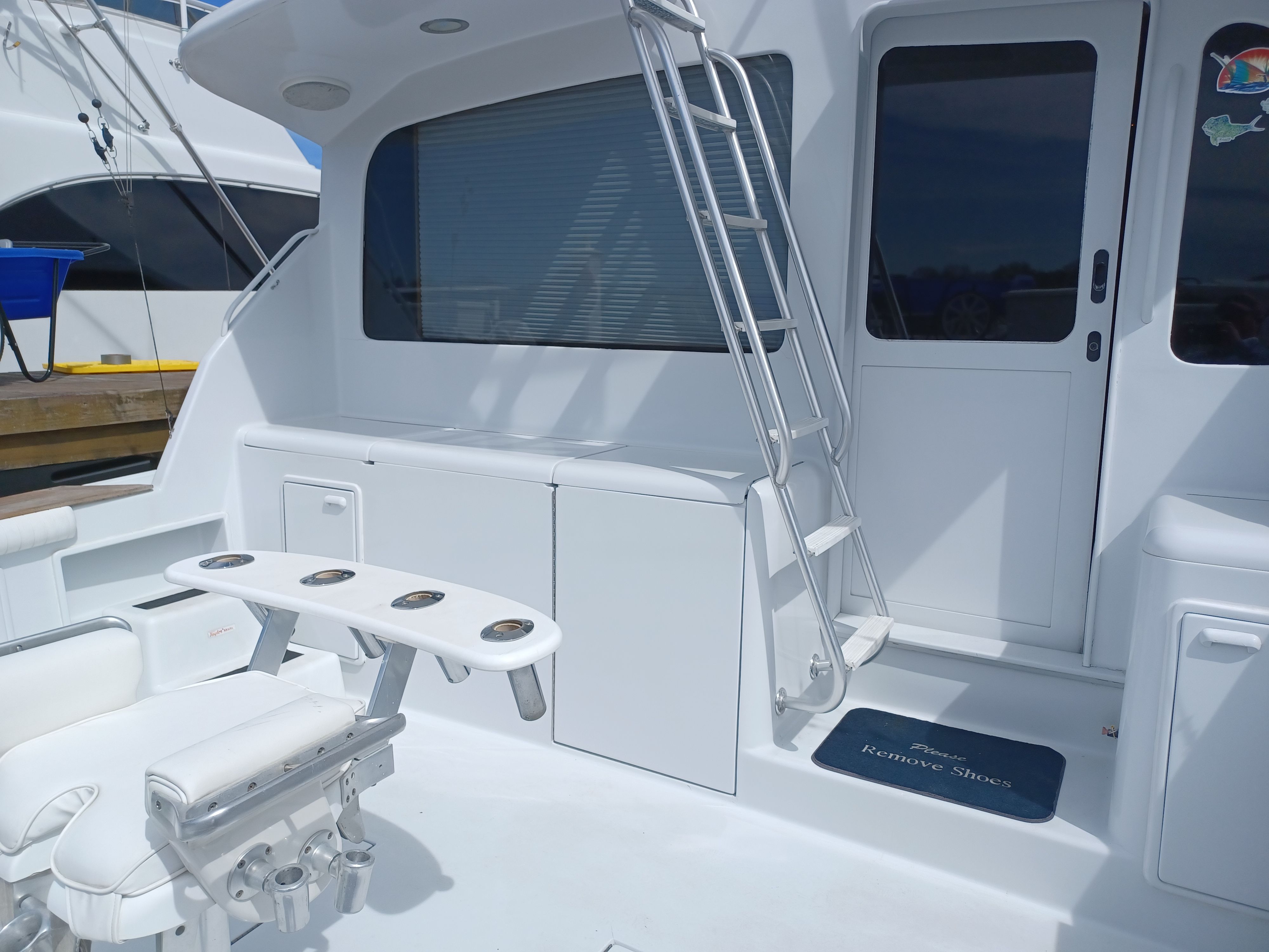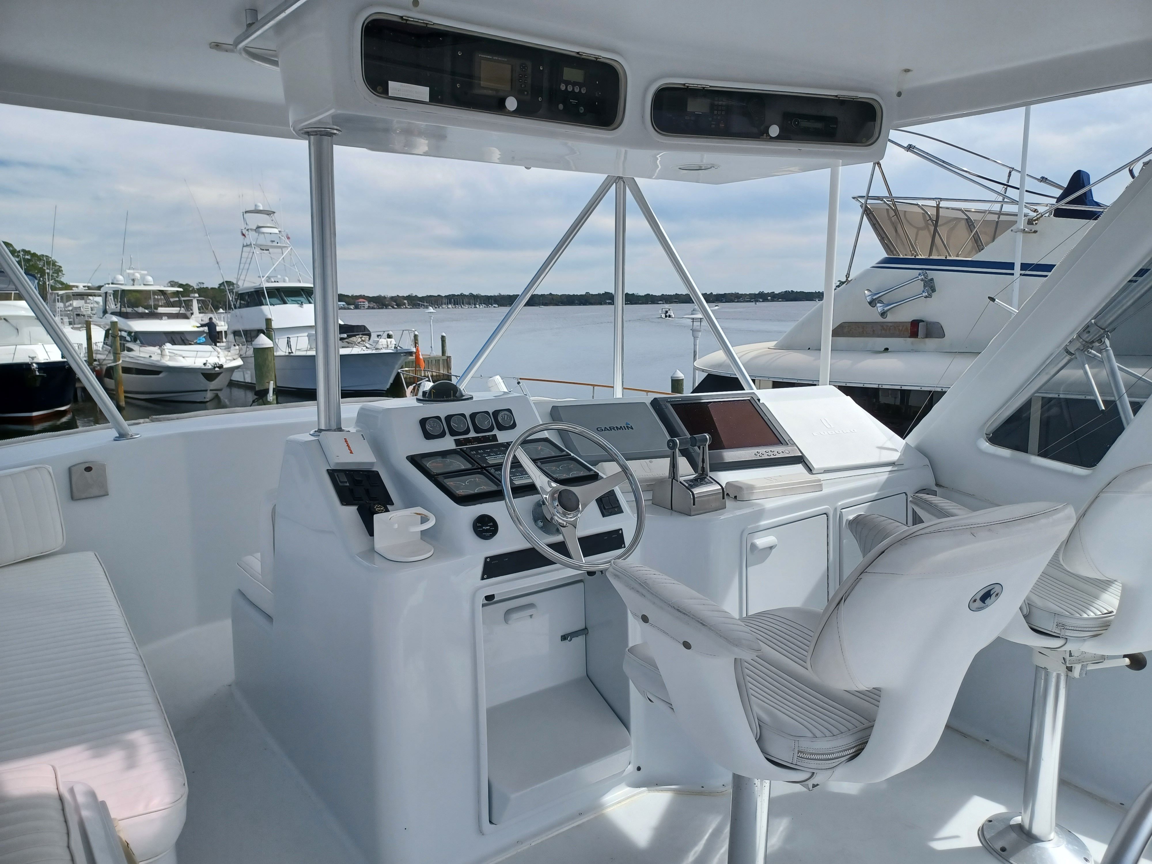 The Ocean Yachts 48 Super Sport is as practical as it is enjoyable. Its thoughtful design includes ample storage for fishing gear, coolers, and personal belongings, ensuring everything you need is always within reach. The twin engines not only provide impressive speed but also contribute to easier docking and maneuvering in tight spaces. Fuel efficiency is another key advantage, allowing you to spend more time on the water and less time at the fuel dock. The boat’s durable construction and reliable performance make it a smart investment for anyone seeking a used offshore fishing boat that delivers both excitement and peace of mind.