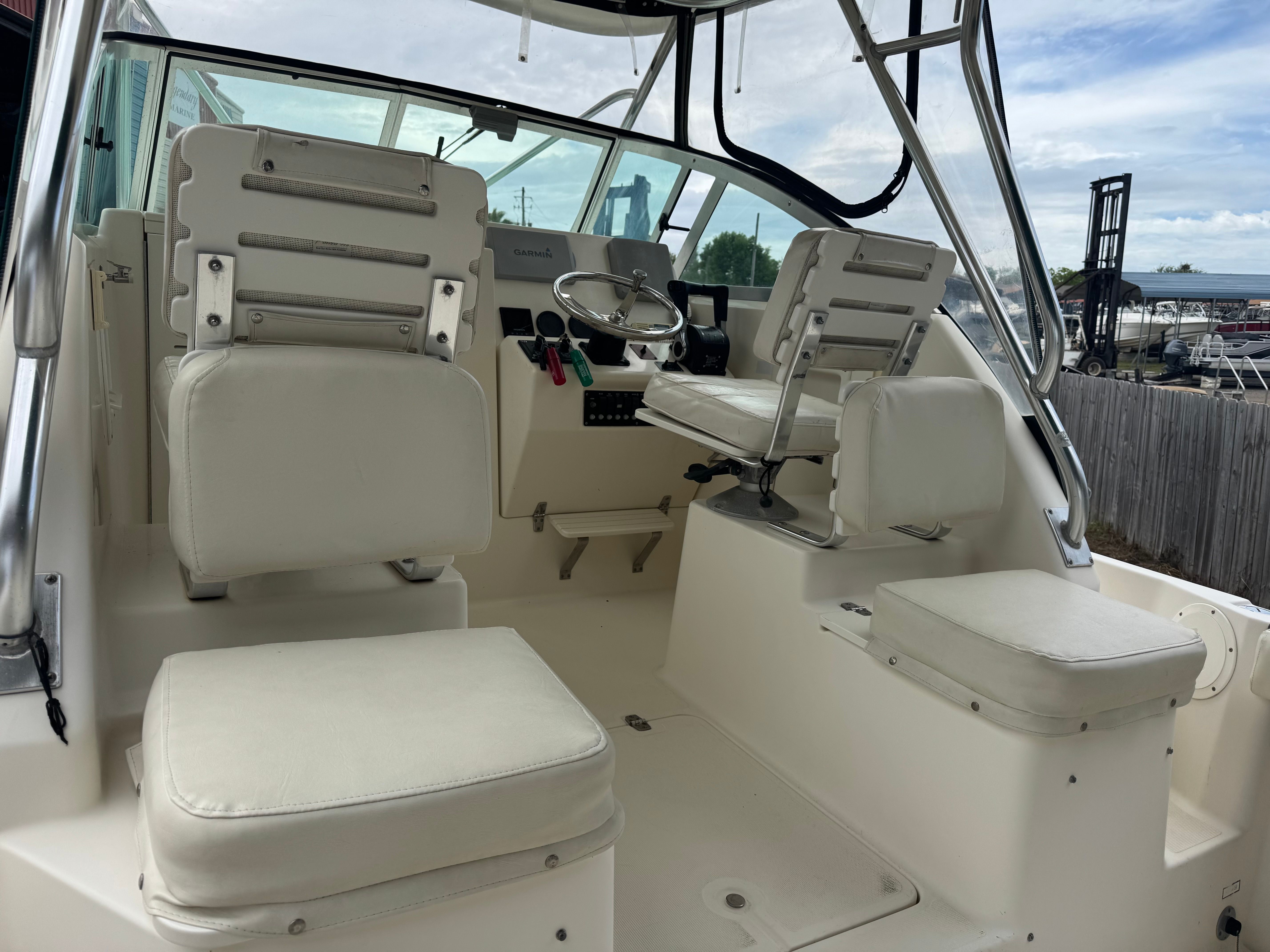 The 2001 Pursuit WA 2870 shines in a variety of scenarios. For fishing enthusiasts, the walkaround deck provides unobstructed access for casting and reeling in your catch, while the spacious cockpit accommodates all your gear and companions. Family outings are a breeze thanks to the comfortable seating, sheltered cabin, and smooth ride. If you’re seeking a platform for luxury getaways, the WA 2870’s combination of performance, comfort, and style makes it an excellent choice for weekend escapes or day trips to your favorite destinations.This walkaround boat for sale is also ideal for entertaining, with plenty of room for guests and the power to explore new waters with ease. Whether you’re planning a fishing tournament, a relaxing cruise, or an action-packed day of water sports, the Pursuit WA 2870 is ready to deliver.