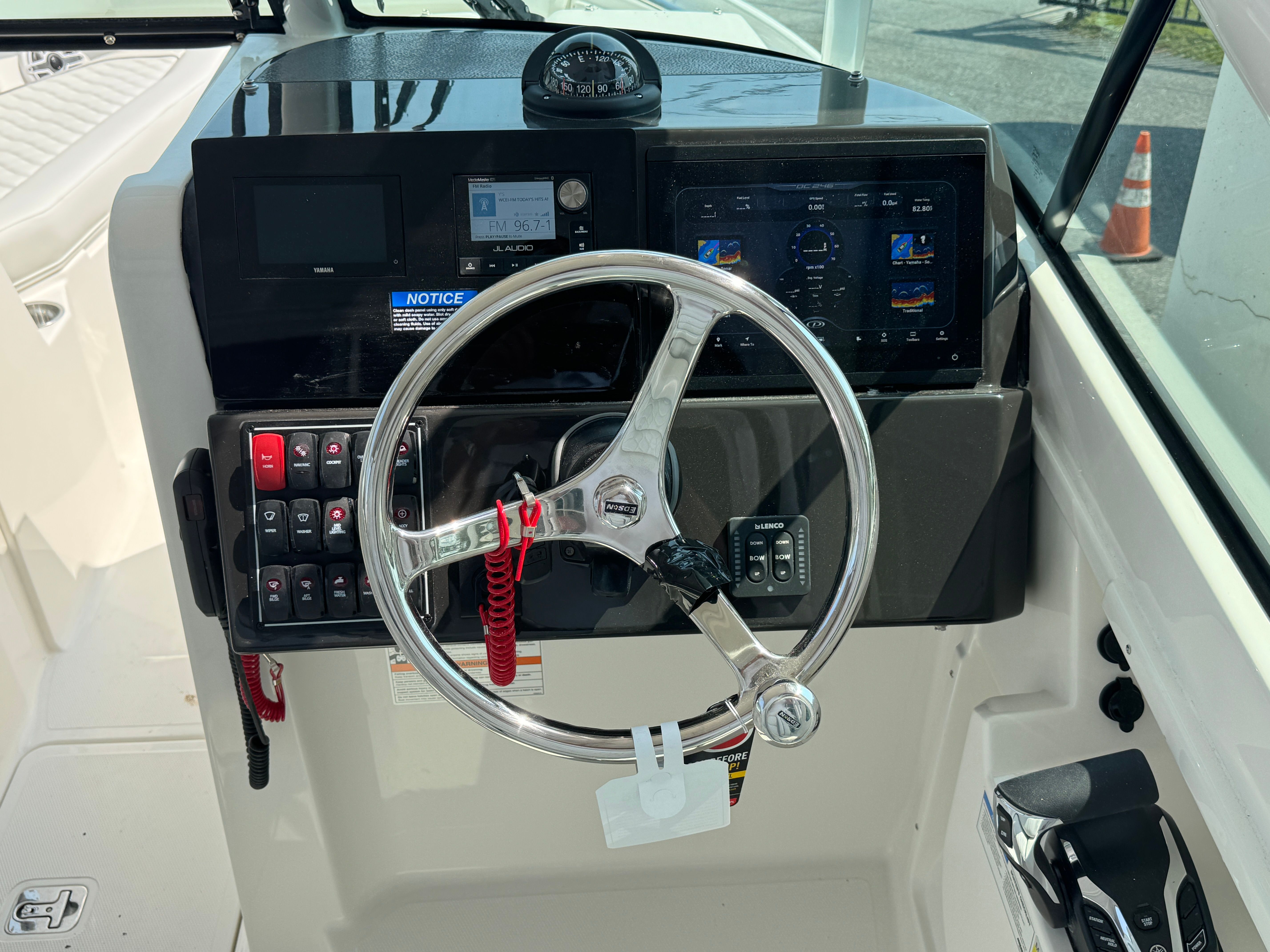 - Garmin Electronics Package (GPSMAP 8612XSV, B75M 0-7 Degree 600 watt CHIRP Transducer, NMEA 2000 Starter kit, Pursuit Custom Dash Panel, VHF Radio) (requires stereo option)