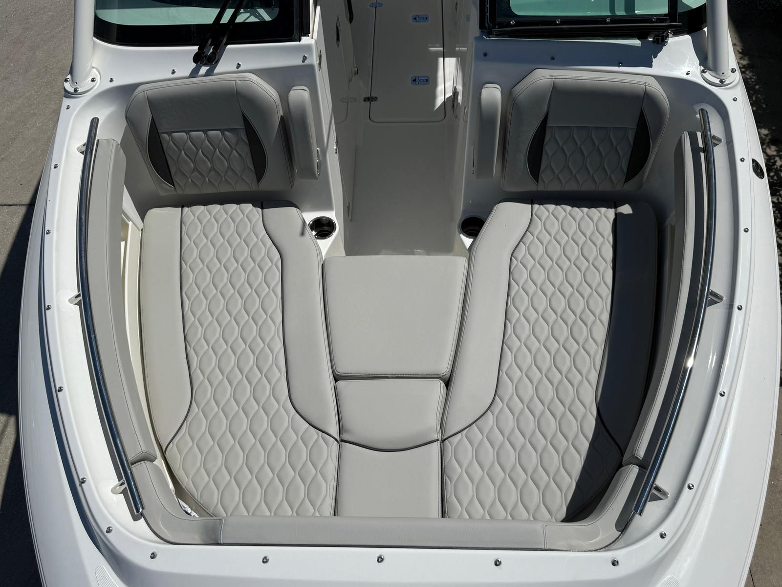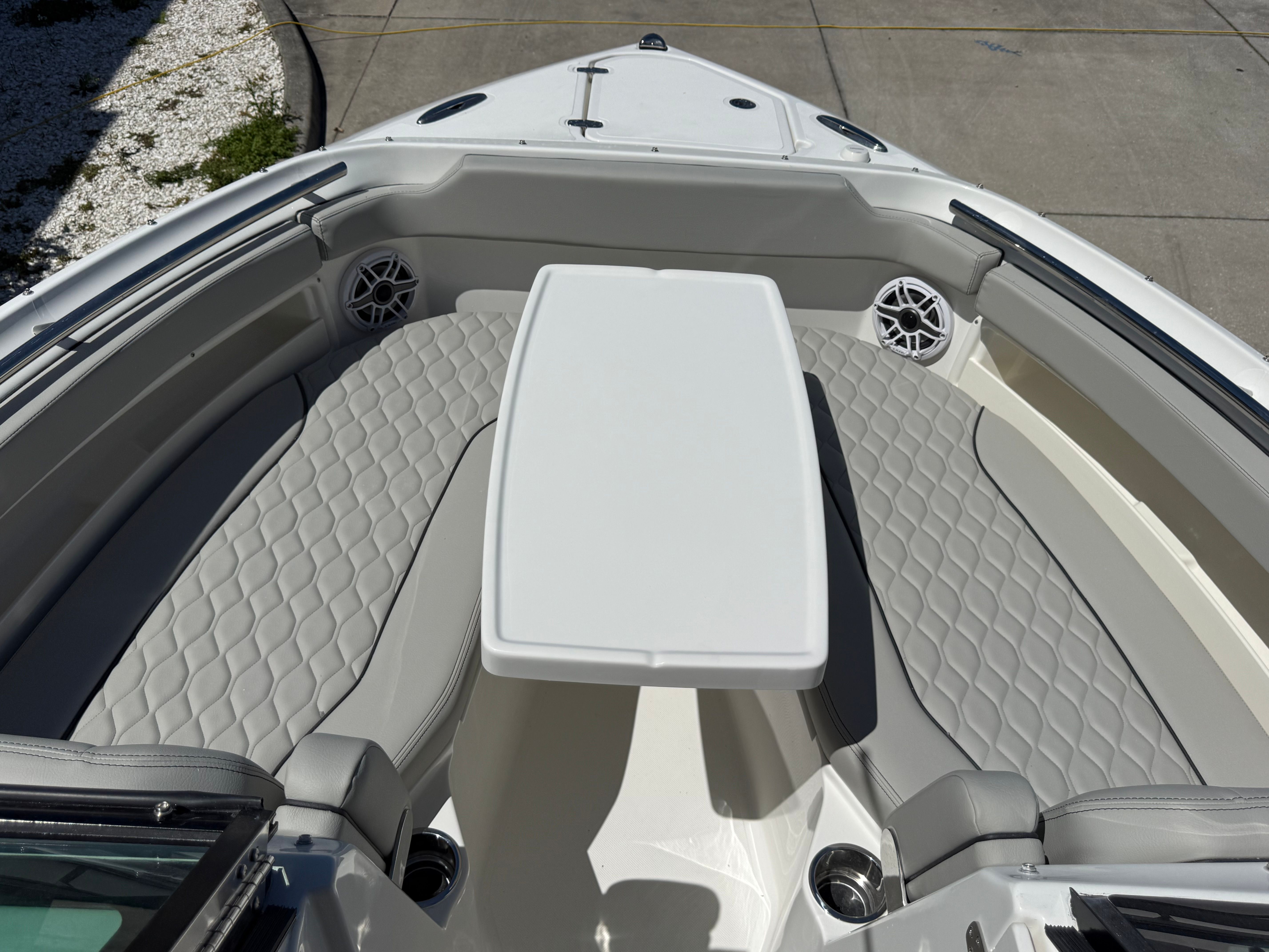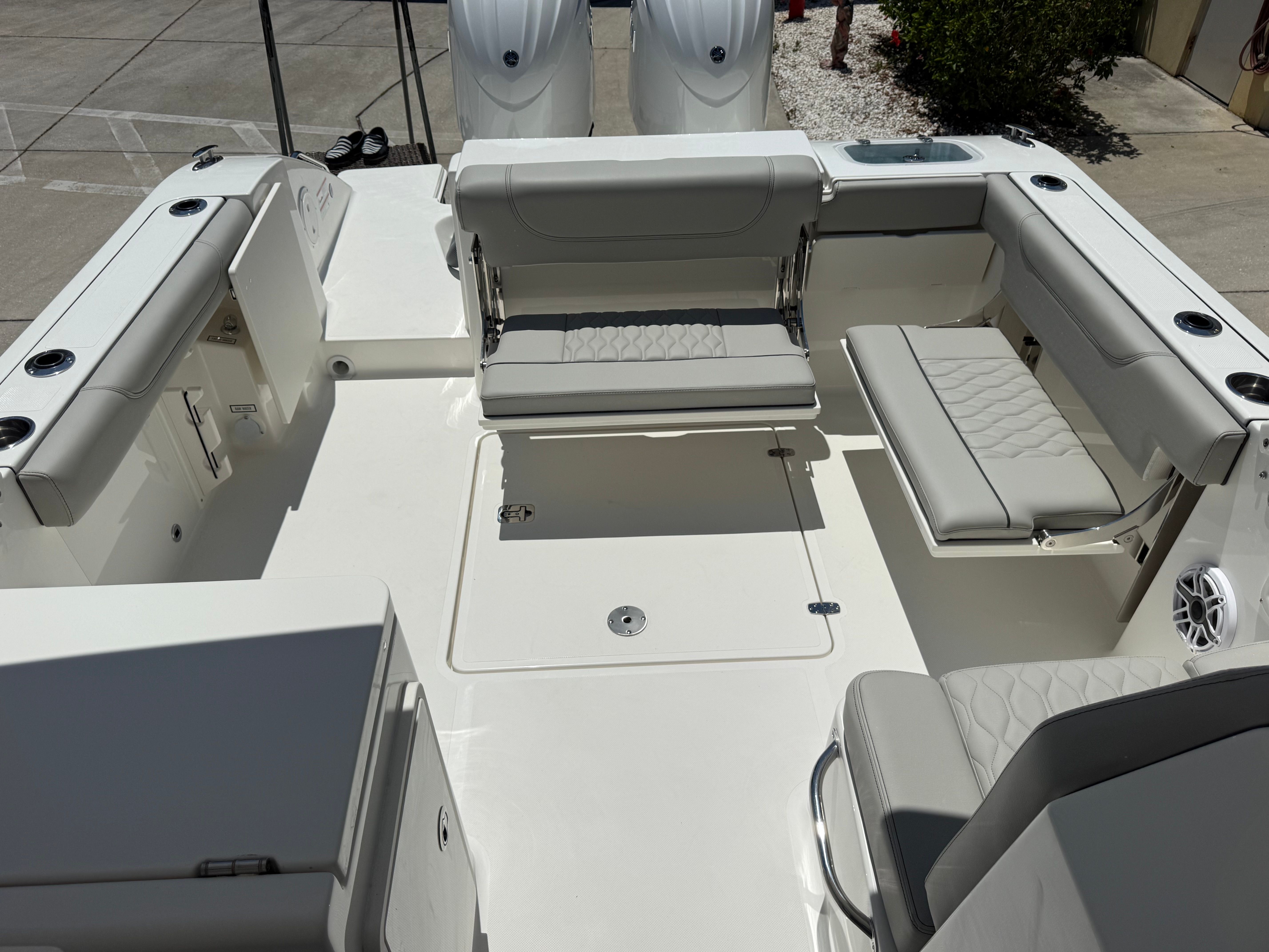Power and reliability are at the heart of the Pursuit DC 266. Equipped with twin Yamaha F200 outboard engines, this Dual Console boat for sale boasts a combined 400 horsepower, providing exhilarating acceleration and smooth cruising. Whether you’re navigating coastal waters, heading offshore for a day of fishing, or simply enjoying a leisurely cruise, the DC 266 delivers responsive handling and impressive fuel efficiency. The twin-engine setup not only enhances performance but also offers peace of mind with added redundancy and maneuverability, making docking and tight turns a breeze.