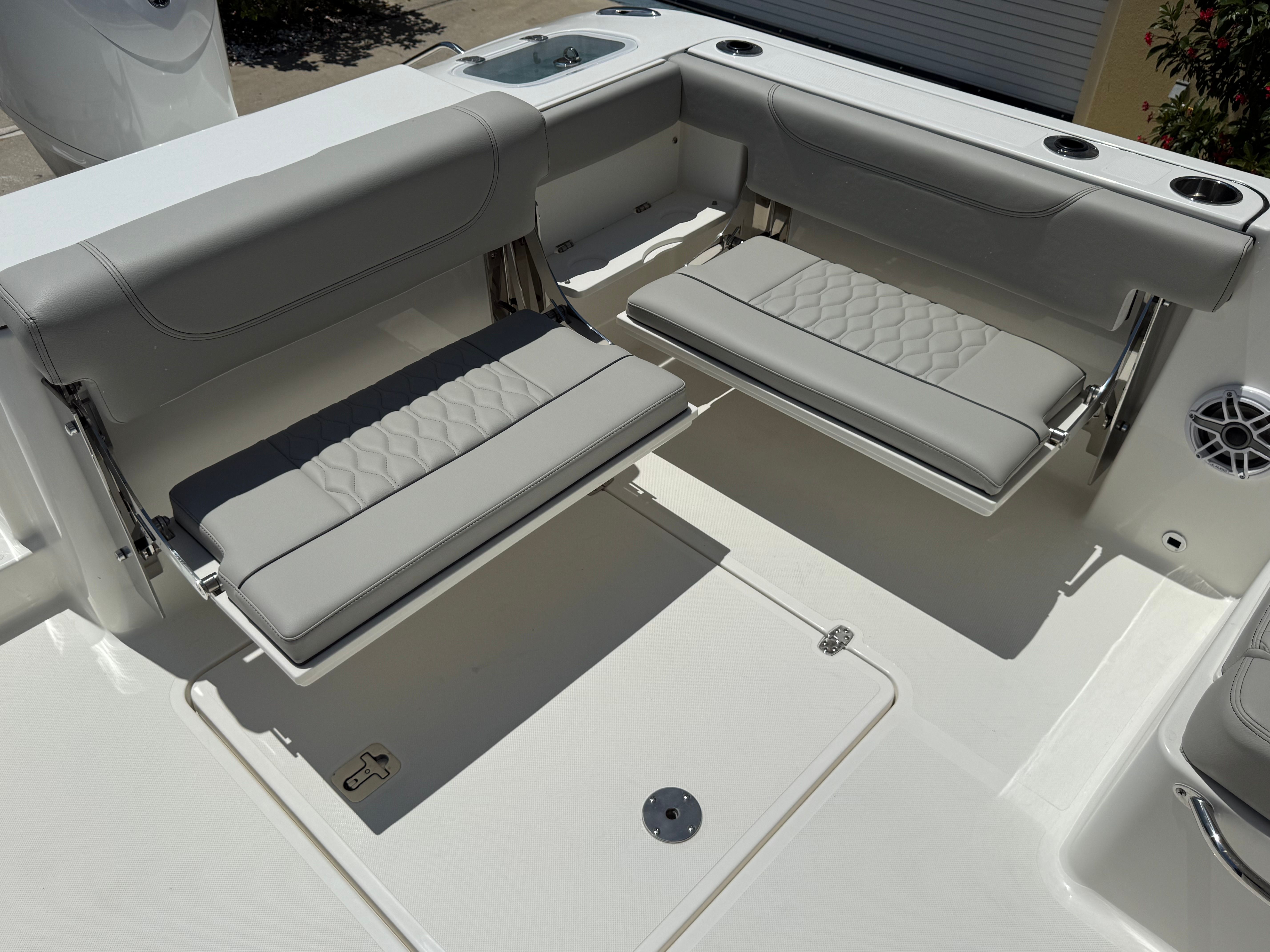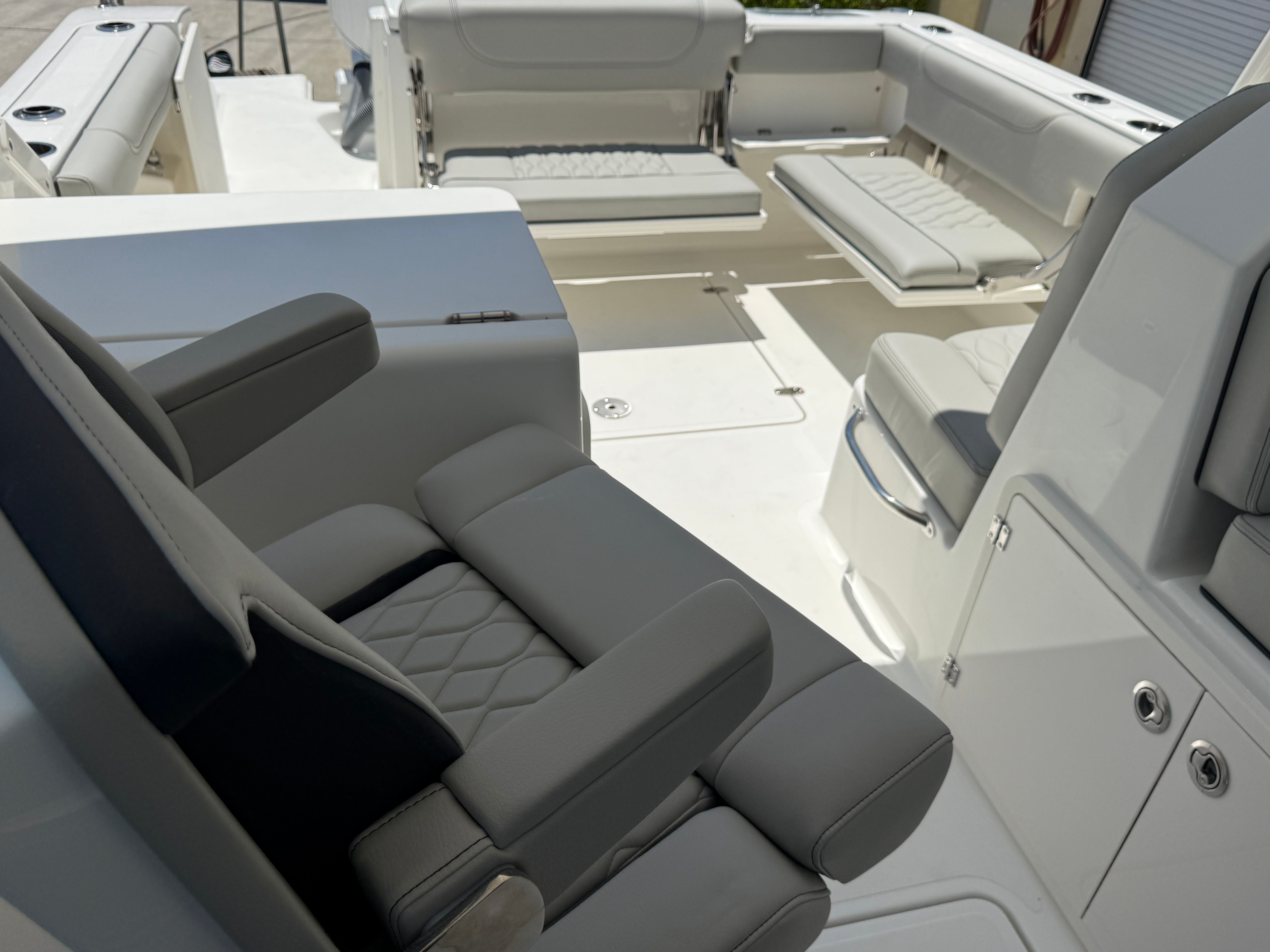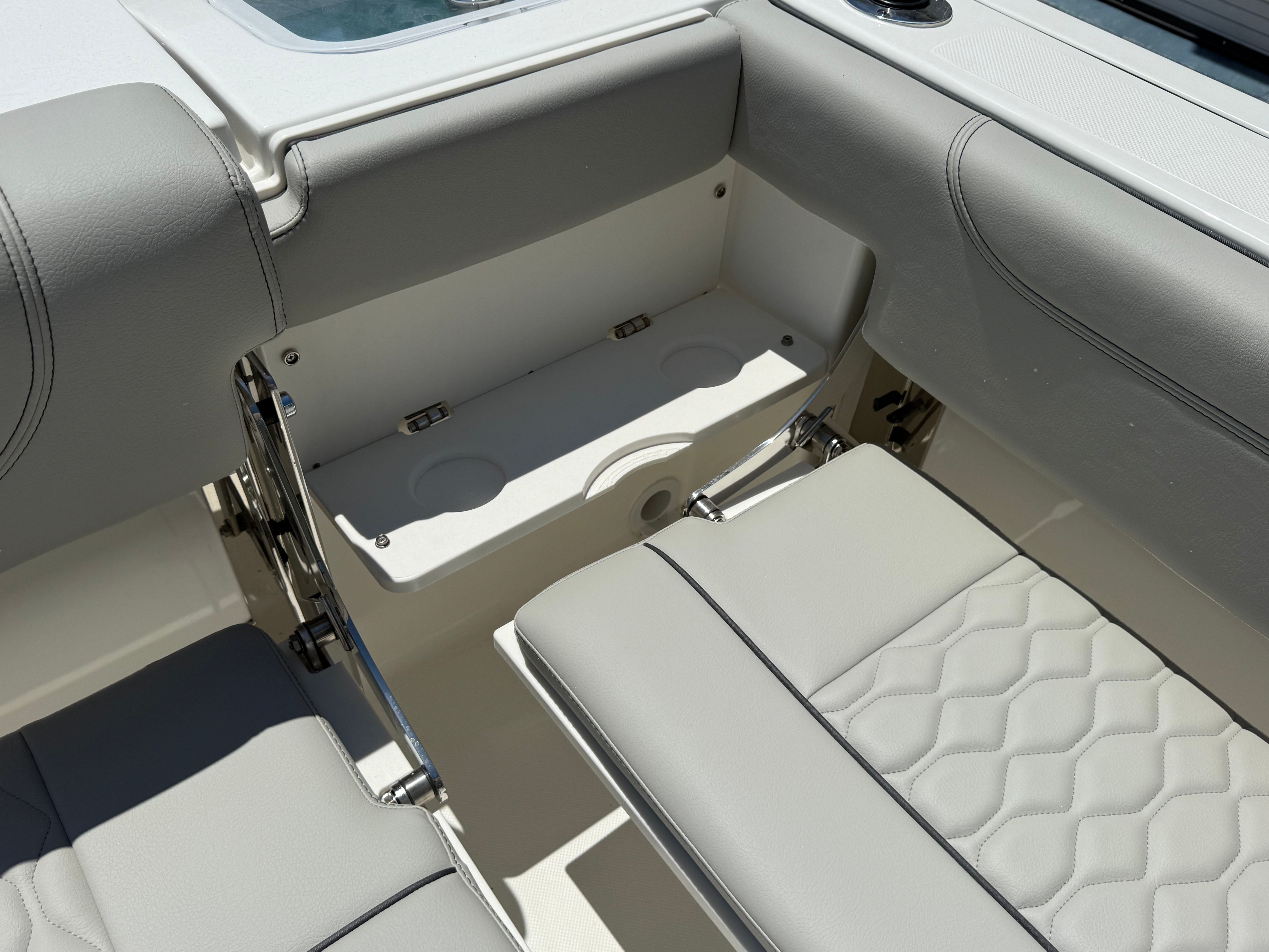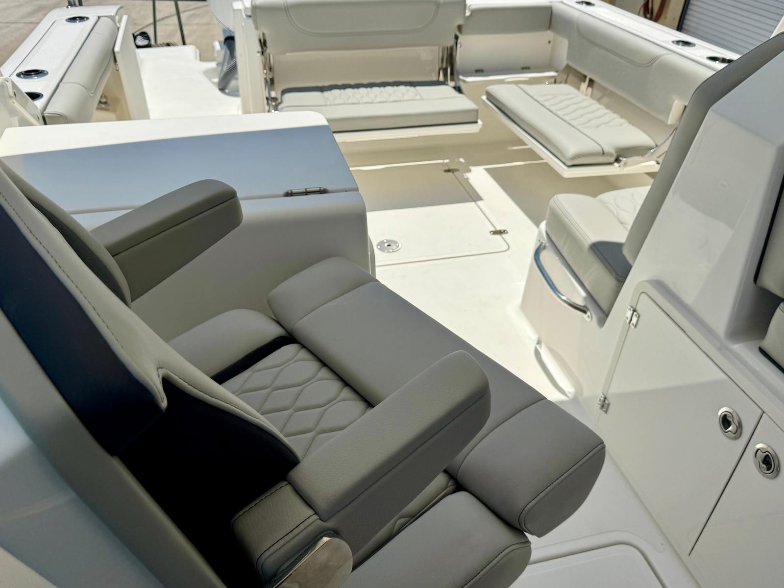 Power and reliability are at the heart of the Pursuit DC 266. Equipped with twin Yamaha F200 outboard engines, this Dual Console boat for sale boasts a combined 400 horsepower, providing exhilarating acceleration and smooth cruising. Whether you’re navigating coastal waters, heading offshore for a day of fishing, or simply enjoying a leisurely cruise, the DC 266 delivers responsive handling and impressive fuel efficiency. The twin-engine setup not only enhances performance but also offers peace of mind with added redundancy and maneuverability, making docking and tight turns a breeze.
