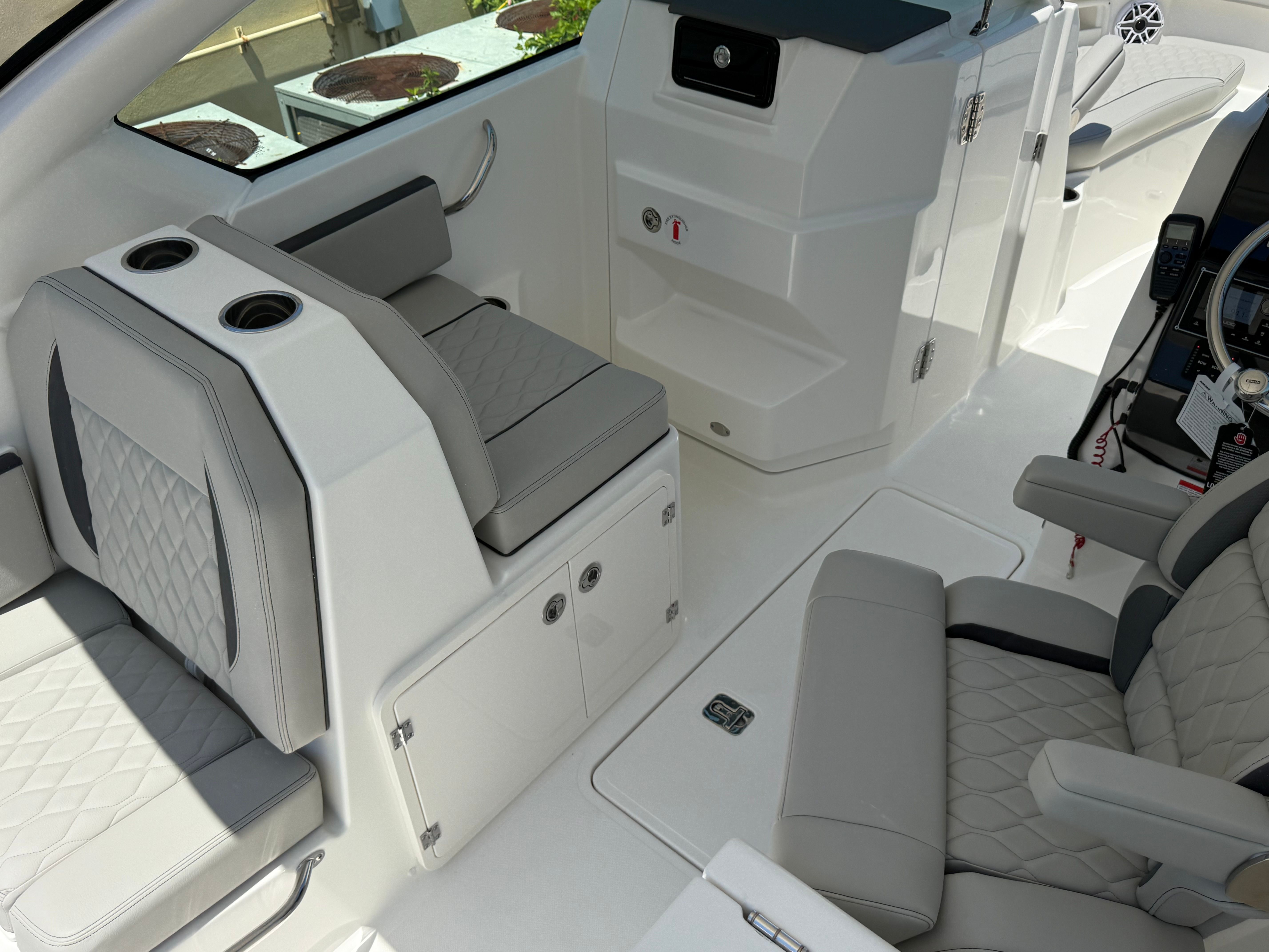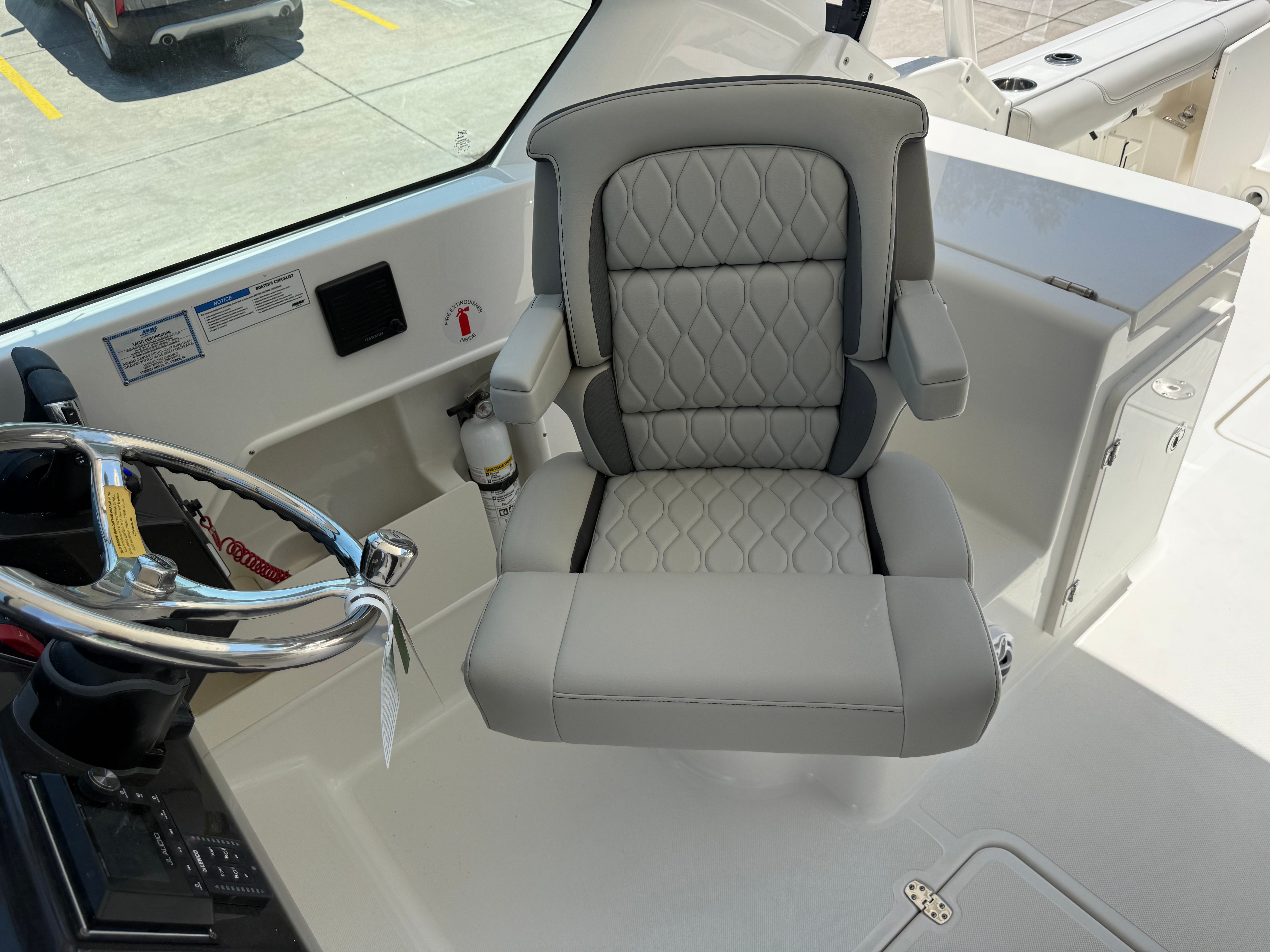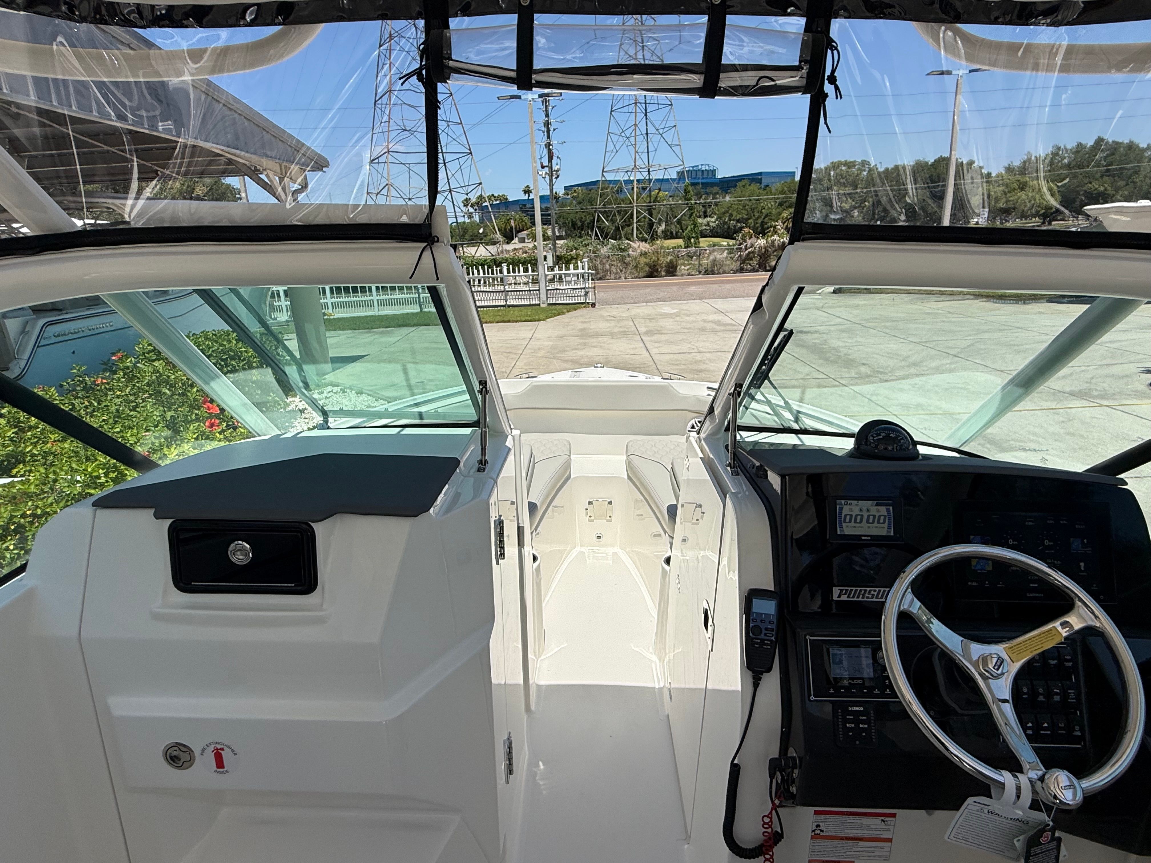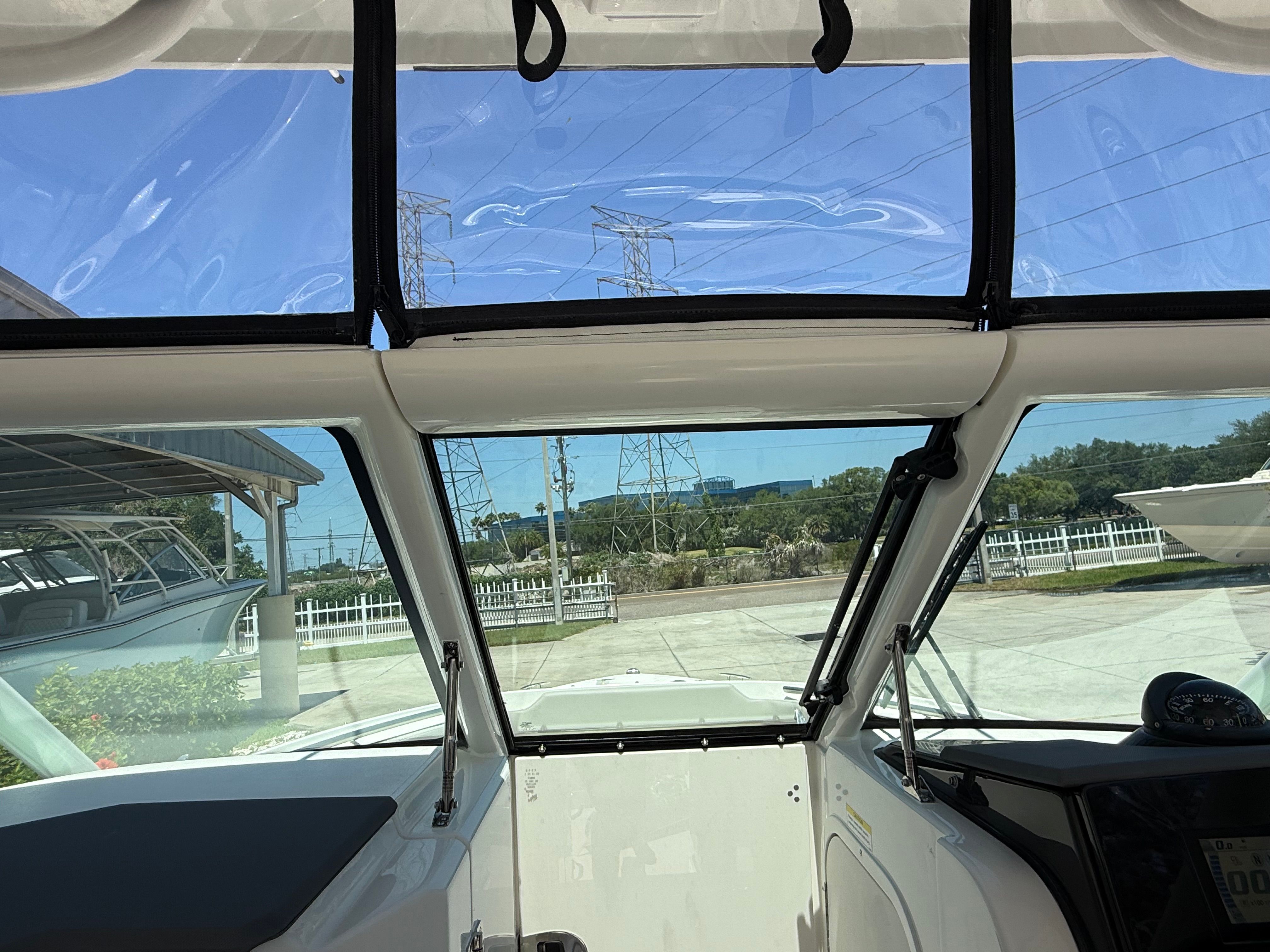 The Pursuit DC 266 is loaded with premium features that elevate your boating experience. The helm is finished in a striking Carbon color, complemented by a Black Sunbrella instrument cover for added protection and style. The three-piece hardtop connector with 30 mil Strataglass provides excellent weather protection while maintaining clear visibility, ensuring comfort in all conditions. For sun lovers, the bow sunpad filler with cushion transforms the forward seating area into a spacious lounge, perfect for soaking up the rays or relaxing with a good book.The exterior vinyl upholstery in Sea Salt not only looks stunning but is designed for durability and easy maintenance. The premium stereo upgrade ensures your favorite tunes sound crisp and powerful, creating the perfect soundtrack for your adventures. The Garmin electronics package brings advanced navigation and fish-finding capabilities to your fingertips, while mid-level cockpit accent lights set the mood for evening cruises. For added convenience and privacy, the aft curtain for the hardtop, crafted from Black Sunbrella, offers shelter from the elements and enhances the boat’s sleek appearance.