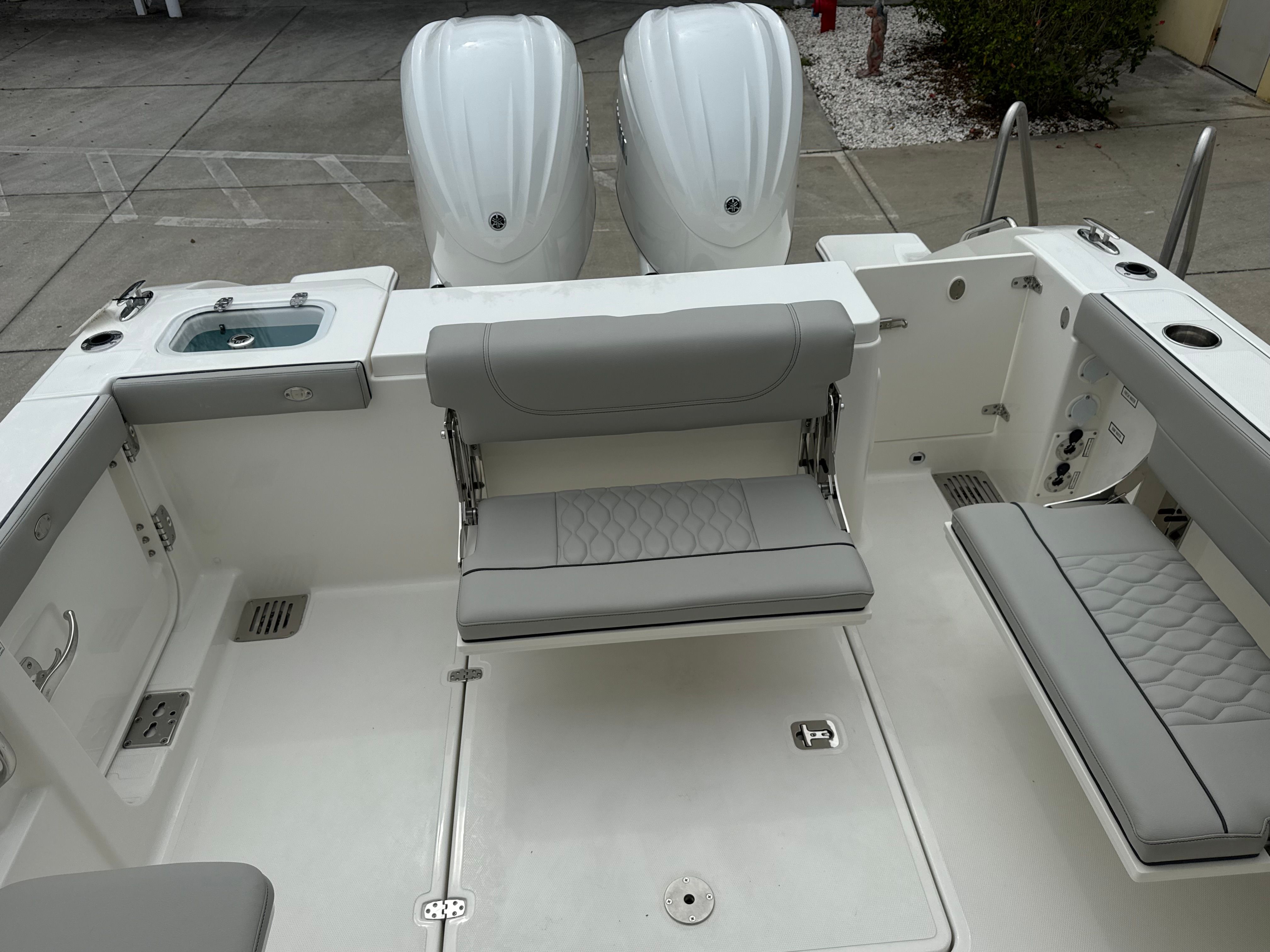 The 2026 Pursuit DC 286 is loaded with features designed to enhance your boating experience. The twin Yamaha F300 engines not only provide robust power but also ensure reliability and efficiency for extended journeys. The Yamaha Joystick Control with full maneuverability transforms docking and close-quarters handling into a stress-free experience, giving you complete command at your fingertips.Aesthetically, the Fresh White hull and helm, complemented by the Platinum bootstripe and accent, create a striking visual impression. The interior, finished in the elegant Sea Salt color, offers a serene and inviting space for relaxation and socializing. The 30 Amp dockside power with ELCI protection and shore cord ensures that your onboard systems remain powered and safe, whether you are at the marina or anchored in your favorite bay.Comfort and convenience are further elevated with the bow sun pad filler cushion, which comes with dedicated storage for easy access and organization. The portside folding seat provides additional seating flexibility, adapting to your needs whether you are entertaining guests or enjoying a quiet moment on the water. The stainless steel refrigerator/freezer keeps your refreshments chilled and your snacks fresh, making every outing a pleasure.