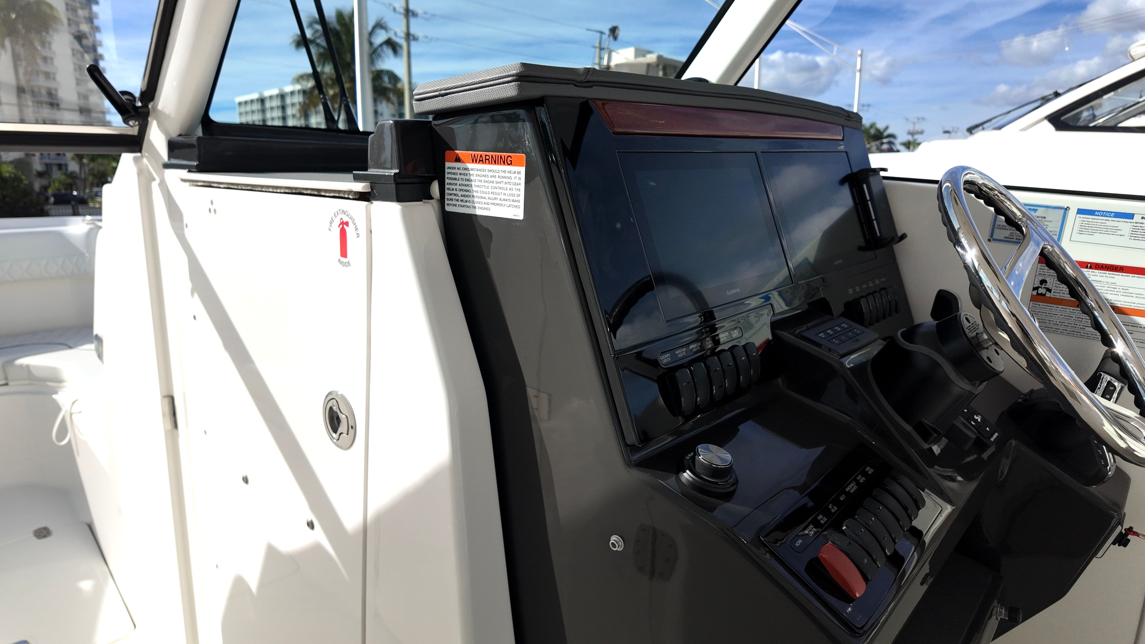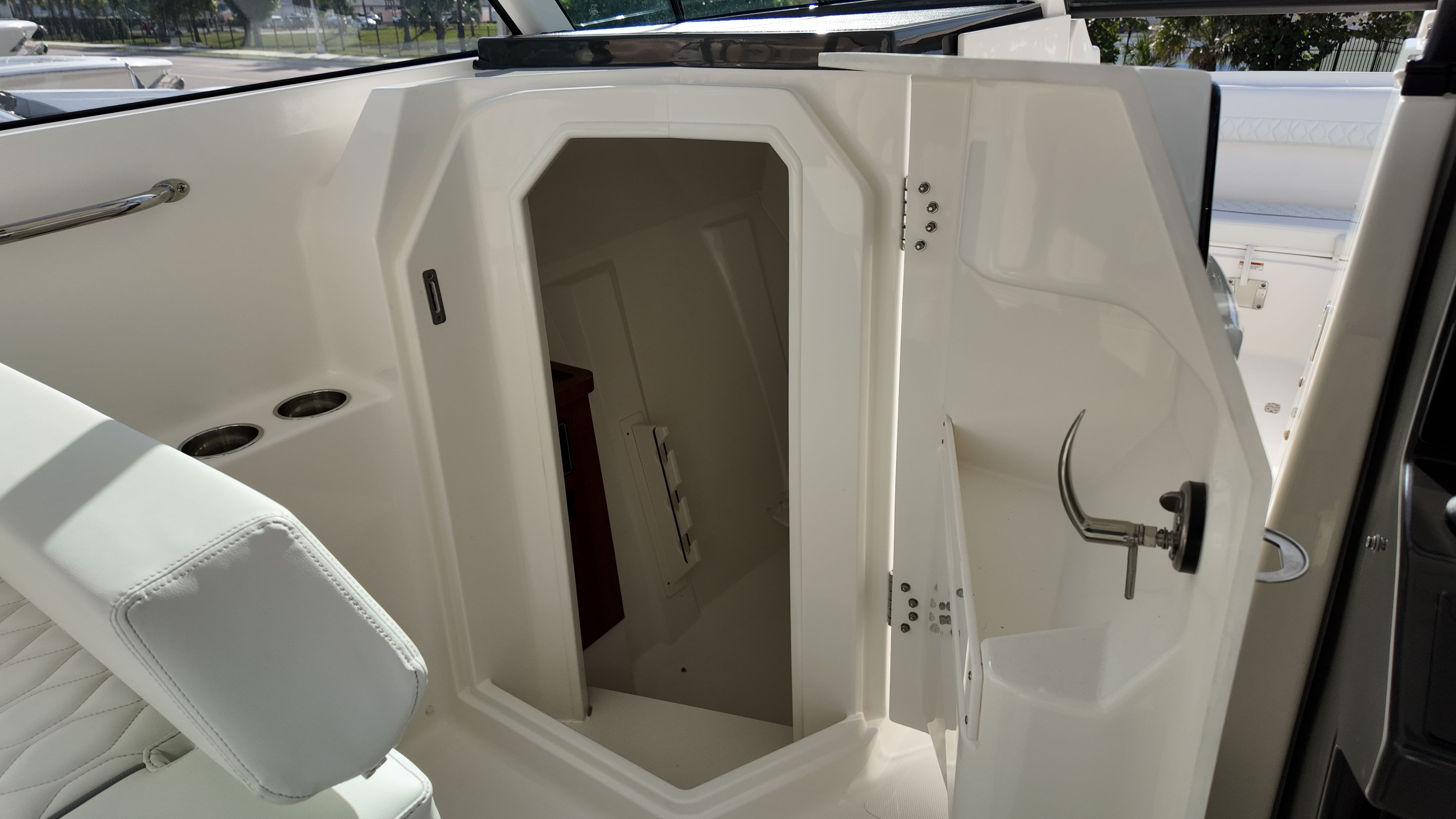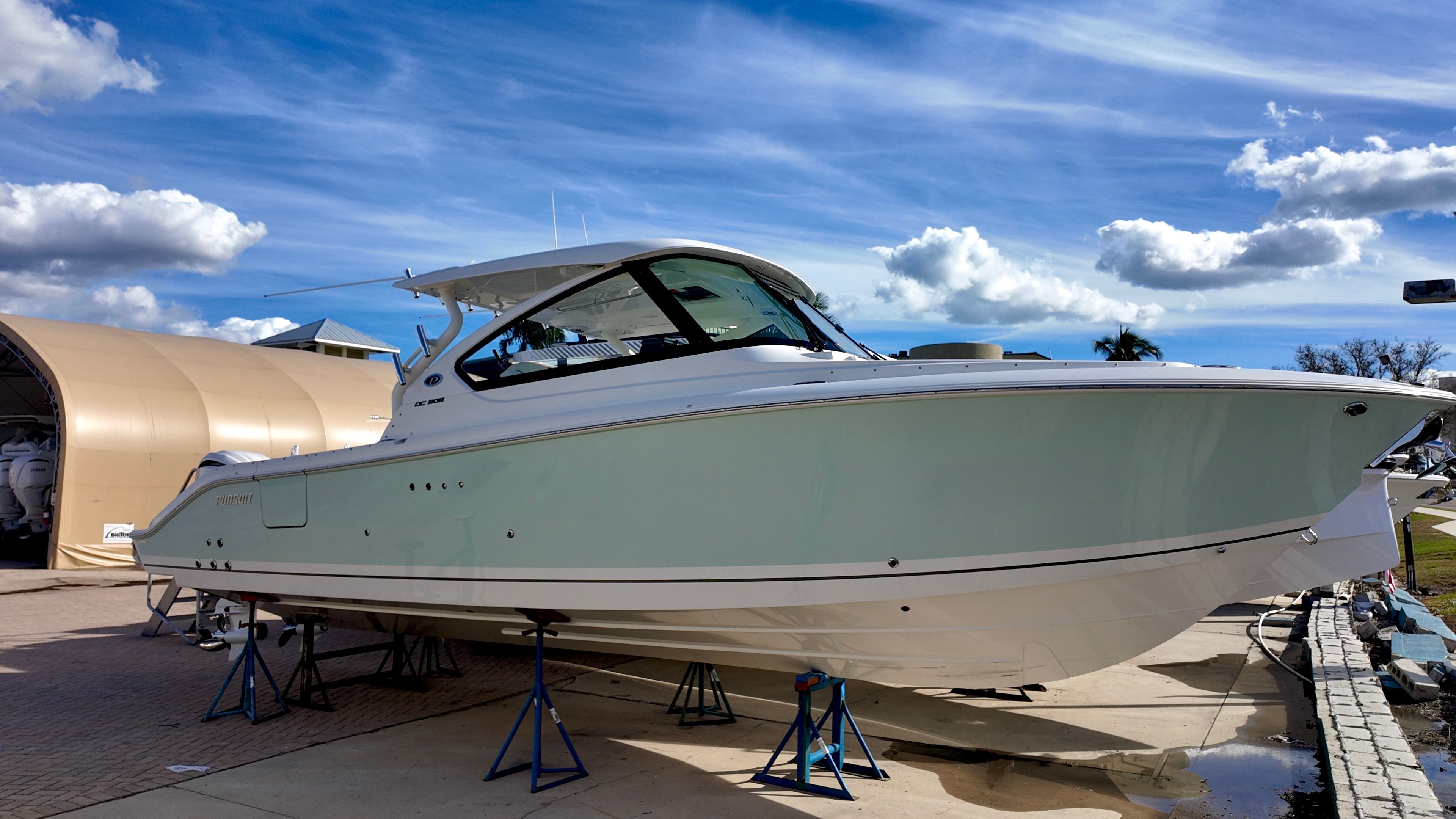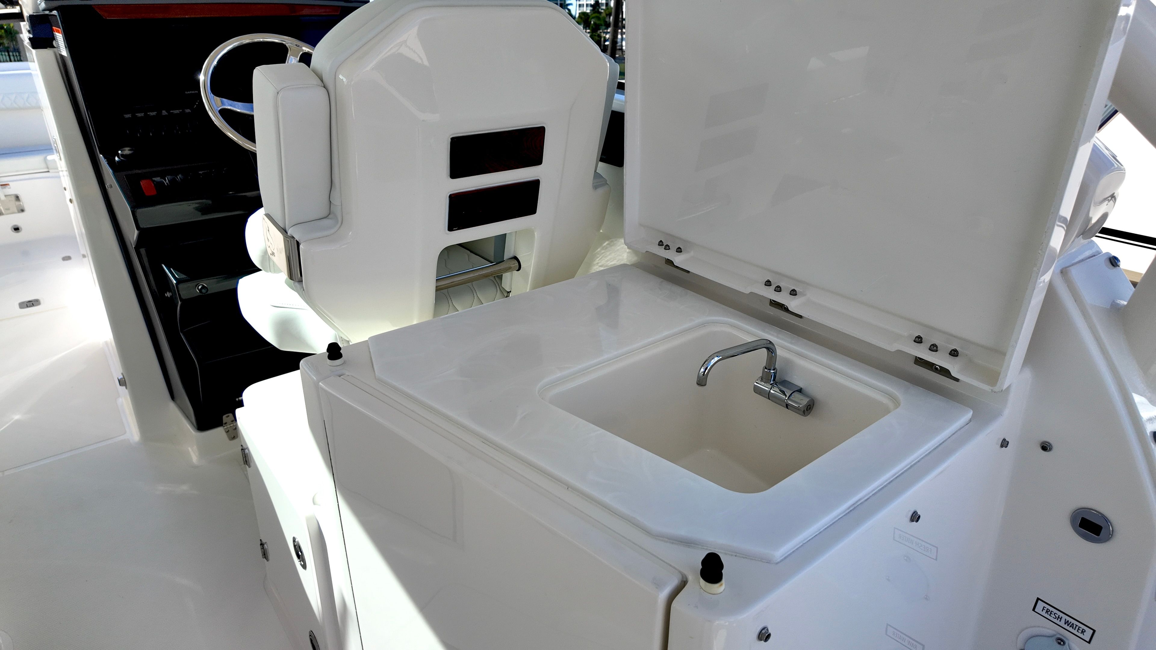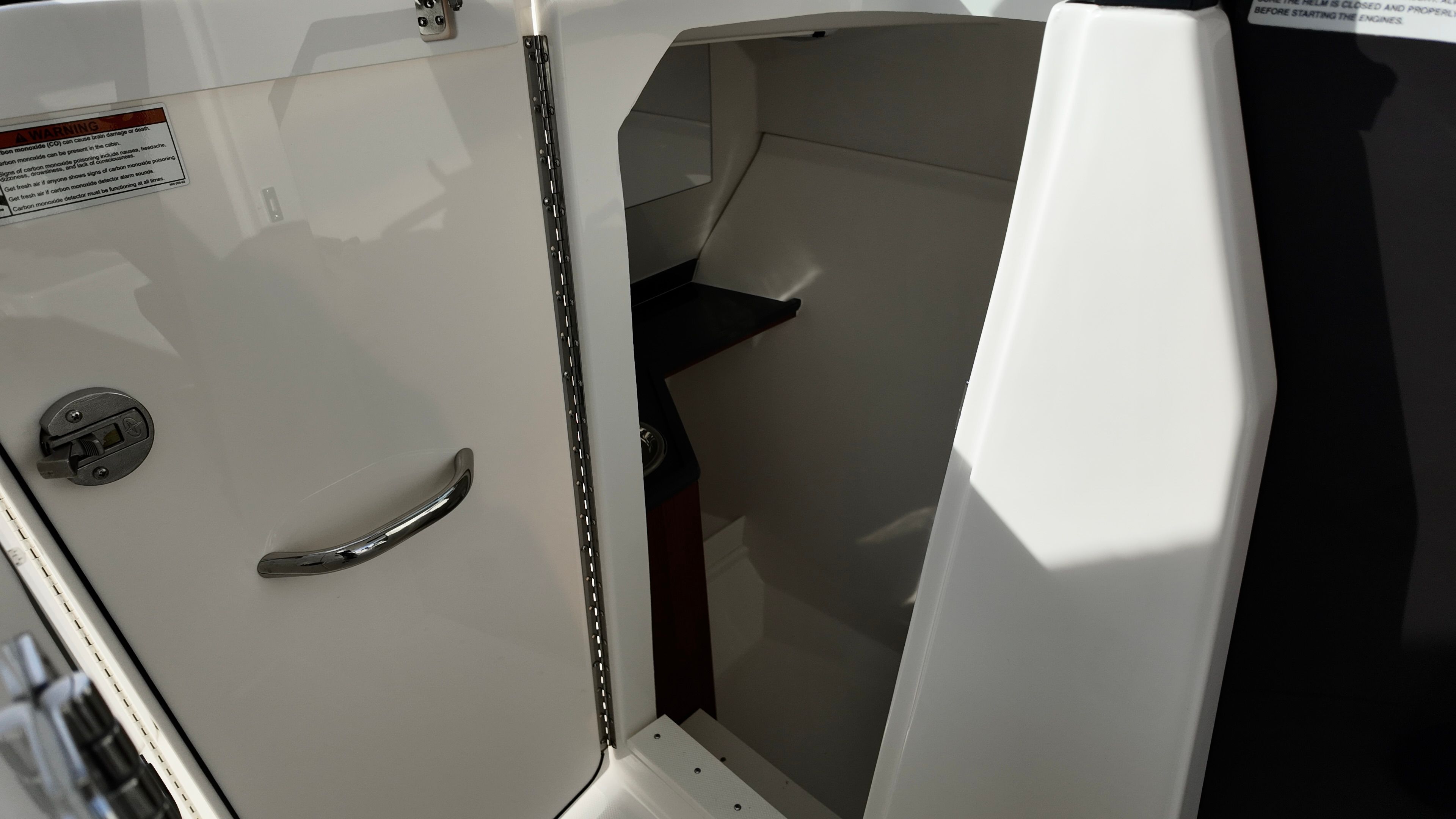 The Pursuit DC 306 is as practical as it is stylish. The efficient twin Yamaha engines provide excellent fuel economy for a boat of this size and power, allowing you to spend more time on the water and less time at the fuel dock. The dockside power connection makes overnight stays and extended trips more comfortable, powering your onboard appliances and electronics with ease.Storage is thoughtfully integrated throughout the boat, with dedicated spaces for tables, gear, and personal items. The folding portside seat maximizes deck space when not in use, while the refrigerator/freezer keeps your food and drinks fresh for the duration of your trip. The hardtop hatches with screens offer ventilation without letting in unwanted pests, ensuring a pleasant environment no matter where your adventures take you.