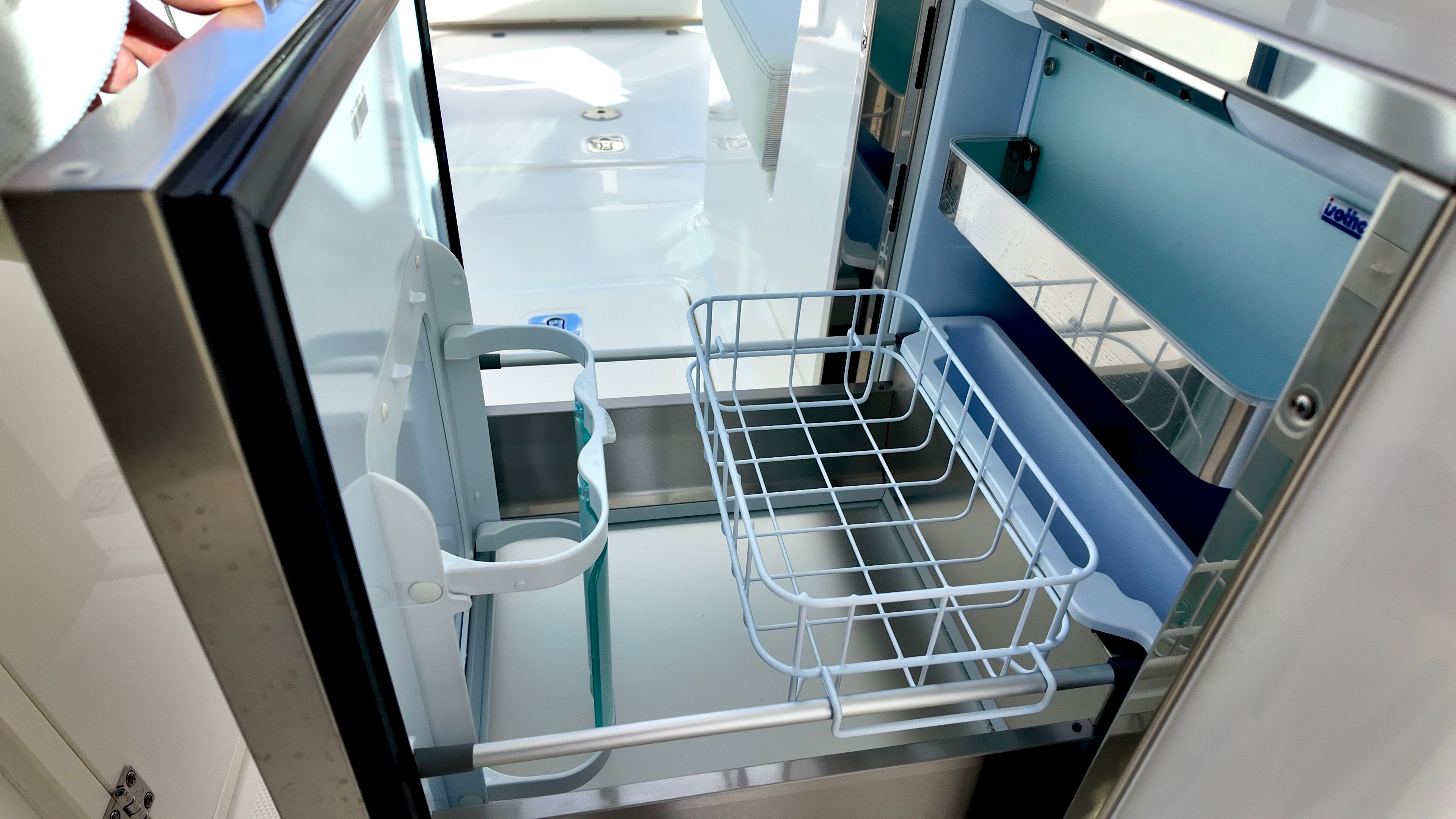 - 12v 2.3 cubic ft Refrigerator/Freezer, Stainless Steel (replaces Standard Tackle Storage) (Requires Dockside Power option)