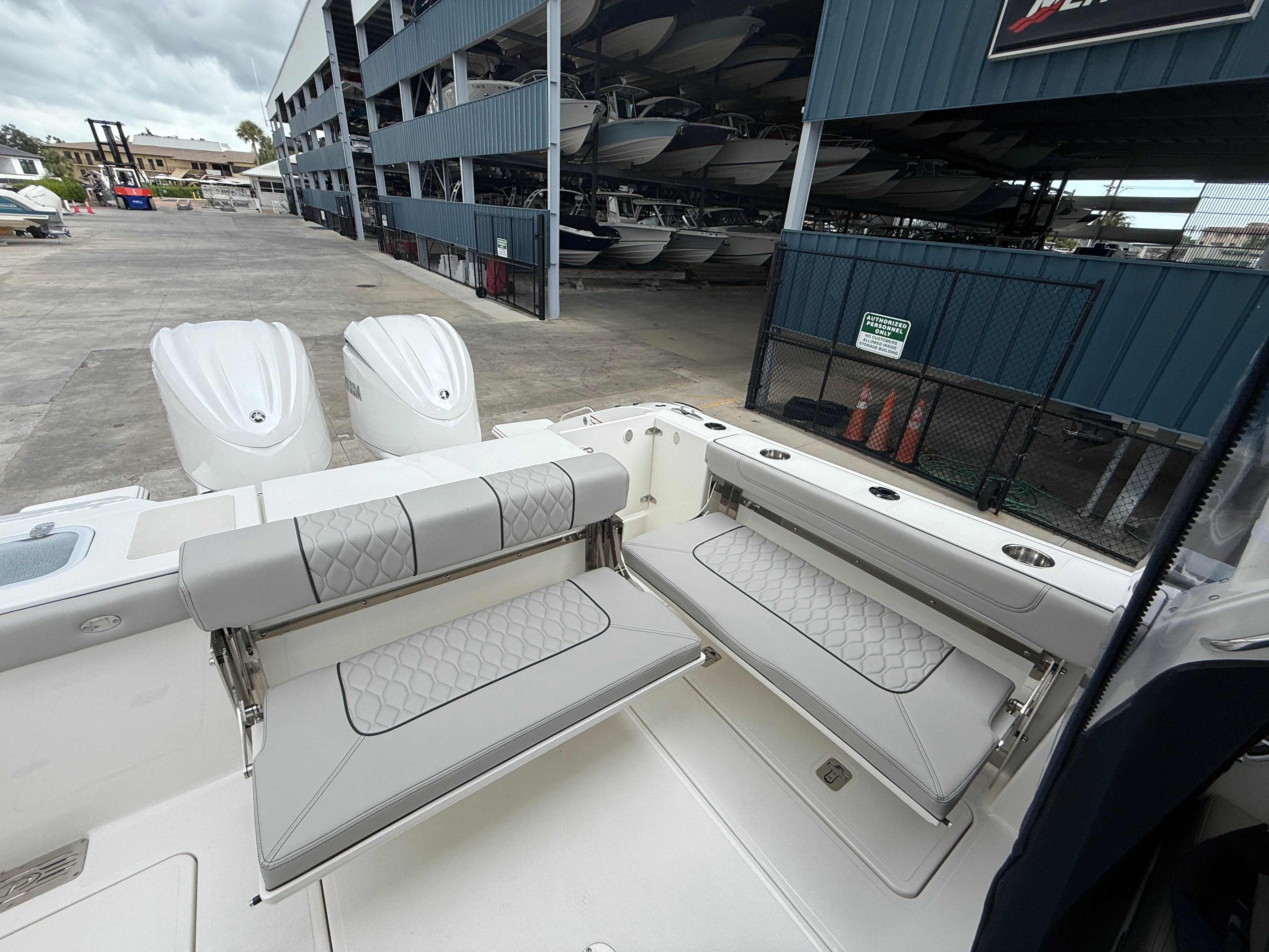 Practicality meets luxury in the Pursuit DC 306. The nearly 32-foot length offers ample storage for gear, water toys, and personal belongings, making it easy to keep the deck organized and clutter-free. The efficient twin engines not only deliver impressive power but also contribute to smooth, fuel-efficient cruising, helping you make the most of every trip.Dockside power and the integrated battery charger simplify overnight stays and extended outings, ensuring your onboard systems remain operational. The stowable sunshade and protective curtains make it easy to adapt to changing weather, while the twin engine covers safeguard your investment when the boat is not in use. The carbon-colored helm and footrest add a touch of style and comfort, making every journey a pleasure.