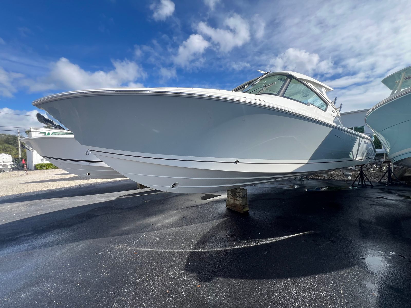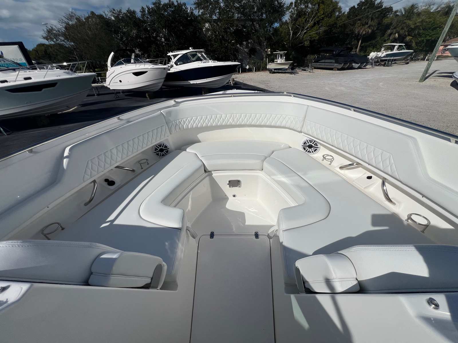 Power and reliability are at the heart of the Pursuit DC 326. Equipped with twin Yamaha F350XSA engines, this dual console boat boasts a combined 700 horsepower, ensuring exhilarating performance and smooth handling in various water conditions. The advanced engineering of the Yamaha engines provides not only impressive speed but also efficient fuel consumption, making long days on the water both thrilling and economical. Whether you are cruising along the coastline, heading to your favorite fishing spot, or enjoying water sports, the DC 326 delivers the power and agility you need for every adventure.
