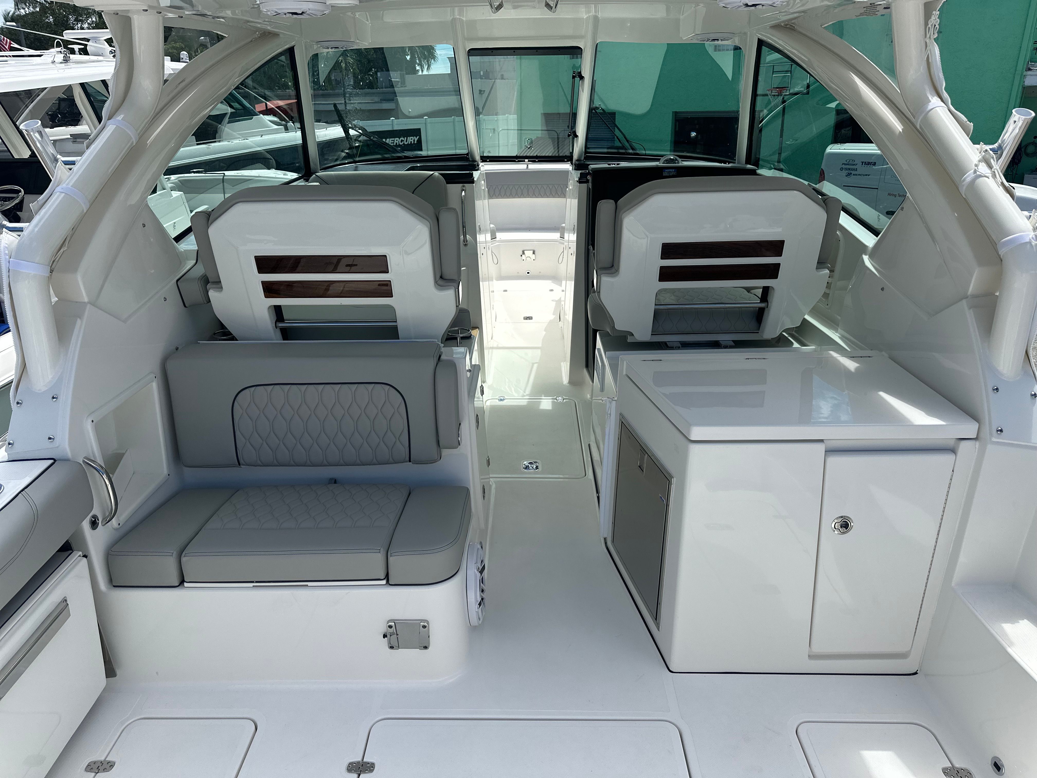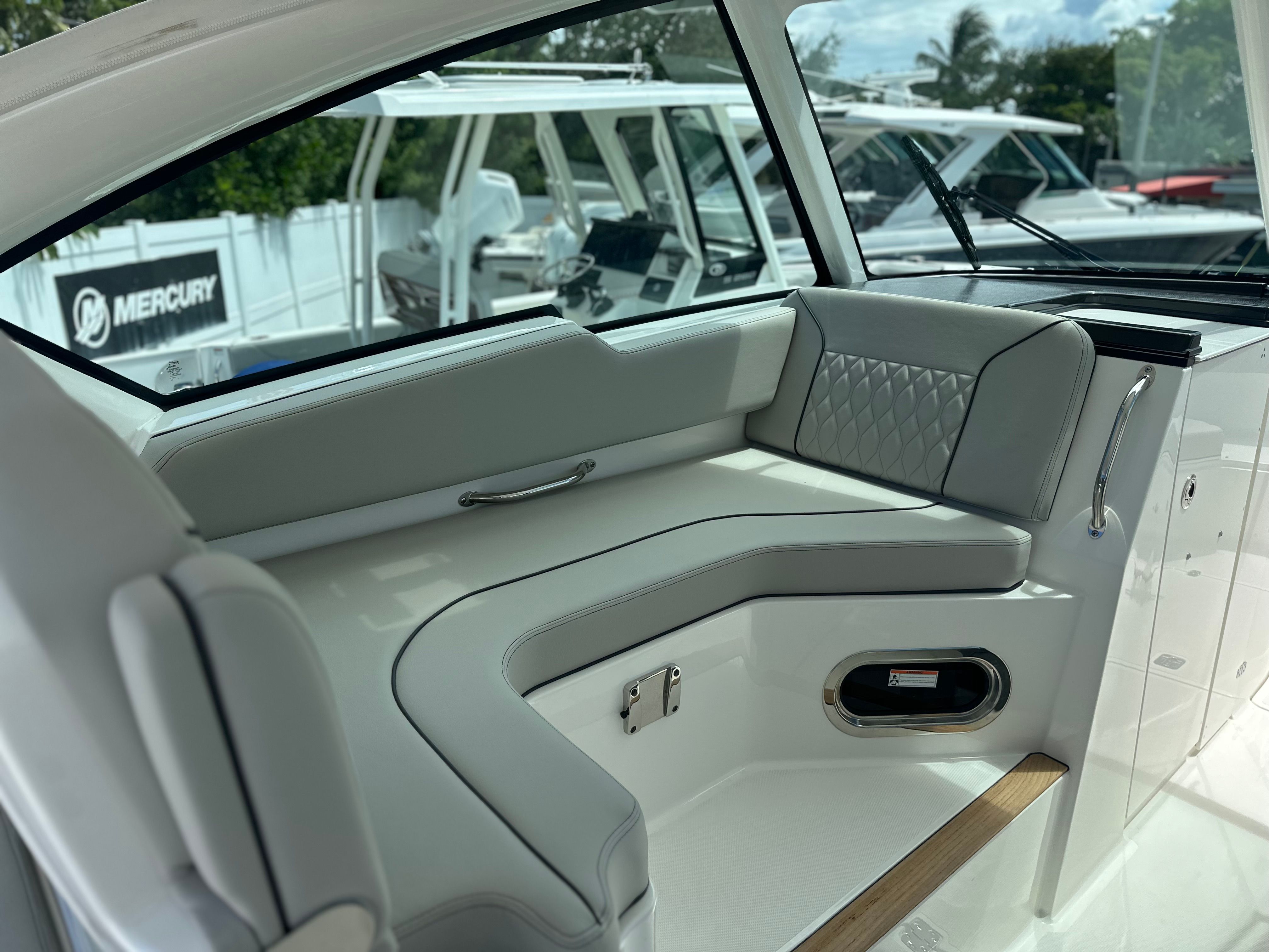 Owning the Pursuit DC 326 means embracing a lifestyle of fun, relaxation, and adventure. The dual console design maximizes both comfort and functionality, making it easy to switch between activities without missing a beat. Spacious seating areas invite guests to lounge and enjoy the scenery, while the advanced helm station puts you in complete control of your journey. The thoughtful layout encourages social interaction, whether you’re hosting a sunset cocktail party or spending quality time with family.The Pursuit DC 326’s innovative features enhance every aspect of your time on the water. The sunshade and protective curtains create a comfortable environment, allowing you to enjoy boating in a range of weather conditions. The teak table provides a perfect spot for meals and games, while the Garmin display keeps you informed and connected. With ample storage and smart design elements, you’ll have everything you need for a memorable day on the water.