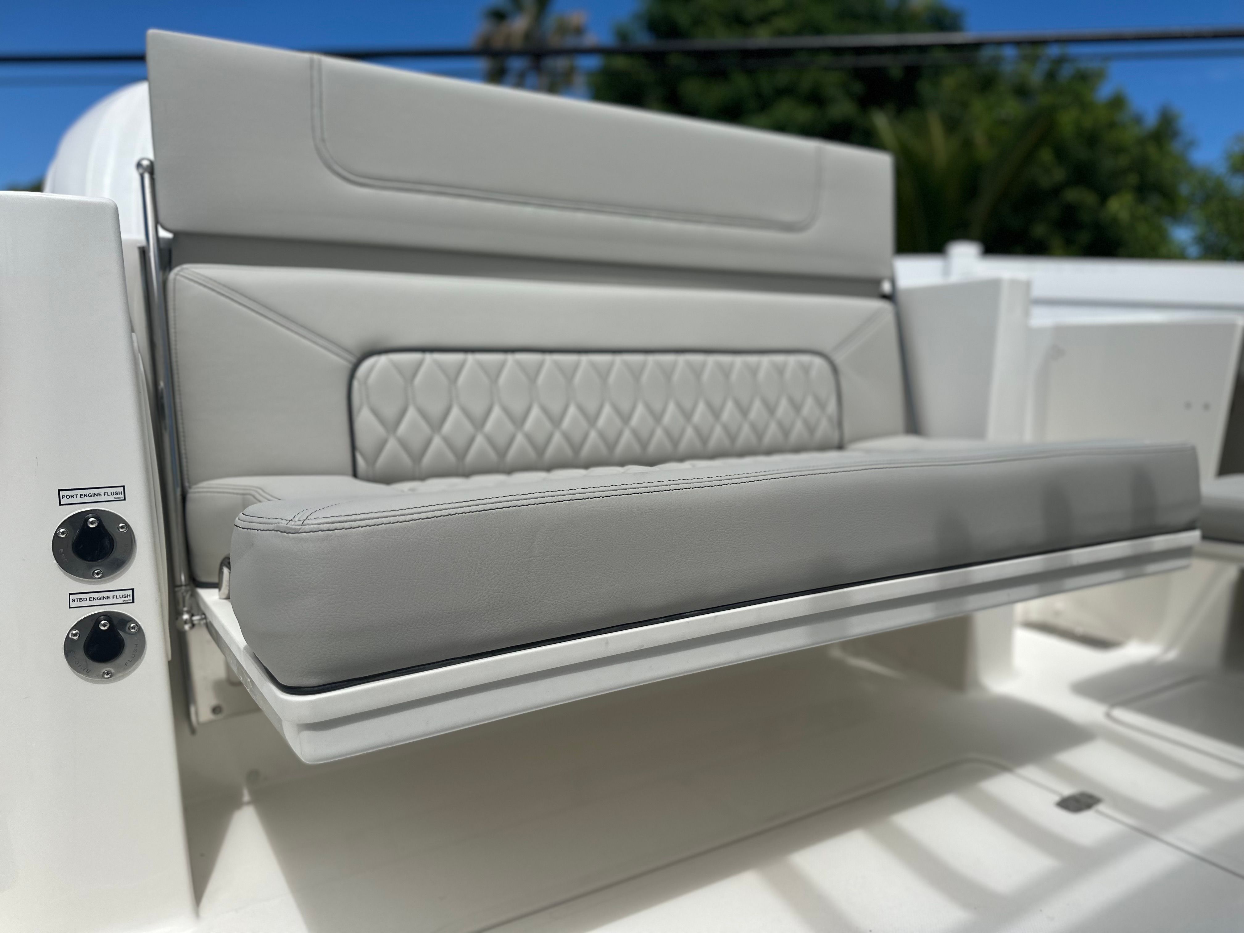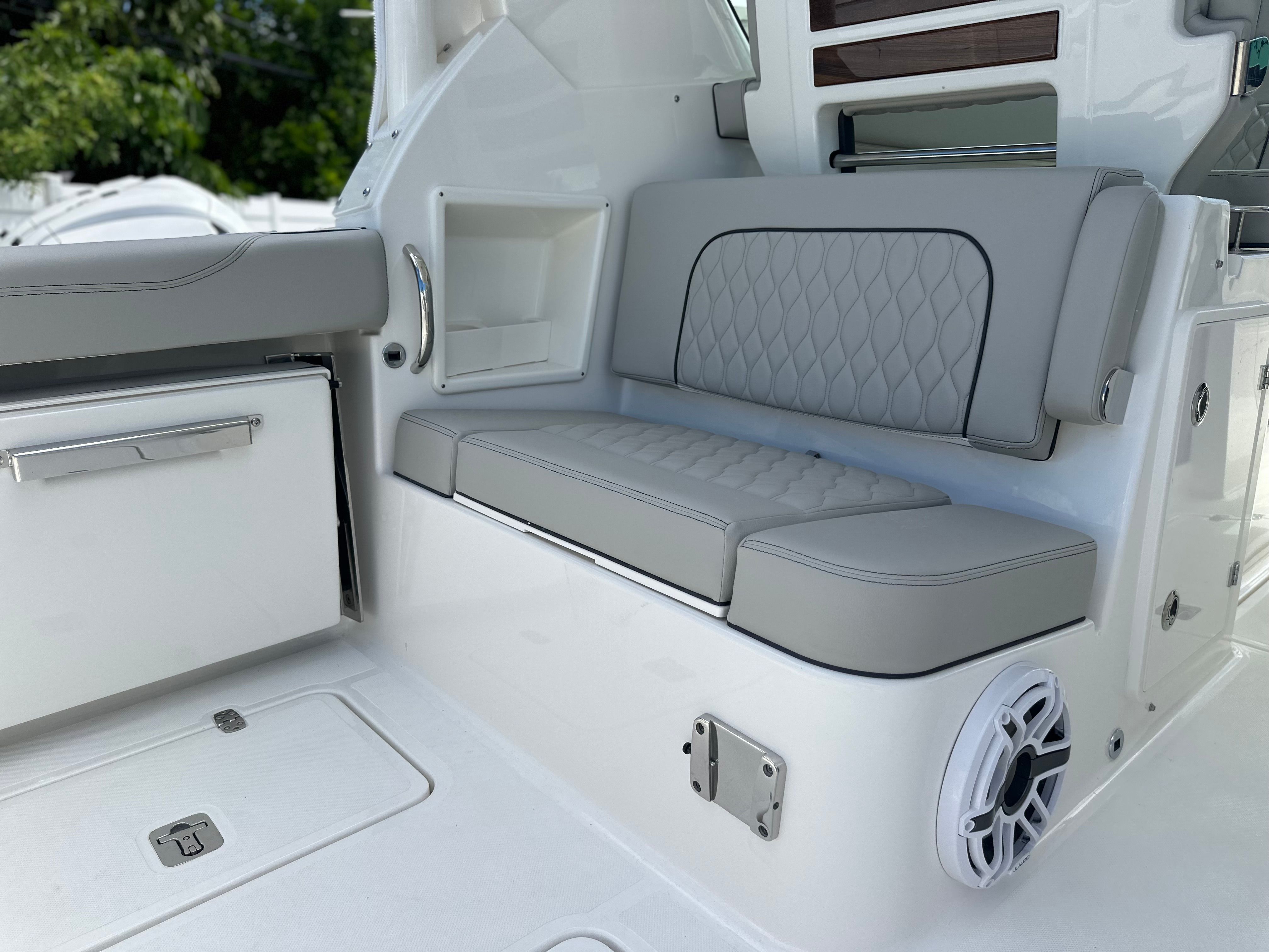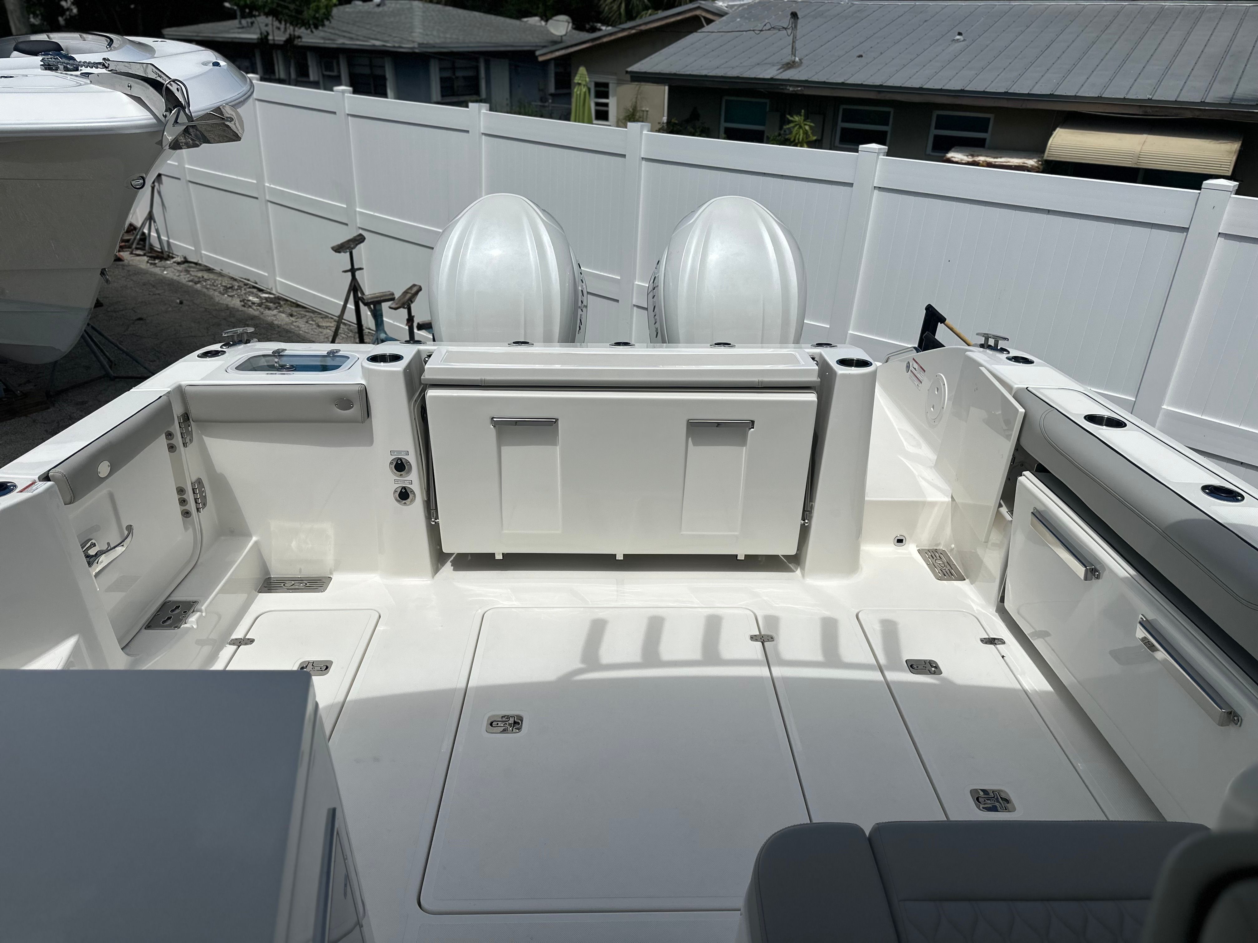 Powering the Pursuit DC 326 are two robust engines, delivering a combined 700 horsepower. This impressive setup ensures exhilarating acceleration, smooth cruising, and reliable handling in a variety of water conditions. Whether you’re navigating coastal waters or venturing offshore, the DC 326’s twin engines provide the confidence and power you need for every adventure. The advanced engineering behind this Dual Console boat guarantees a responsive ride, excellent fuel efficiency, and the ability to reach your favorite destinations quickly and comfortably.