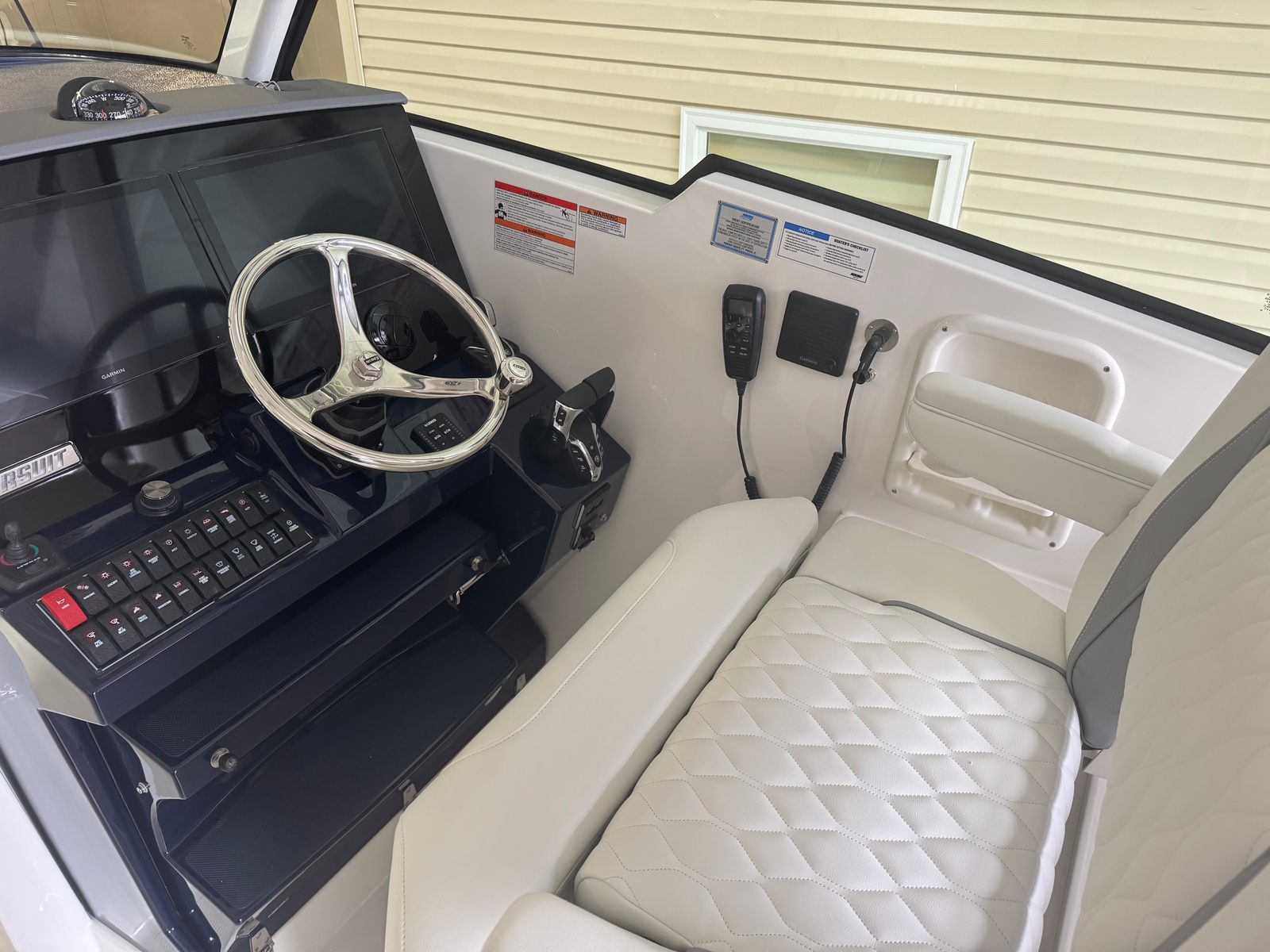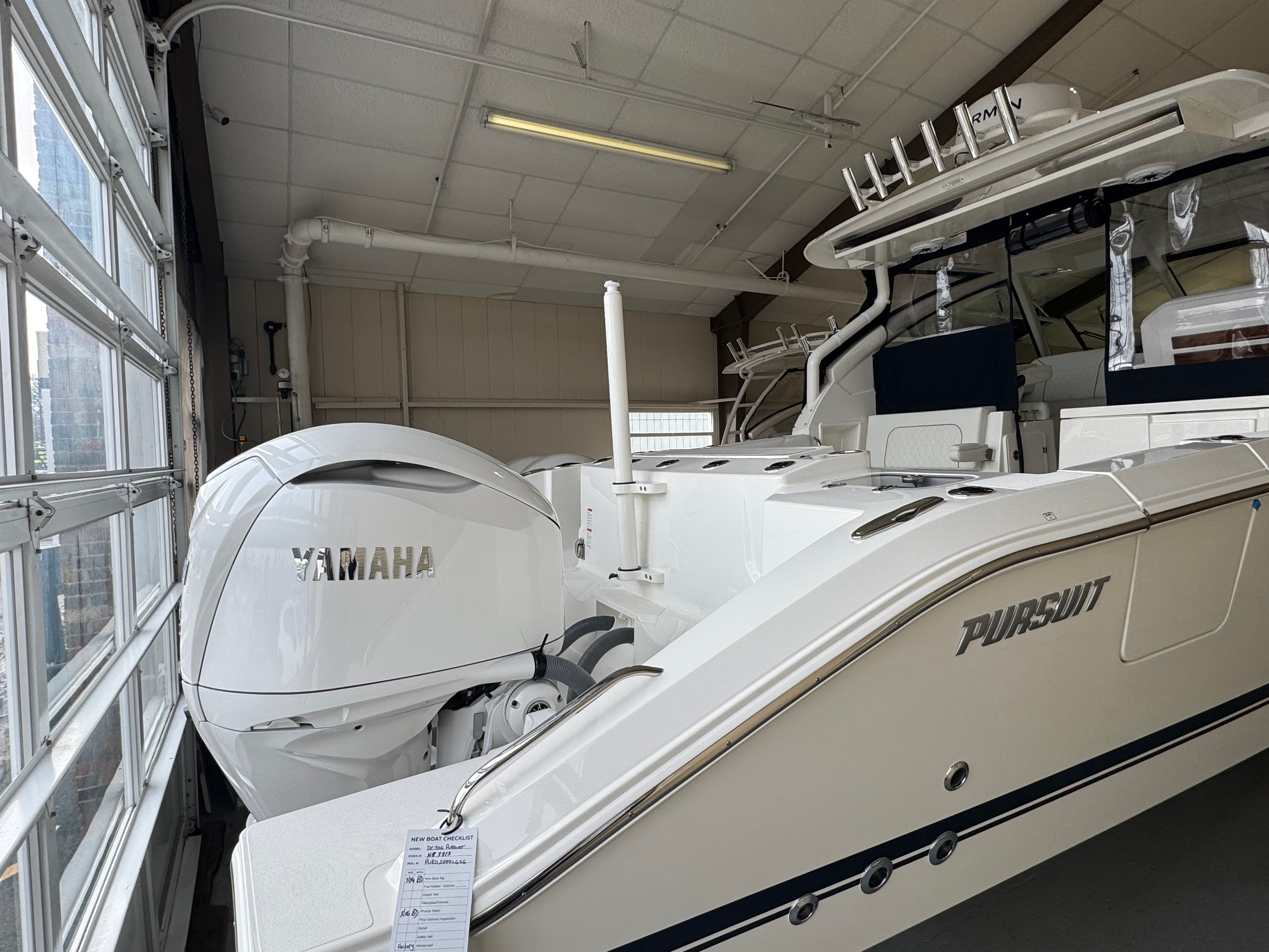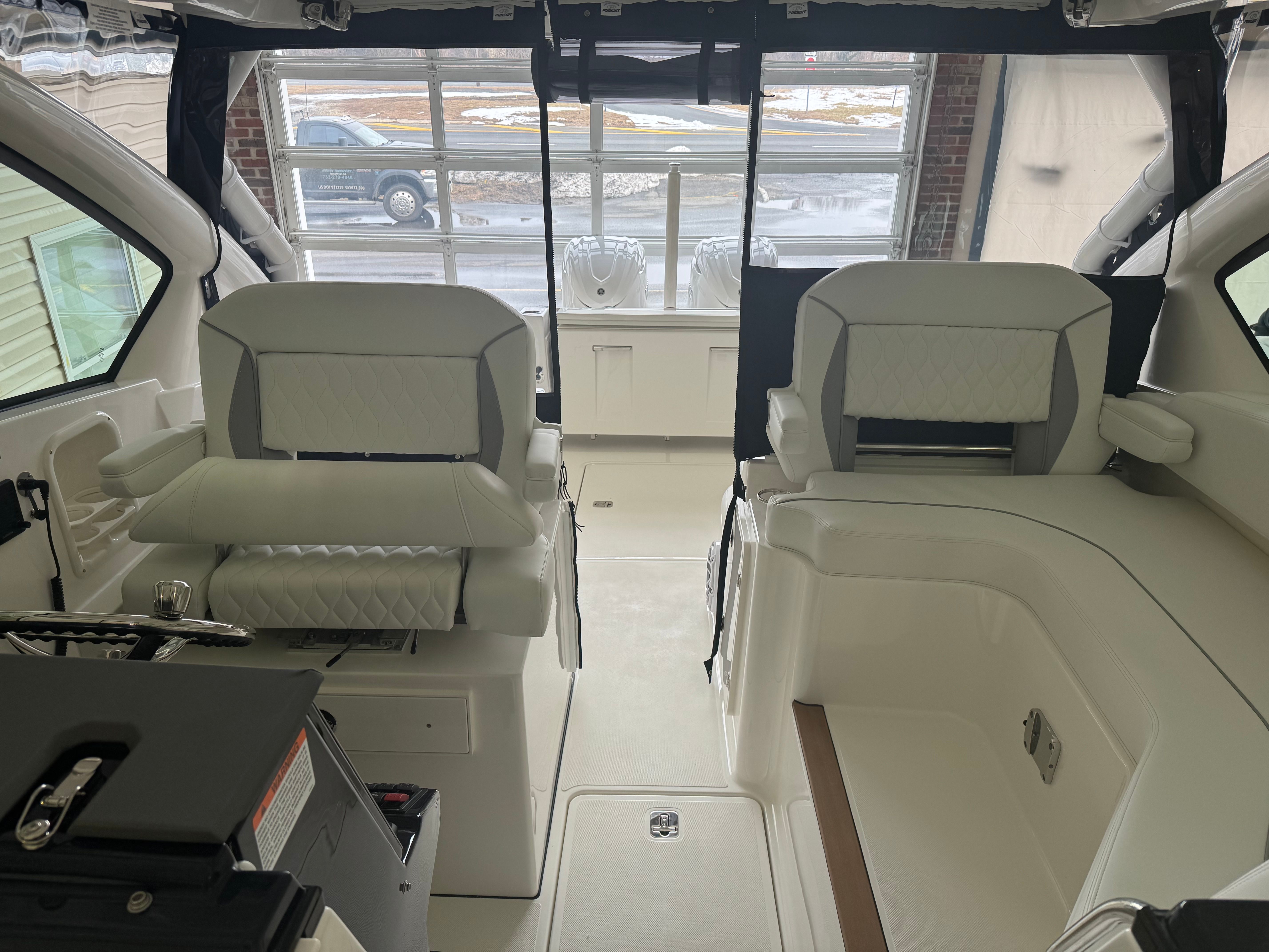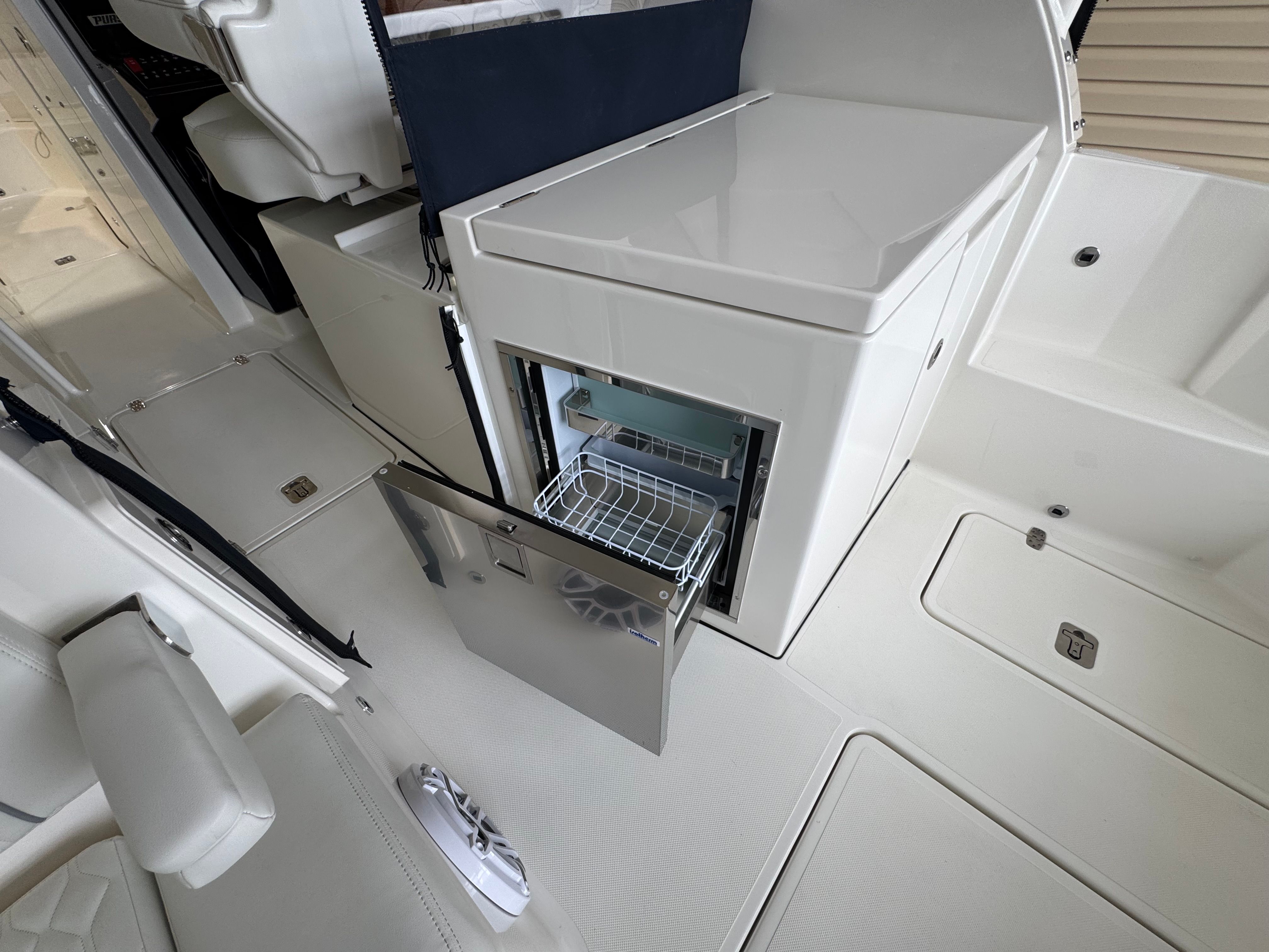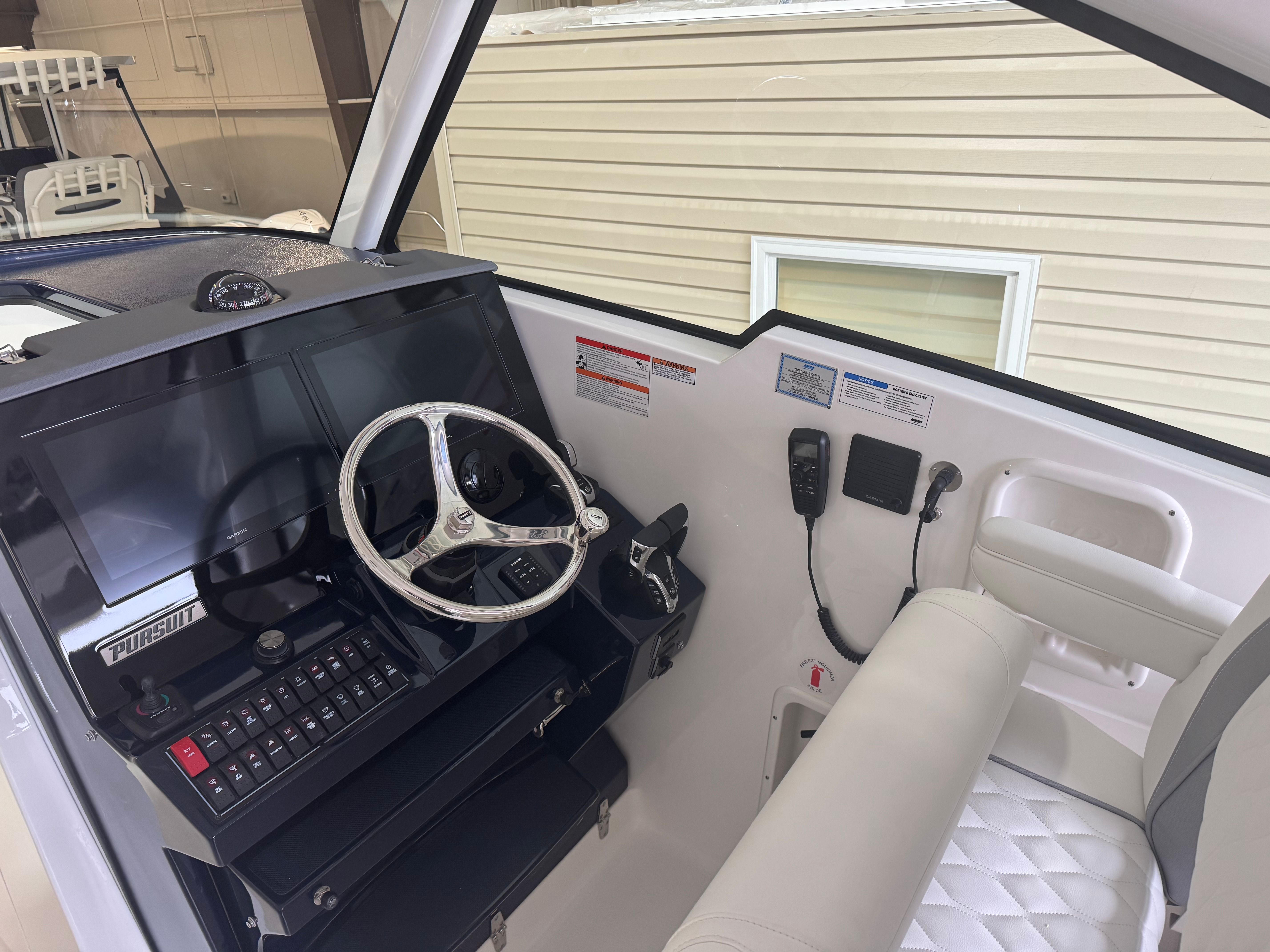 Power and precision define the performance of the Pursuit DC 326. Equipped with twin Yamaha Digital F350 V6 Offshore engines in pearlescent white, this Dual Console boat boasts a combined 700 horsepower. The integrated Digital Electric Steering (DES) and Helm Master EX Digital Electronic Control (DEC) system provide smooth, responsive handling and effortless control at any speed. The advanced Yamaha Joystick Control with full maneuverability, including Set Point and Autopilot features, ensures docking and navigation are both intuitive and stress-free. Whether you’re cruising along the coastline or heading offshore for a day of fishing, the Pursuit DC 326 delivers exhilarating performance and reliability.