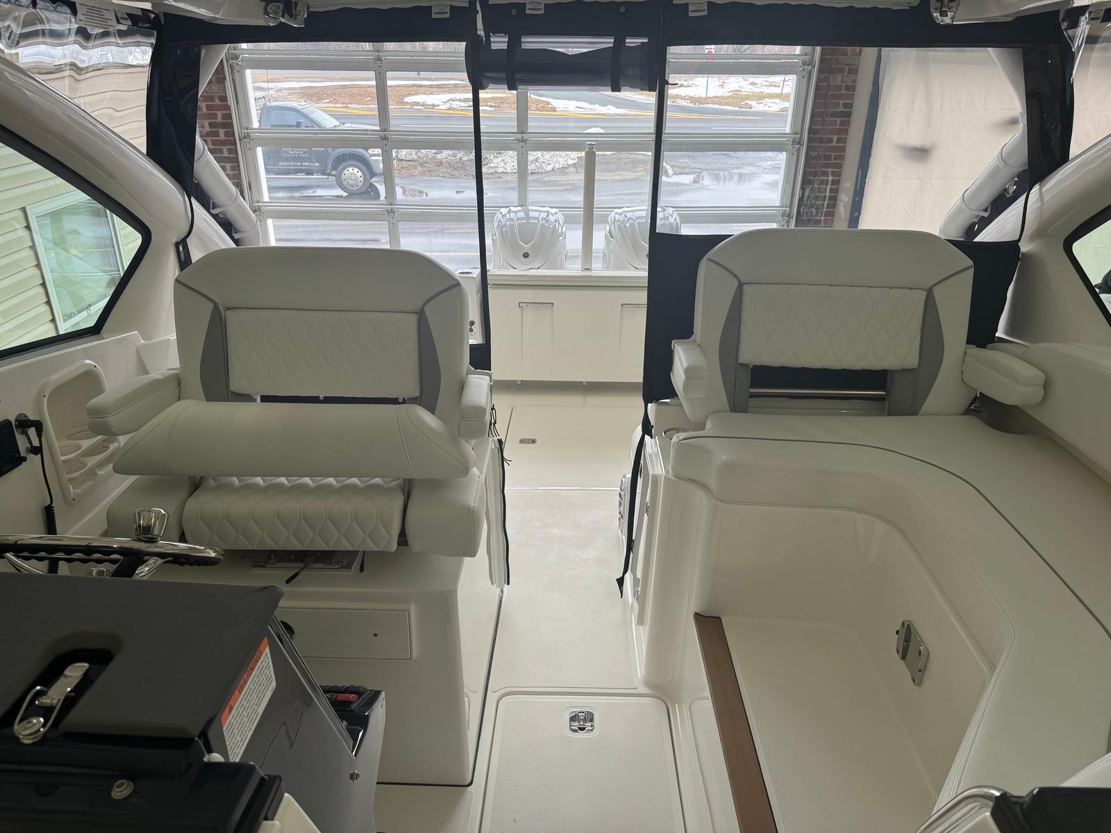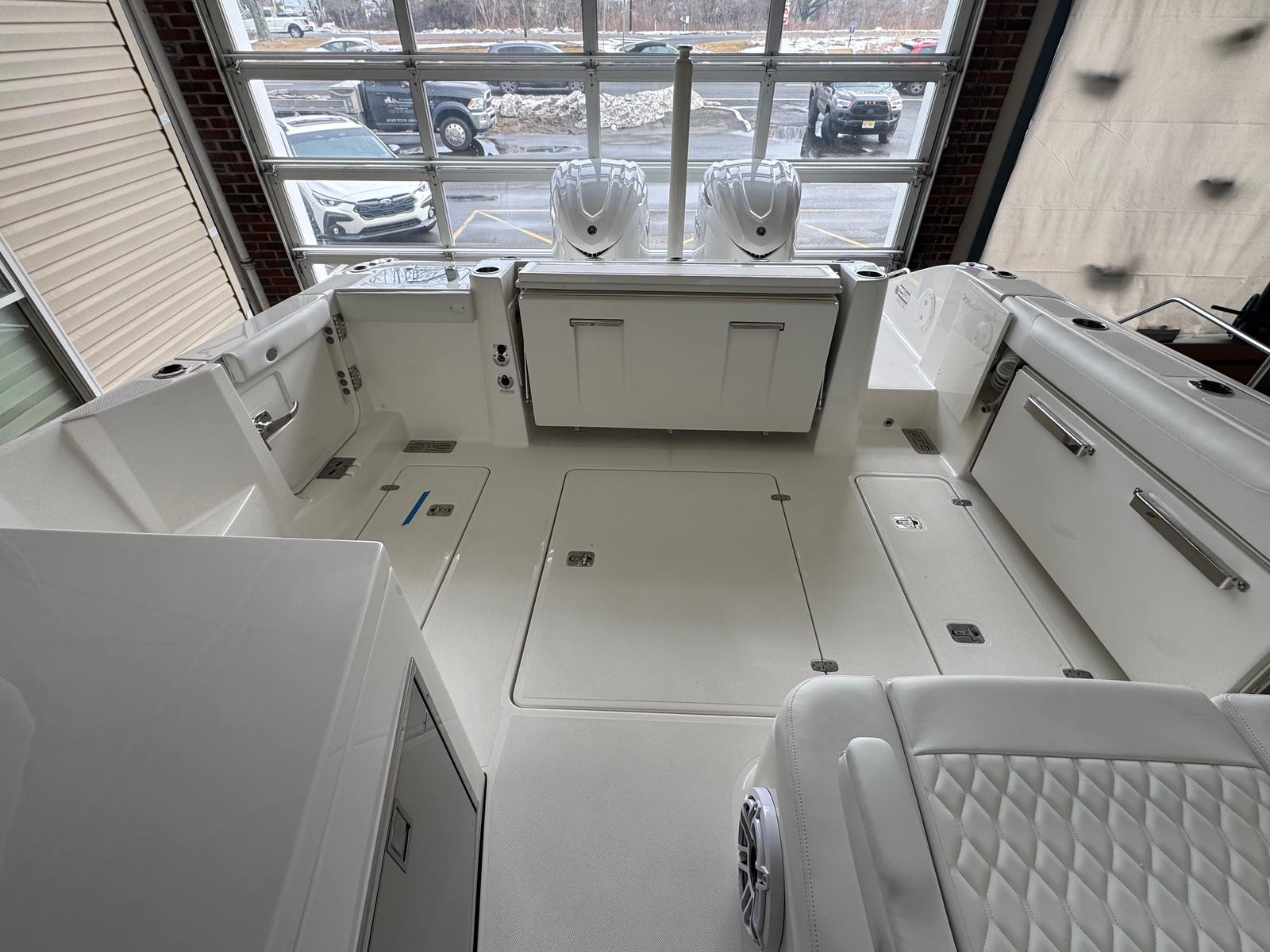 - Twin Yamaha® Digital F350 V6 Offshore (Pearlescent White) w/Integrated Digital Electric Steering (DES) and Helm Master® EX Digital Electronic Control (DEC) (does not include joystick control), Multifunction Display Interface and Manual Engine Flushing System