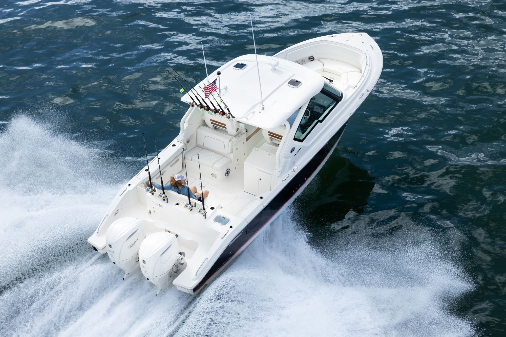 - Twin Yamaha® Digital F350 V6 Offshore (Pearlescent White) w/Integrated Digital Electric Steering (DES) and Helm Master® EX Digital Electronic Control (DEC) (does not include joystick control), Multifunction Display Interface and Manual Engine Flushing System