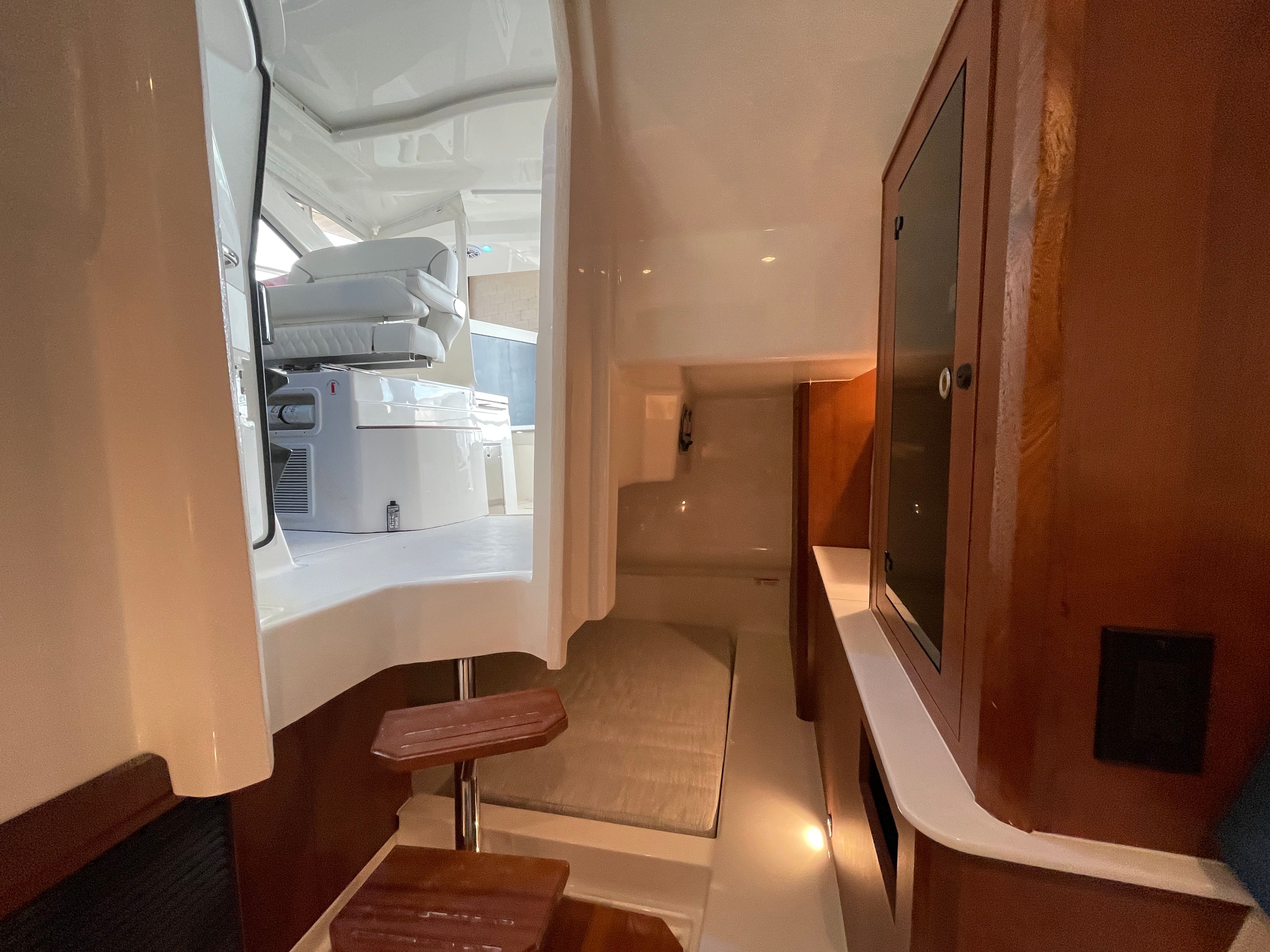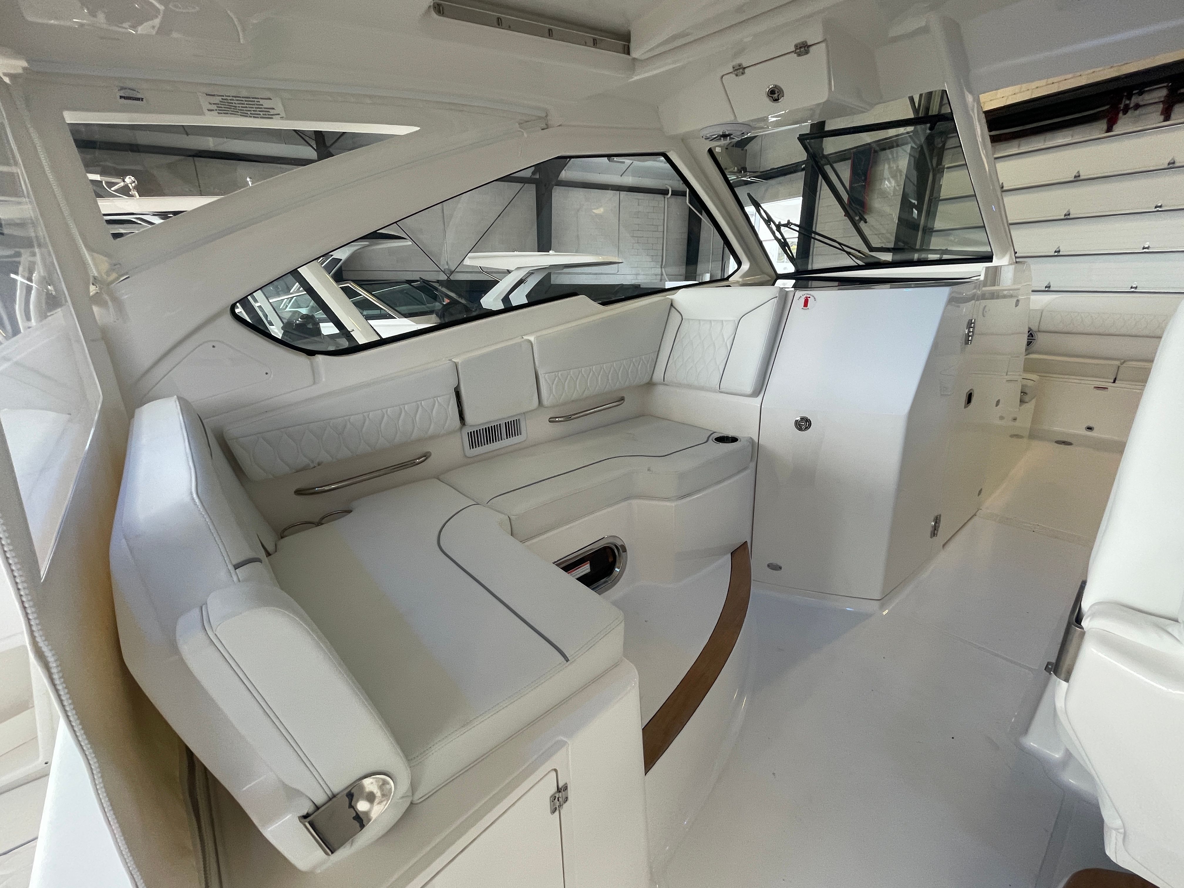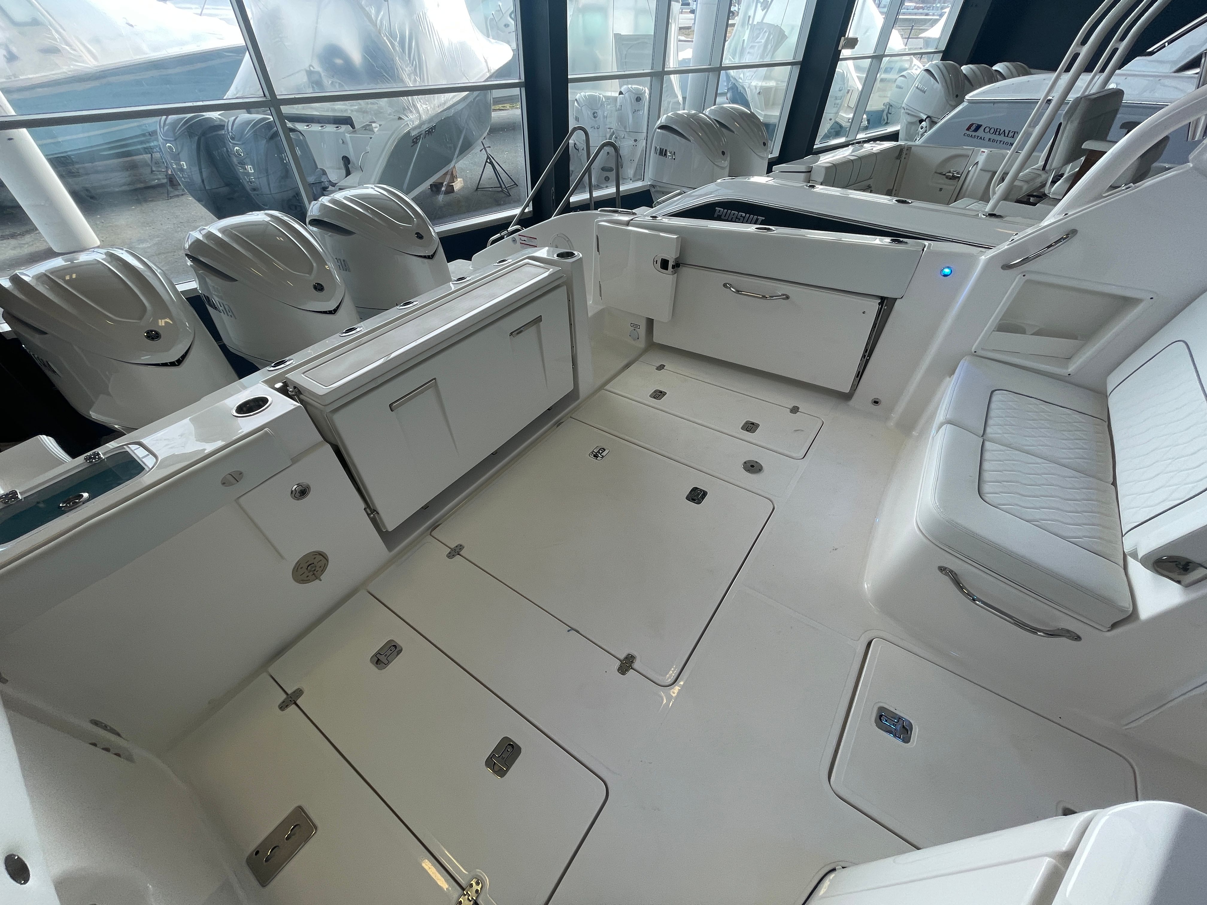 Practicality meets luxury in the Pursuit 365 DC. The boat’s generous length and smart layout provide ample storage for gear, water toys, and personal items, keeping your deck clutter-free and organized. Docking and maneuvering are simplified by the responsive triple-engine setup, allowing you to navigate marinas and tight spaces with confidence. The efficient design ensures you get the most out of every gallon of fuel, making longer trips more accessible and cost-effective.The air-conditioned cockpit extends your boating season, offering a cool retreat during summer and a cozy haven when the weather turns. The durable, easy-to-clean surfaces and protective covers help maintain the boat’s pristine appearance, reducing maintenance and preserving value over time. Whether you are planning a quick day trip or an extended adventure, the Pursuit 365 DC adapts to your needs, delivering both convenience and peace of mind.