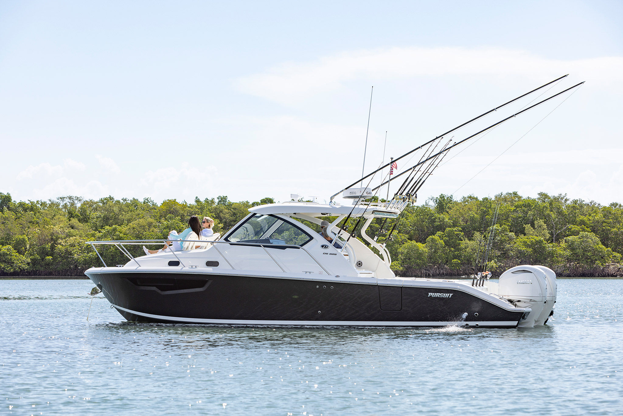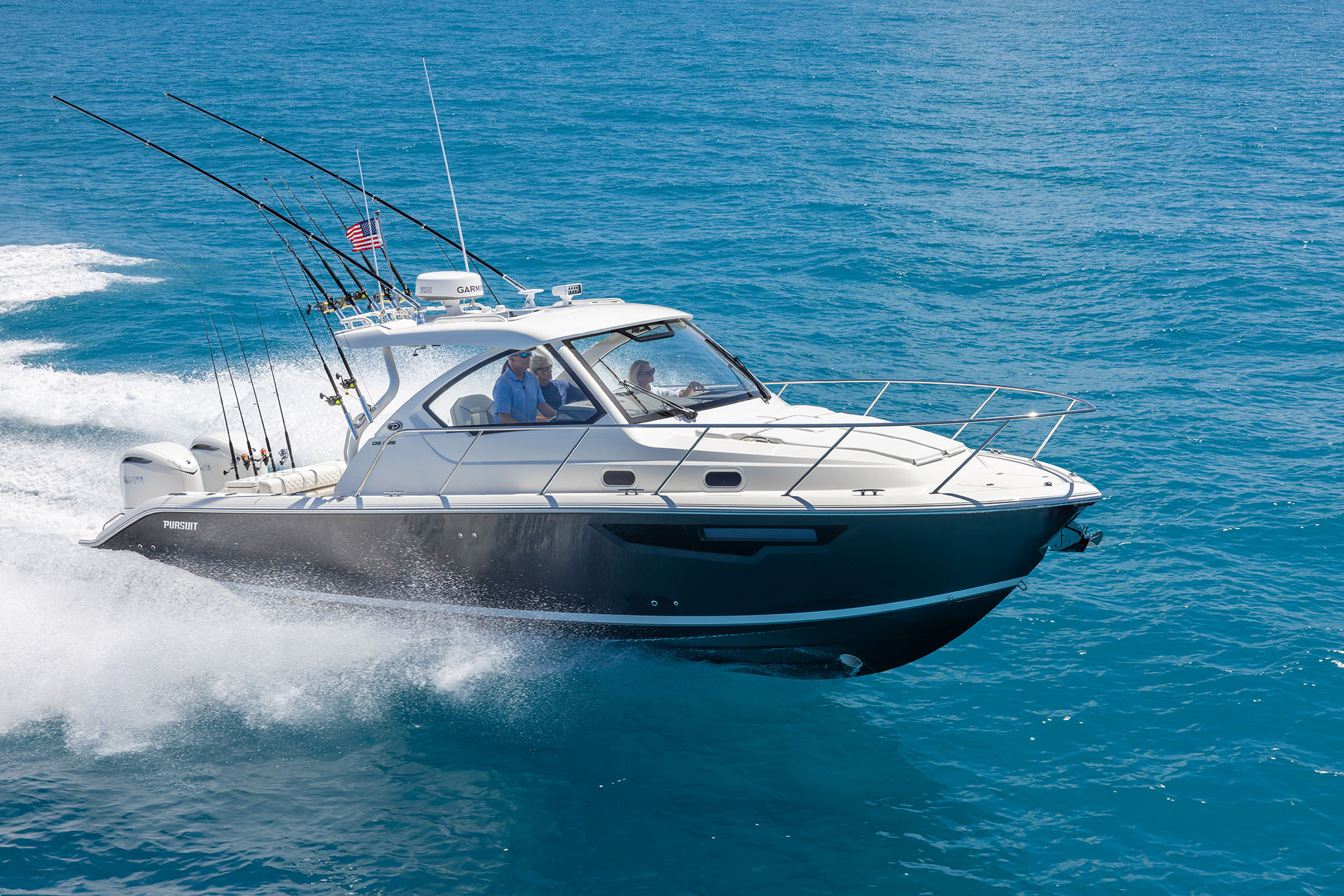 The Pursuit OS 325 is designed with practicality in mind, making ownership easy and enjoyable. The manual engine flushing system simplifies maintenance, helping you keep your engines in top condition with minimal effort. The Multifunction Display Interface provides real-time information and control, enhancing safety and convenience. The boat’s length and hull design make it easy to dock and maneuver, whether you’re in a busy marina or a secluded cove. Ample storage throughout the vessel ensures you have plenty of space for gear, supplies, and personal items, so you’re always prepared for your next adventure. Fuel efficiency is optimized through advanced engine technology, allowing you to spend more time on the water and less at the pump.