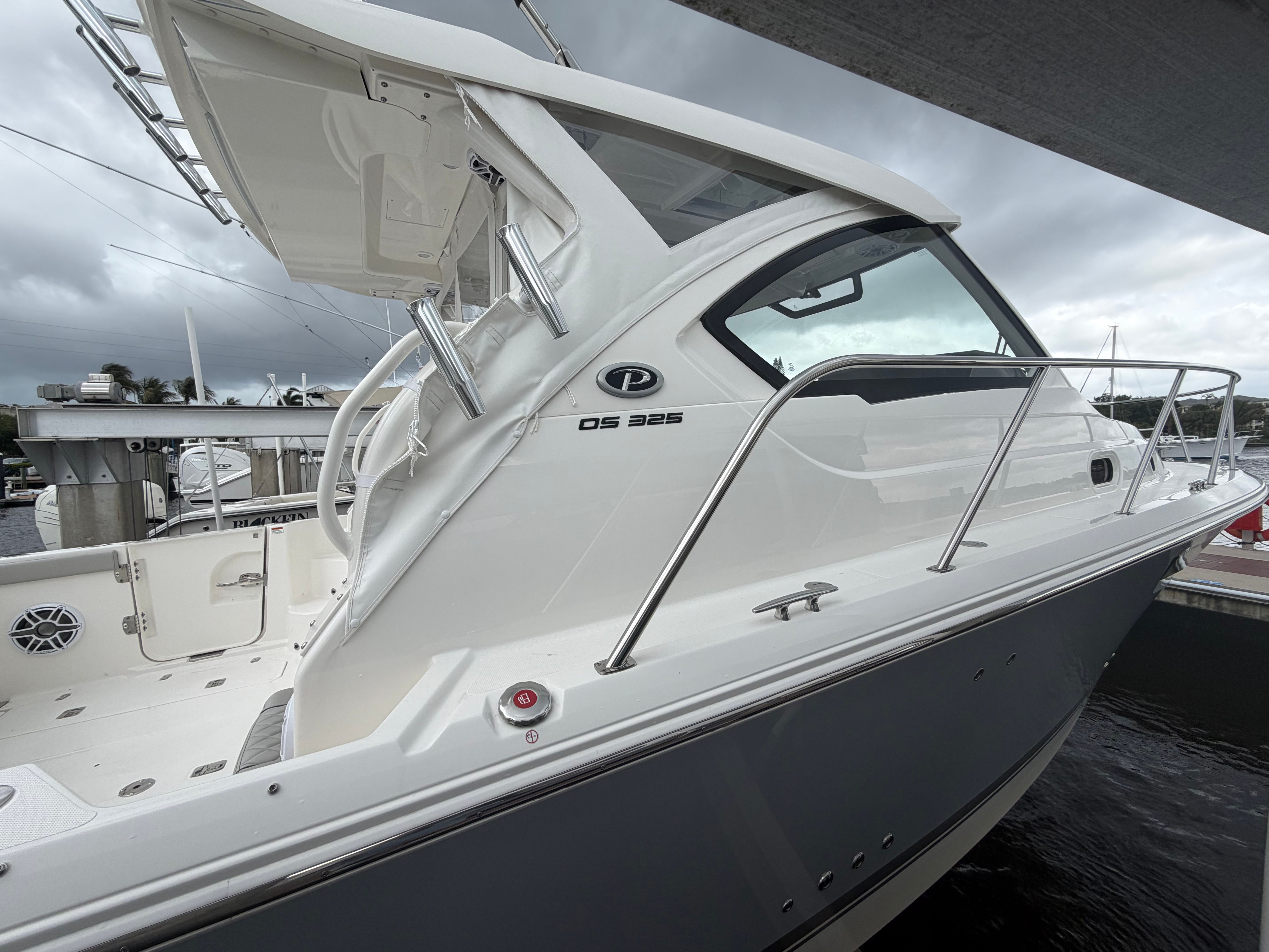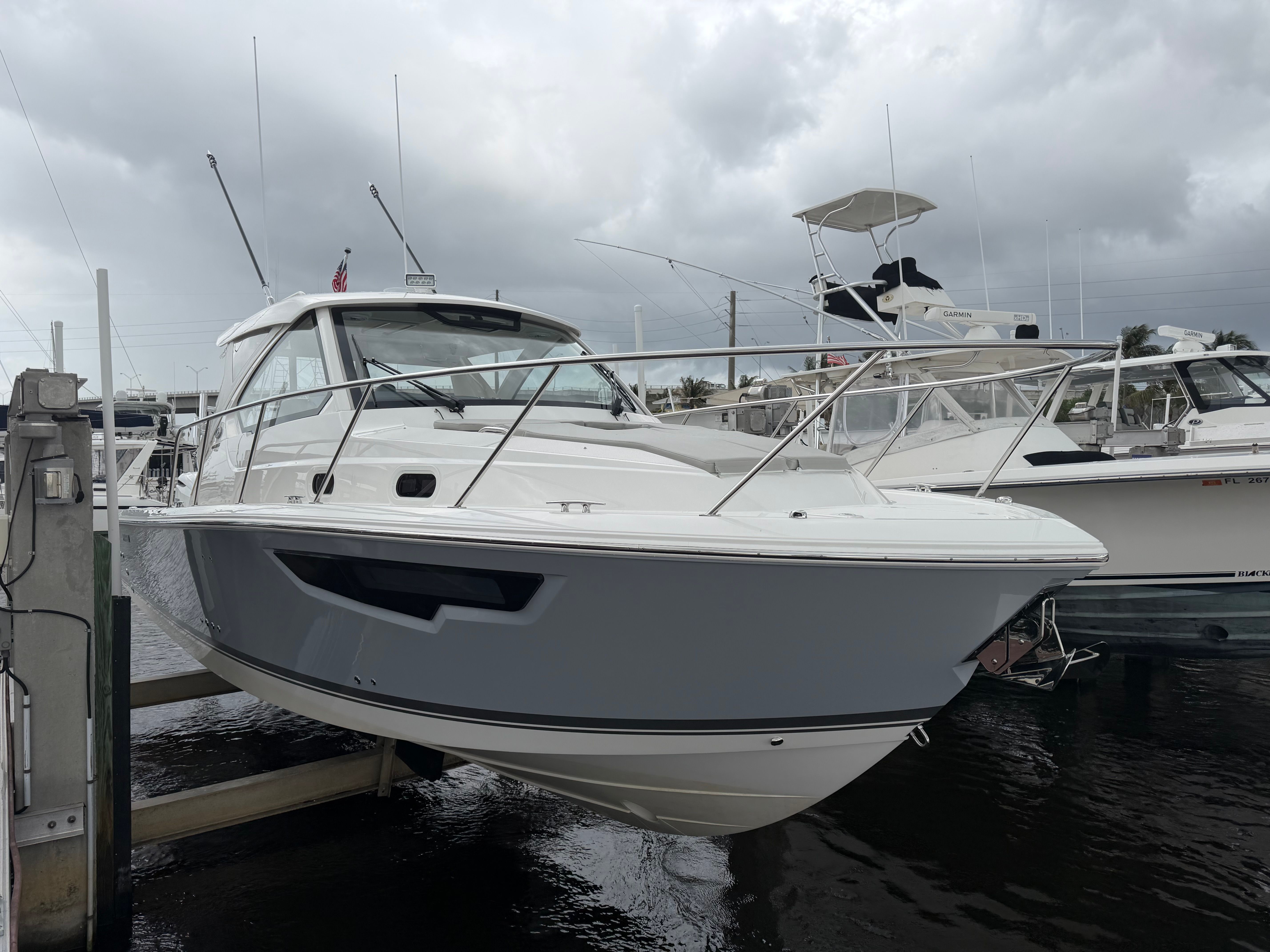 The 2026 Pursuit OS 325 is a 34.5-foot cruiser that embodies the spirit of adventure and relaxation. As a new model, it showcases the latest advancements in marine engineering and design, making it a top choice for boating enthusiasts who demand both comfort and capability. With its sleek Neptune Gray hull and striking black bootstripe with black accent, this Pursuit OS 325 commands attention at every marina and on every open water journey.
