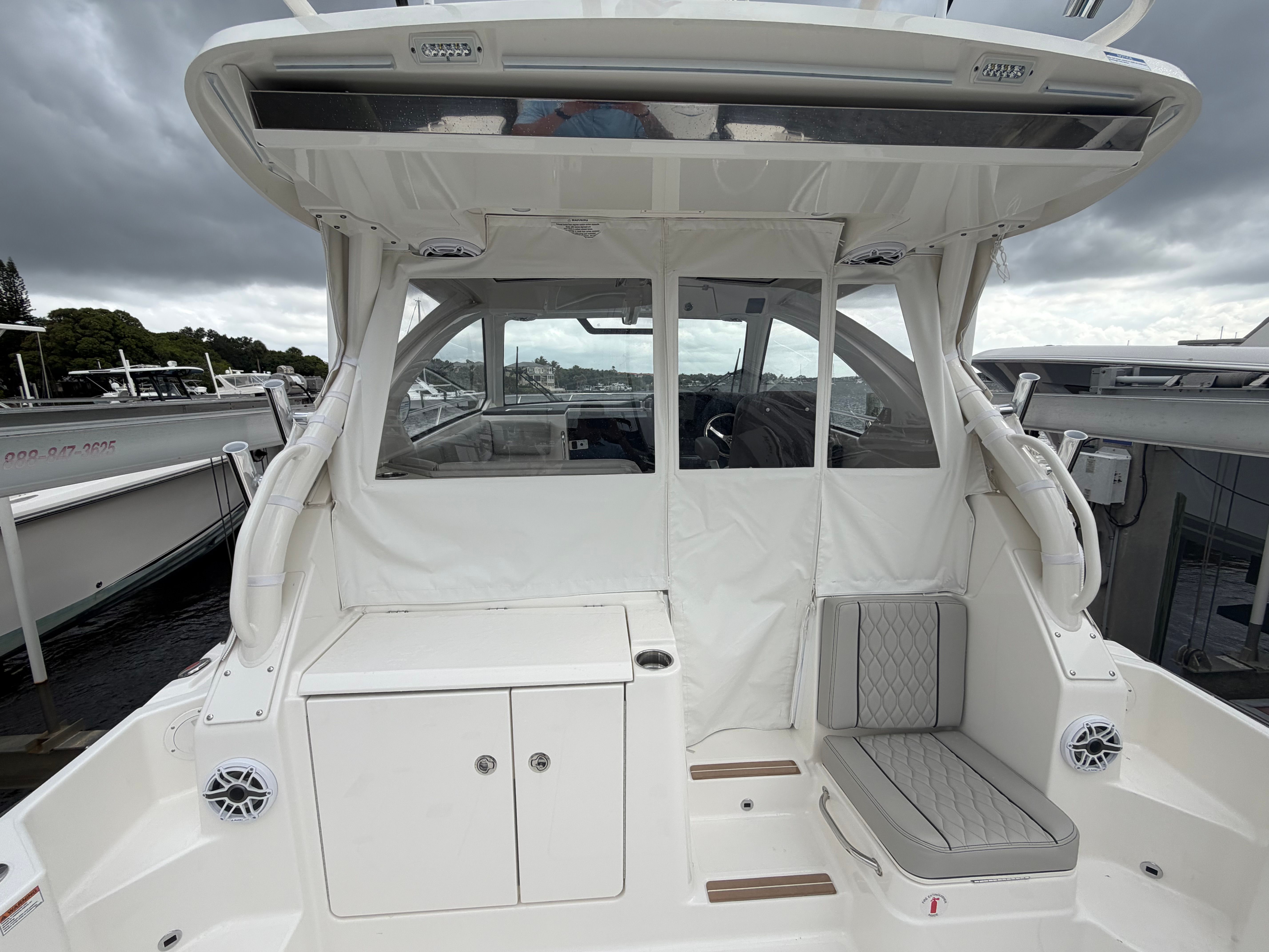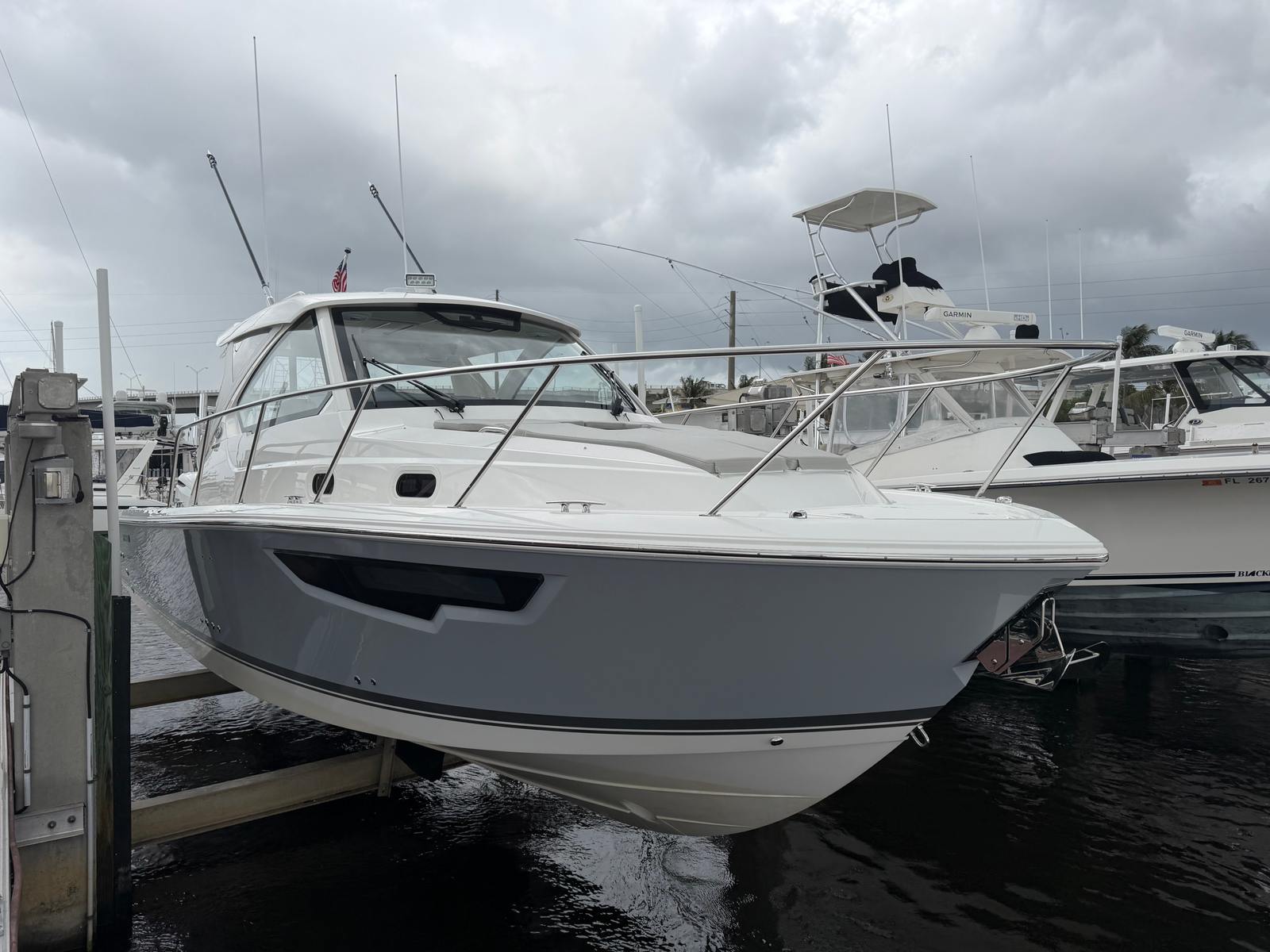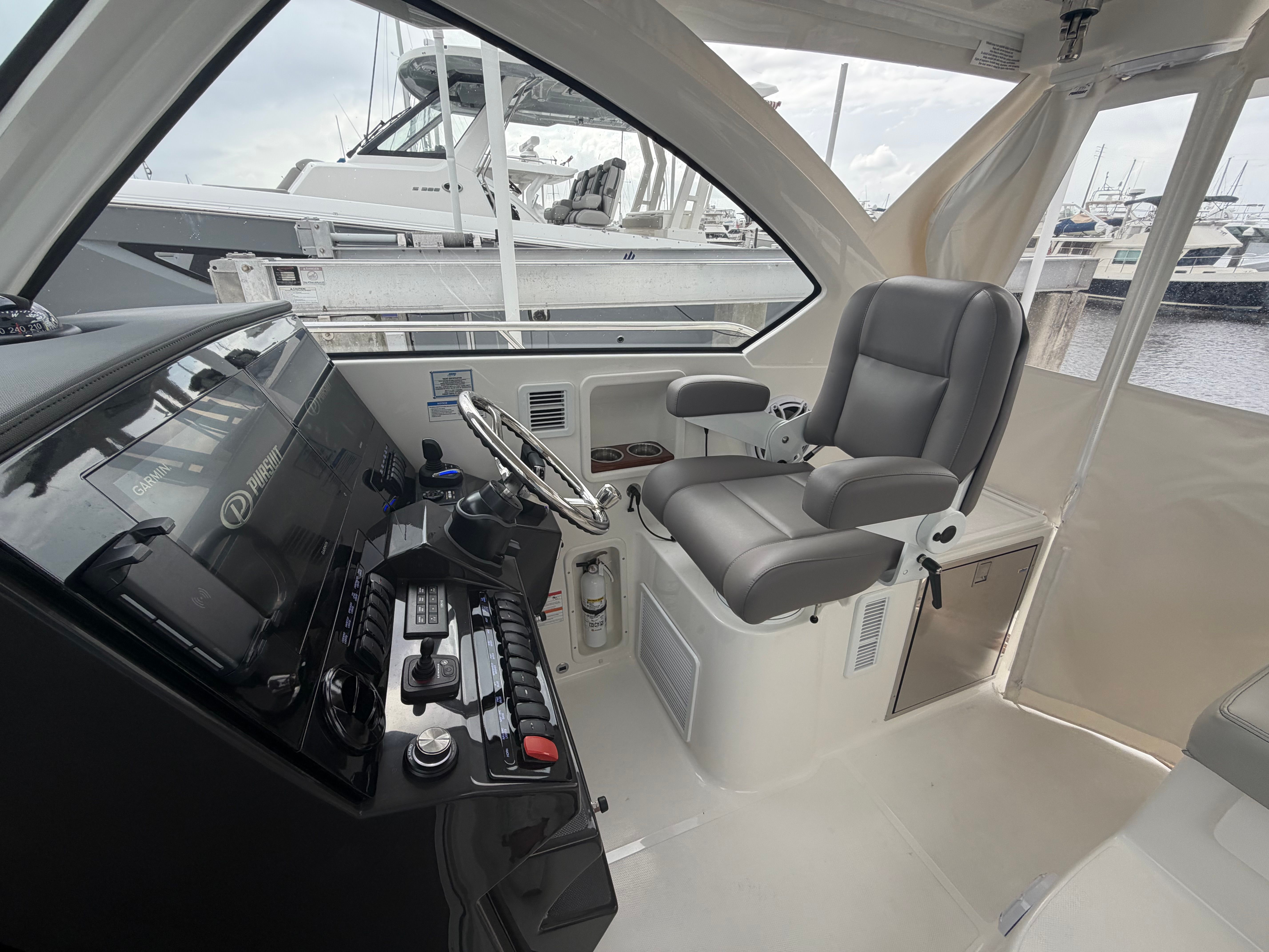 The Pursuit OS 325 is as practical as it is luxurious. Its 34.5-foot length provides ample space for guests and gear, while still being manageable for docking and storage. The Helm Master Full Maneuverability system makes handling the boat in tight spaces a breeze, giving you confidence whether you are docking at a busy marina or navigating narrow channels.The diesel genset and cabin air conditioning system enhance comfort during overnight stays or extended cruises, allowing you to explore further and stay longer. The boat's efficient design and powerful engines offer an ideal blend of performance and fuel economy, making it a smart choice for both short outings and longer journeys.