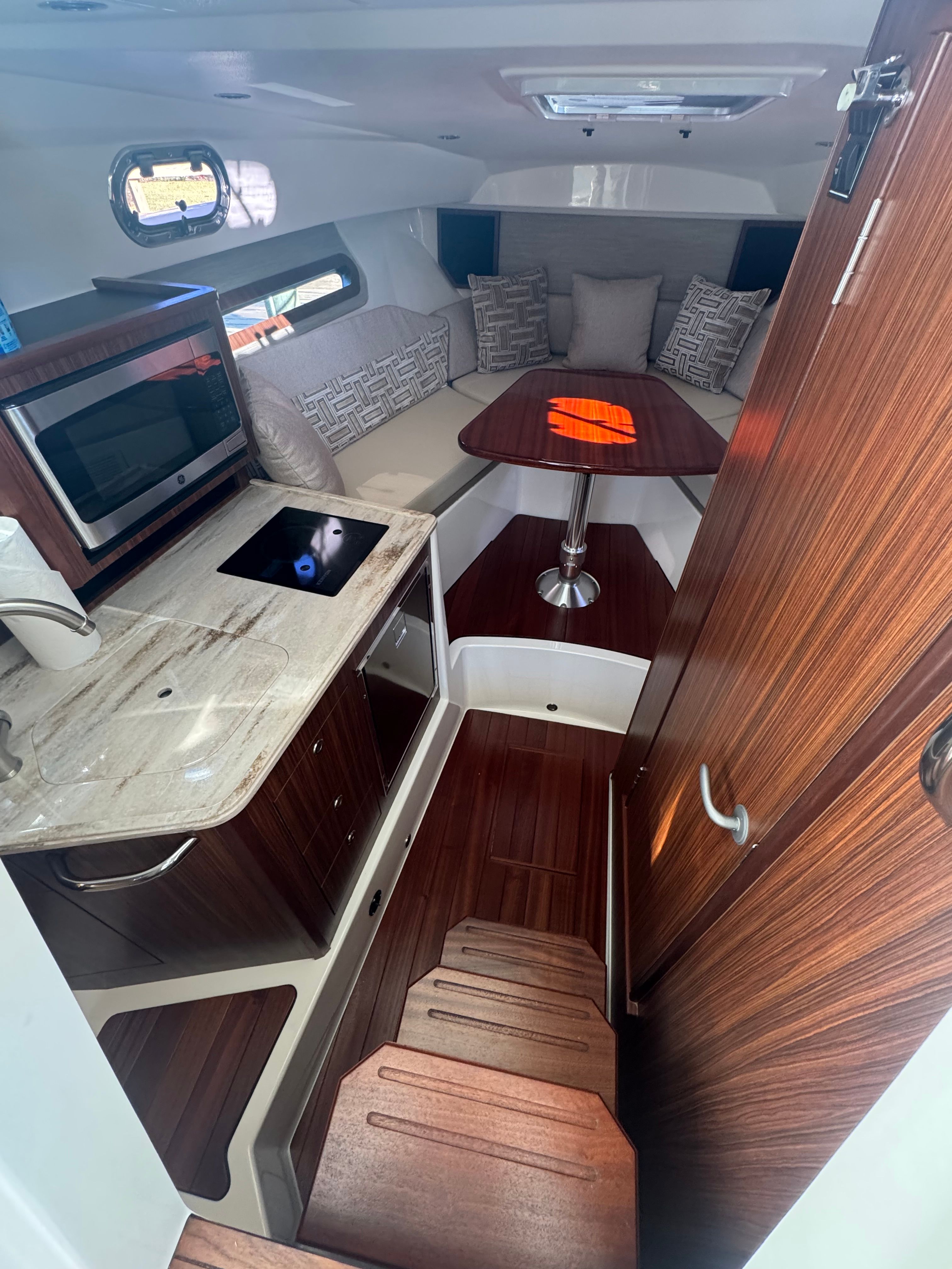 The Pursuit OS 325 Cruiser shines in a variety of scenarios, making it a versatile choice for boaters of all interests. For families, it’s the perfect platform for fun-filled outings, offering plenty of space for kids to play and adults to relax. Fishing enthusiasts will appreciate the boat’s stability and performance, making it easy to reach prime fishing spots and enjoy a productive day on the water. If you’re seeking a luxury getaway, the OS 325’s elegant design and comfortable amenities provide a private retreat where you can unwind and escape the everyday. Whether you’re hosting a sunset cruise, exploring hidden coves, or embarking on a multi-day adventure, this Pursuit boat for sale adapts to your needs and exceeds your expectations.