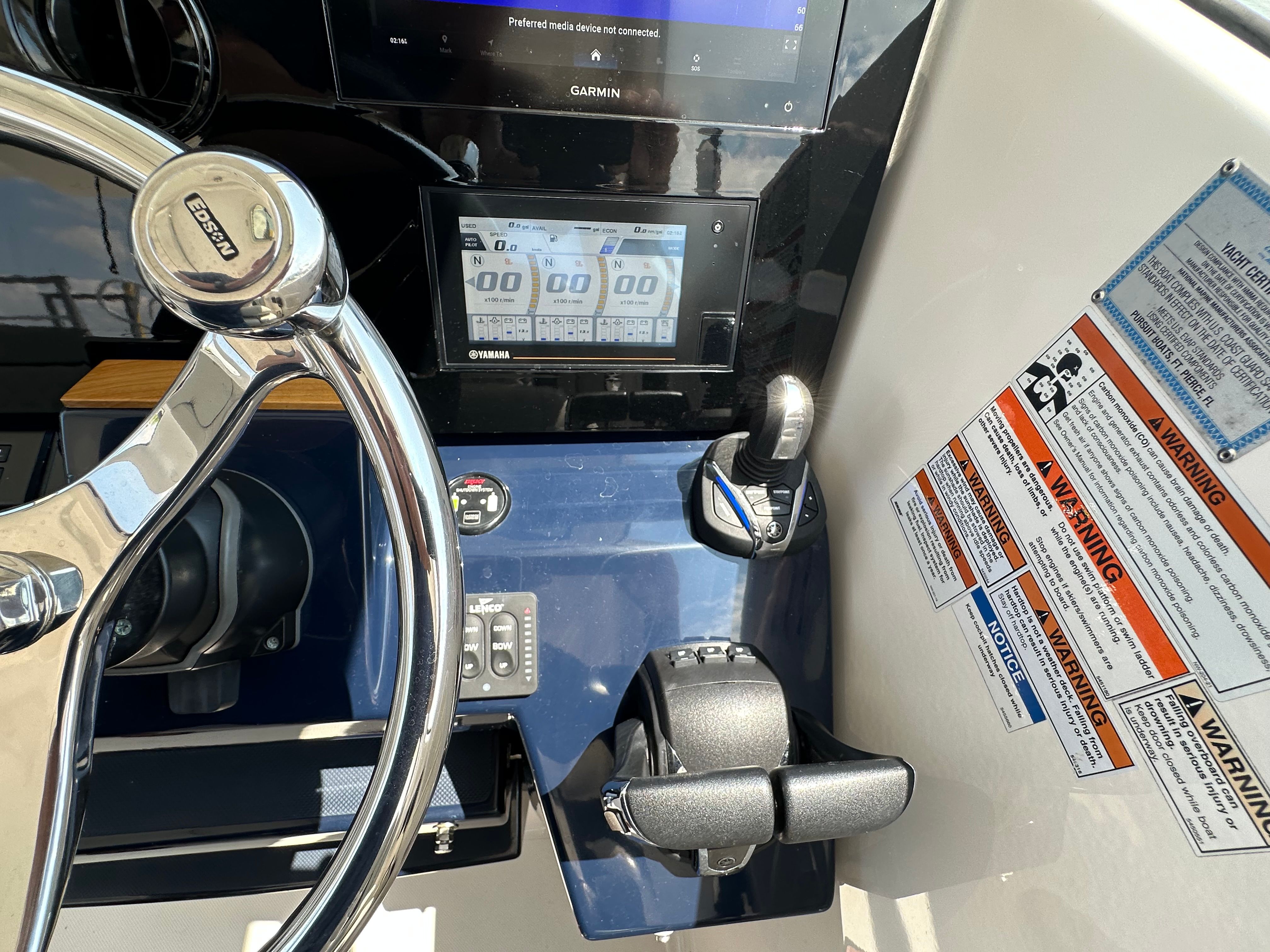 Power and precision define the performance of the Pursuit 355 OS. Equipped with three robust engines delivering a combined 900 horsepower, this cruiser is engineered for exhilarating speed and smooth handling. The triple-engine setup ensures reliable power, whether you are cruising at a leisurely pace or accelerating to reach your favorite destinations quickly. With 350 engine hours, these engines have been well-maintained and are primed for many more seasons of enjoyment. The Pursuit 355 OS offers a responsive ride, making it easy to navigate through various water conditions while providing the confidence and control that experienced boaters appreciate.