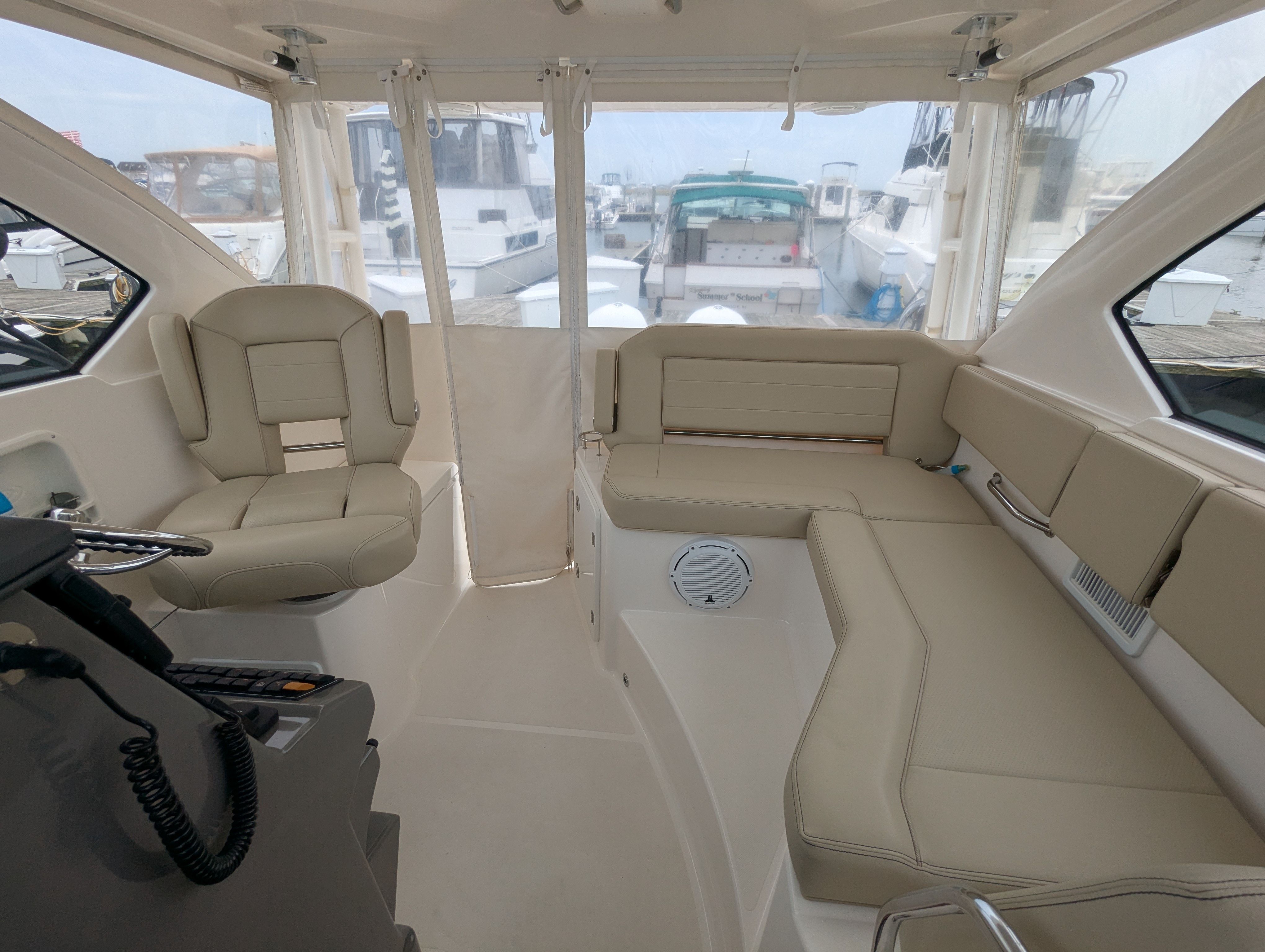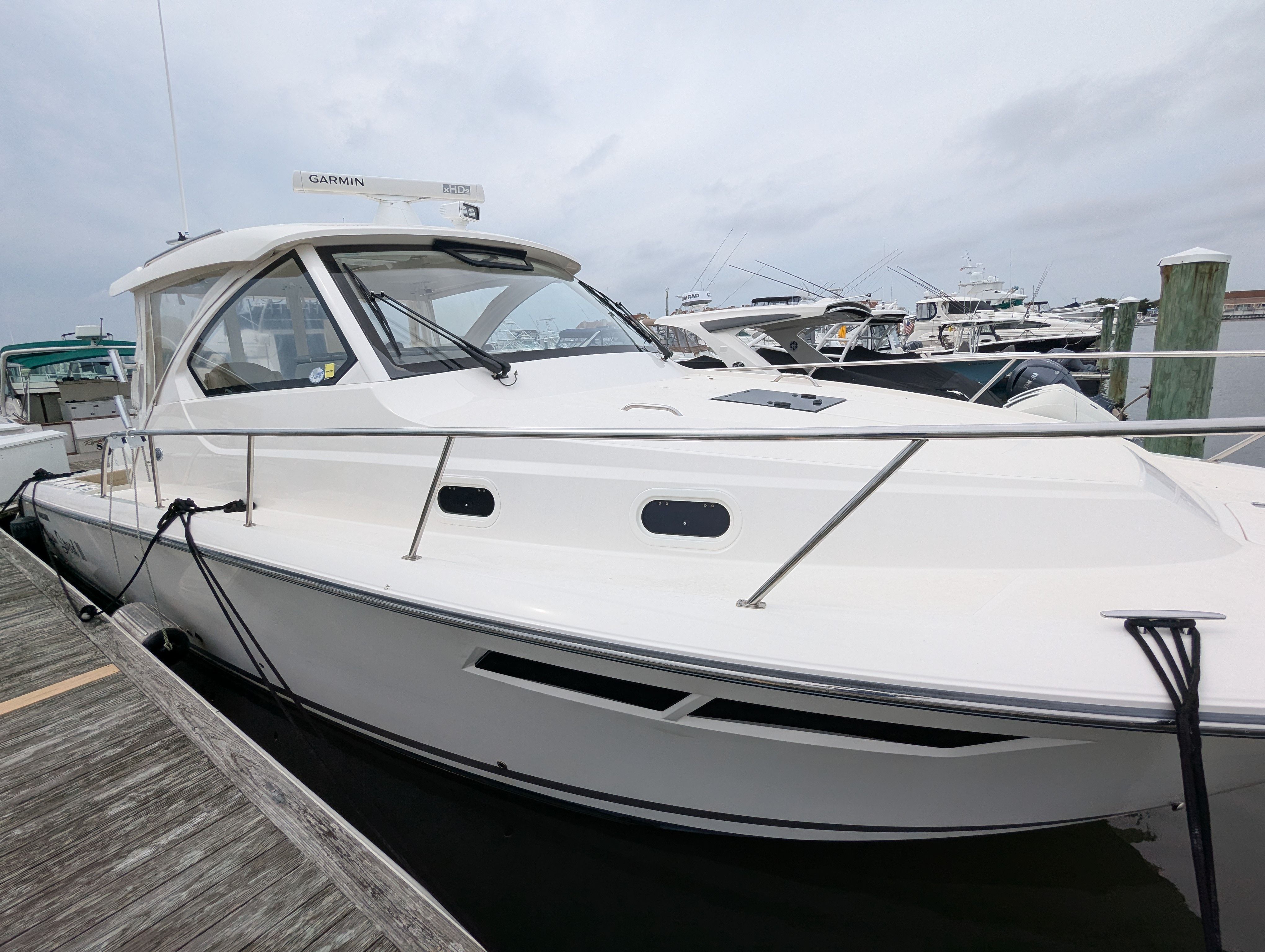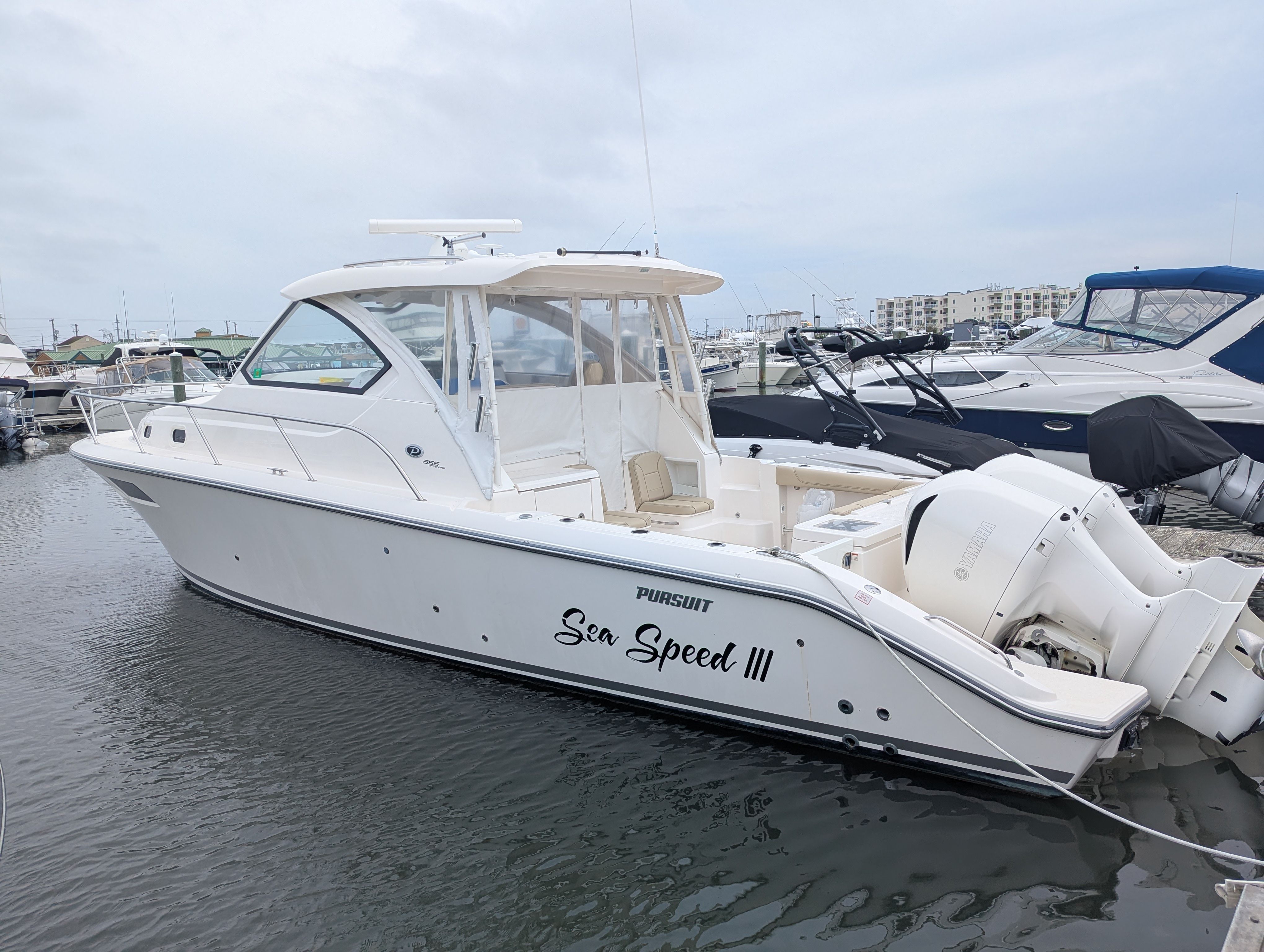 Powering the Pursuit OS 355 are two robust engines, delivering a combined 700 horsepower. With only 201 engine hours, these engines have plenty of life left, promising reliable performance and exhilarating speed. Whether you’re cruising along the coastline, heading out for a weekend getaway, or exploring new waters, the OS 355’s twin-engine setup ensures smooth handling, quick acceleration, and impressive fuel efficiency.The dual engines not only provide ample power for a variety of activities but also enhance maneuverability and safety. Navigating tight marinas or docking becomes a breeze, while the horsepower allows you to reach your destination swiftly and comfortably. For those who appreciate the thrill of boating, the Pursuit OS 355’s performance metrics make it a standout choice among cruiser boats for sale.