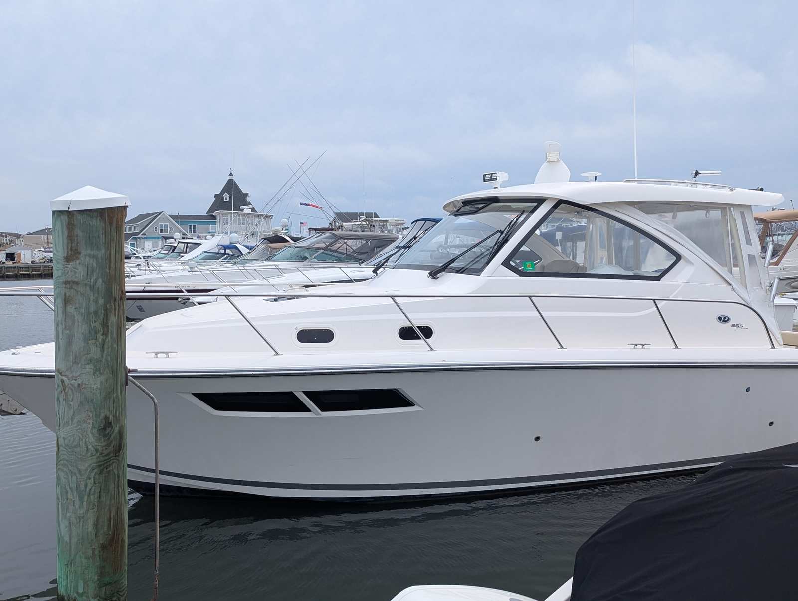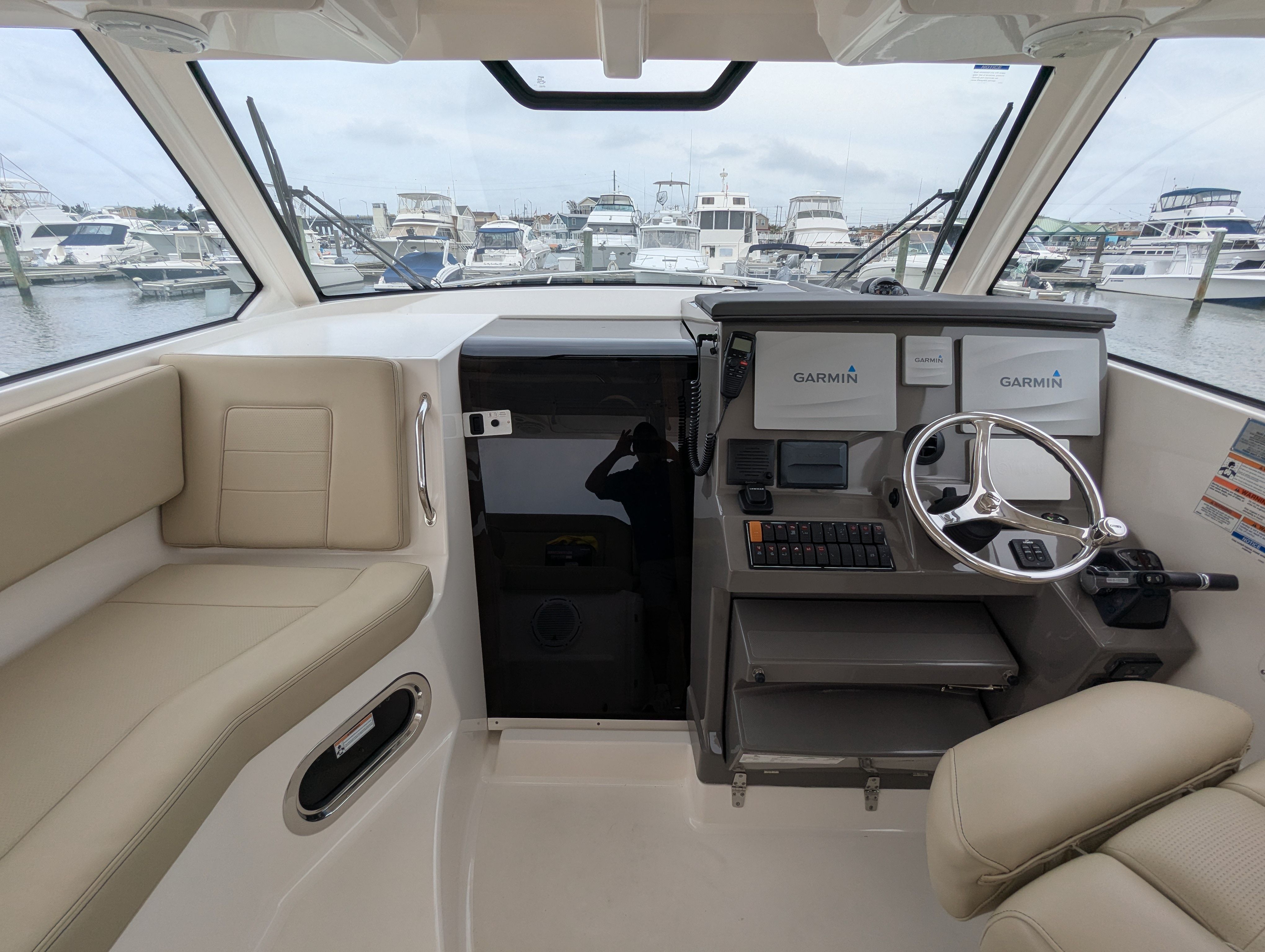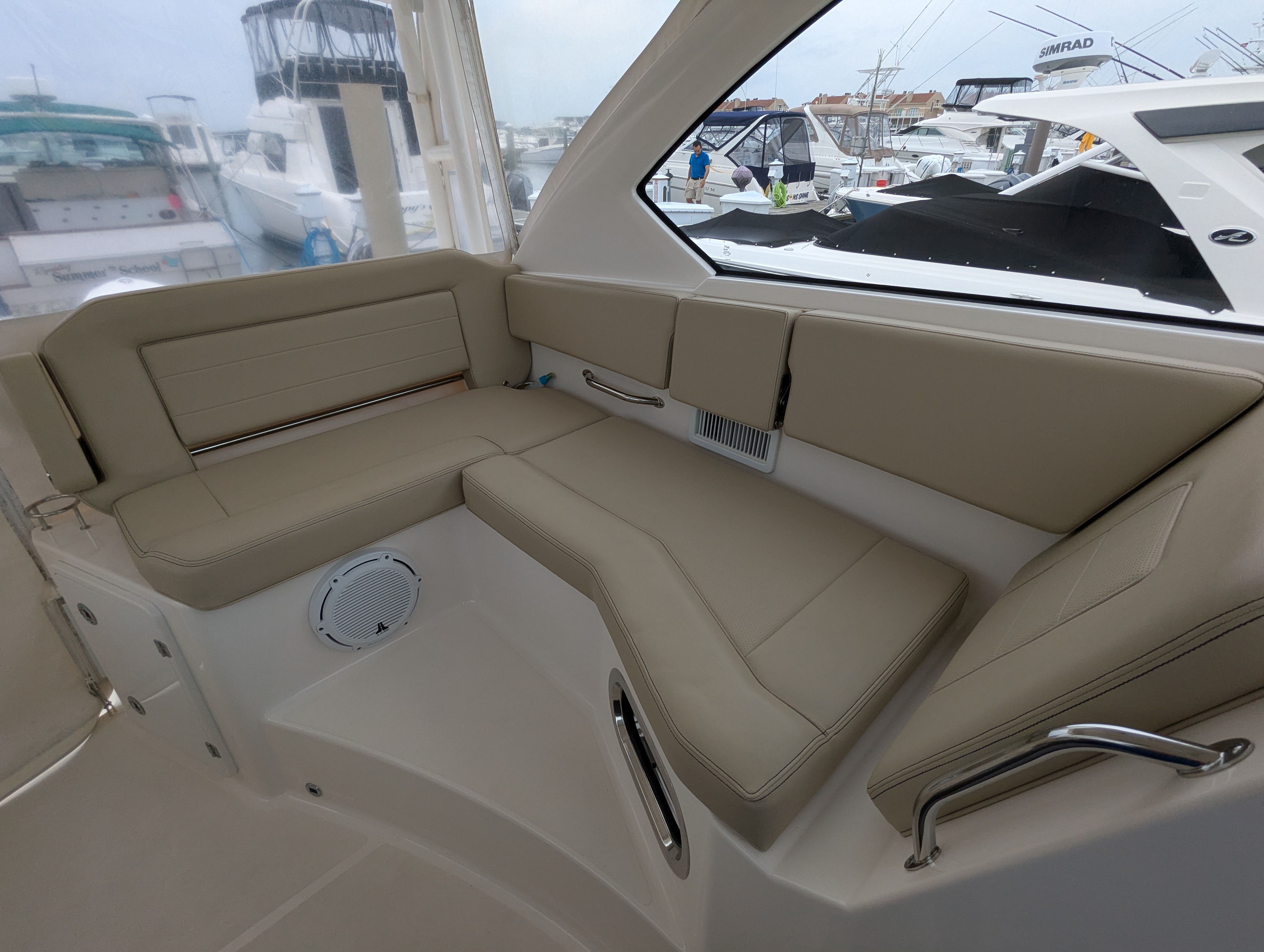 The Pursuit OS 355 Cruiser is designed with both leisure and practicality in mind. Its spacious layout offers plenty of room for guests, making it perfect for social gatherings, family outings, or relaxing solo escapes. The boat’s length of nearly 38 feet provides a stable platform, ensuring comfort even in choppy waters.Special features of the OS 355 include a thoughtfully designed cockpit and cabin, which maximize both functionality and luxury. The helm station is equipped for easy navigation, while the seating arrangements allow for relaxation and conversation. The boat’s construction reflects Pursuit’s commitment to quality, with attention to detail evident in every aspect of the design.