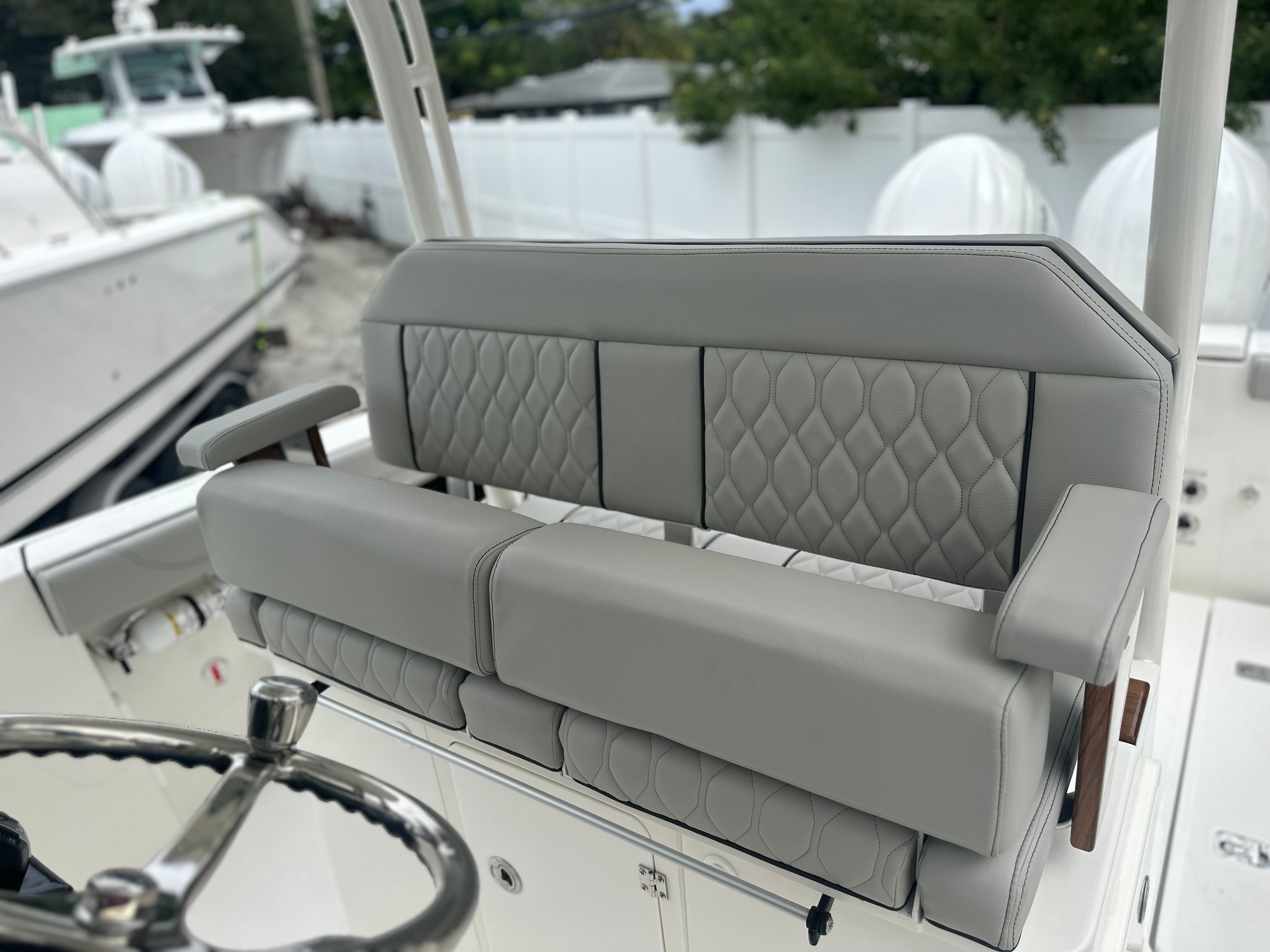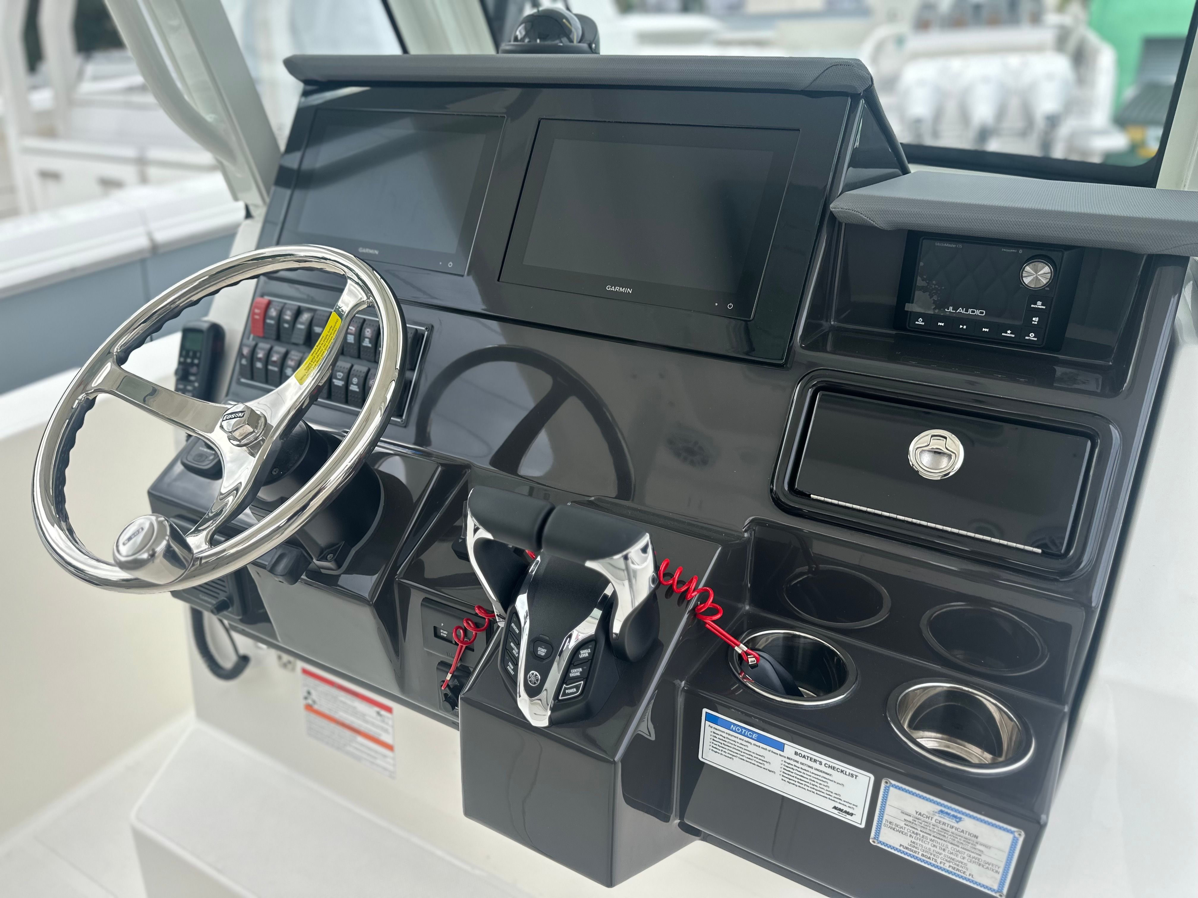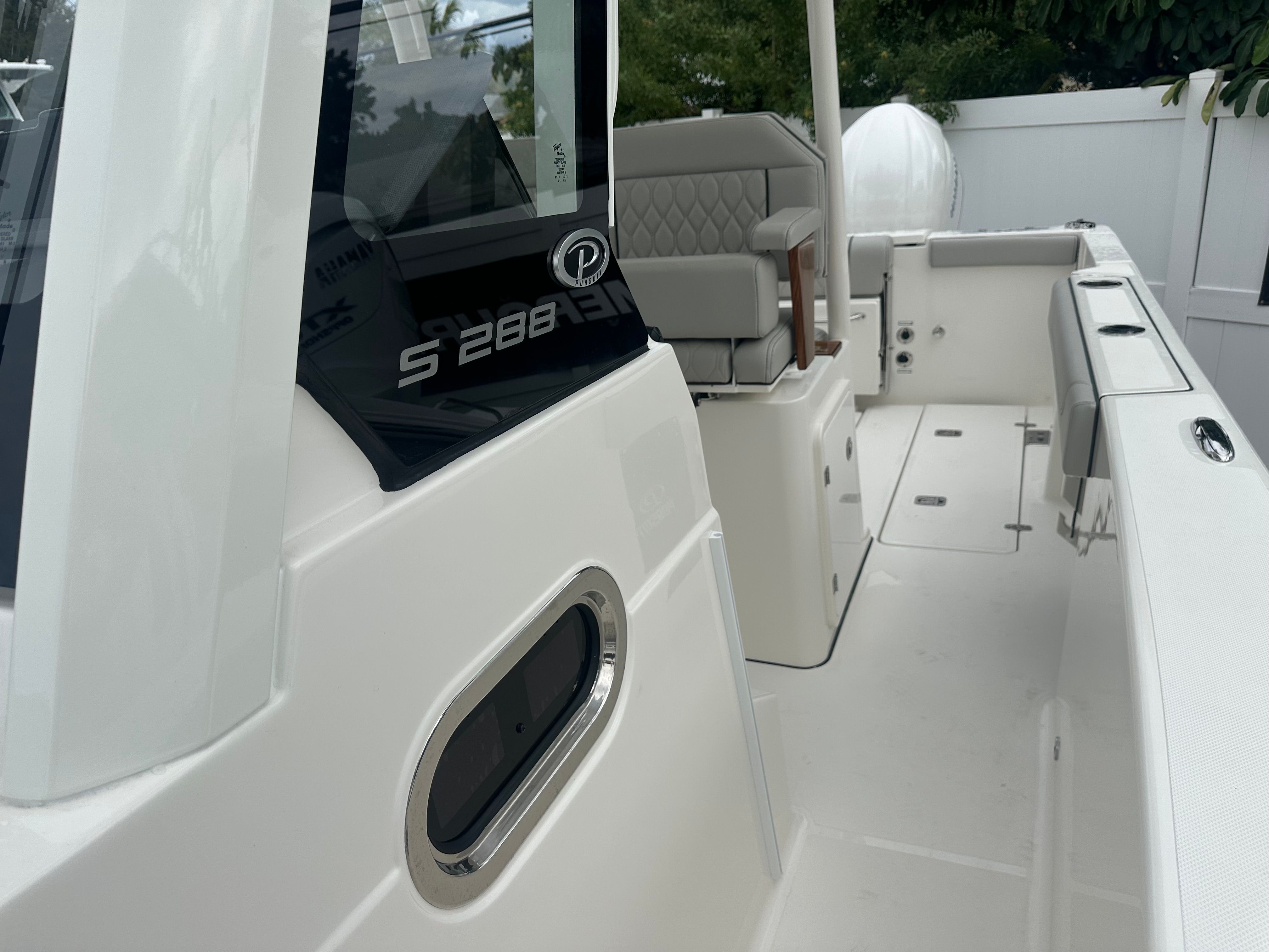 Powered by twin Yamaha Pearlescent White F300 engines, the Pursuit S 288 delivers a combined 600 horsepower for an exhilarating ride. These engines are engineered for smooth acceleration, impressive top speeds, and reliable performance, making every journey memorable. The advanced bow thruster enhances maneuverability, allowing for precise handling in tight spaces and effortless docking. Whether you’re navigating busy marinas or exploring open waters, the S 288’s performance capabilities ensure a confident and enjoyable experience.