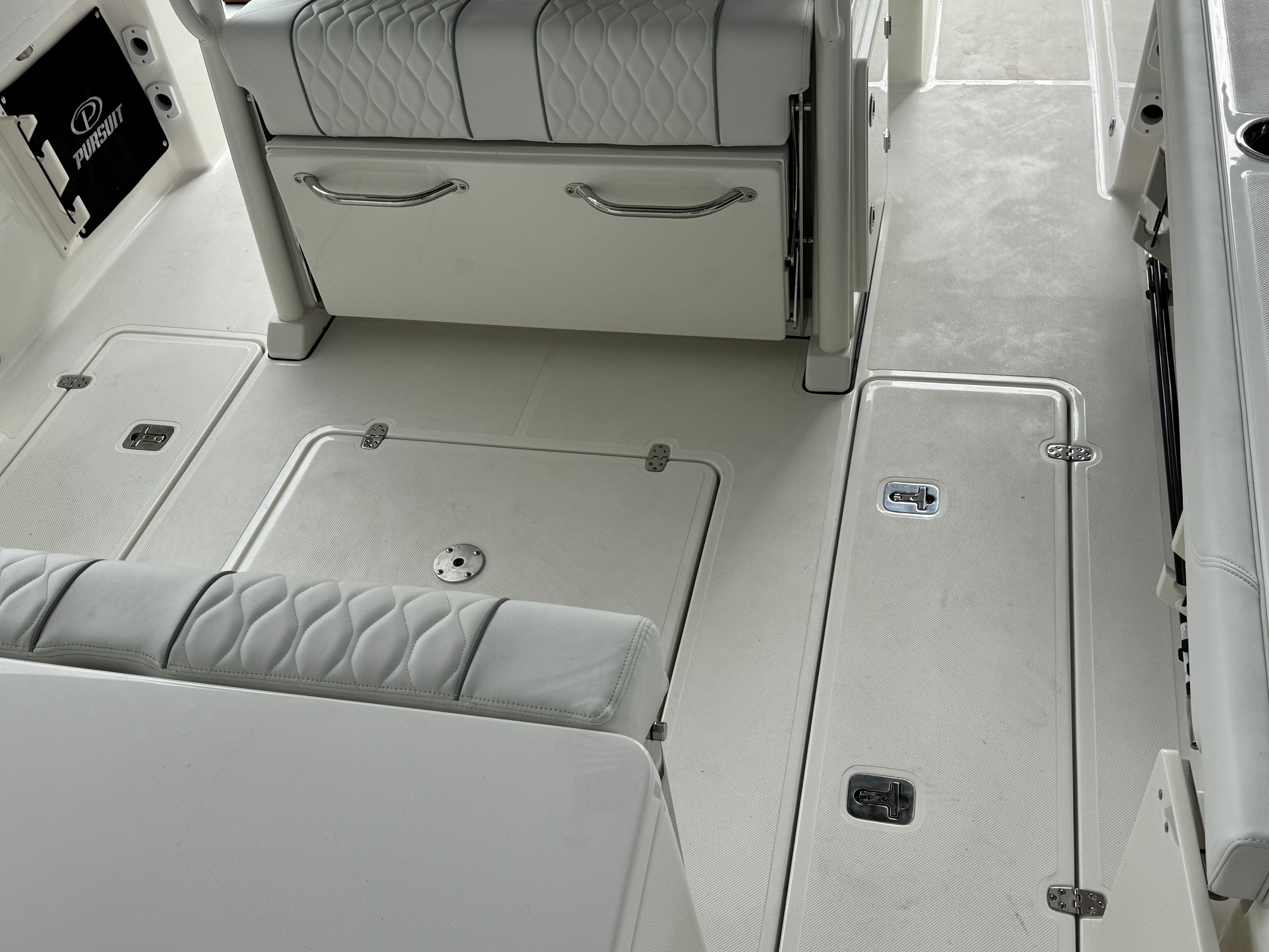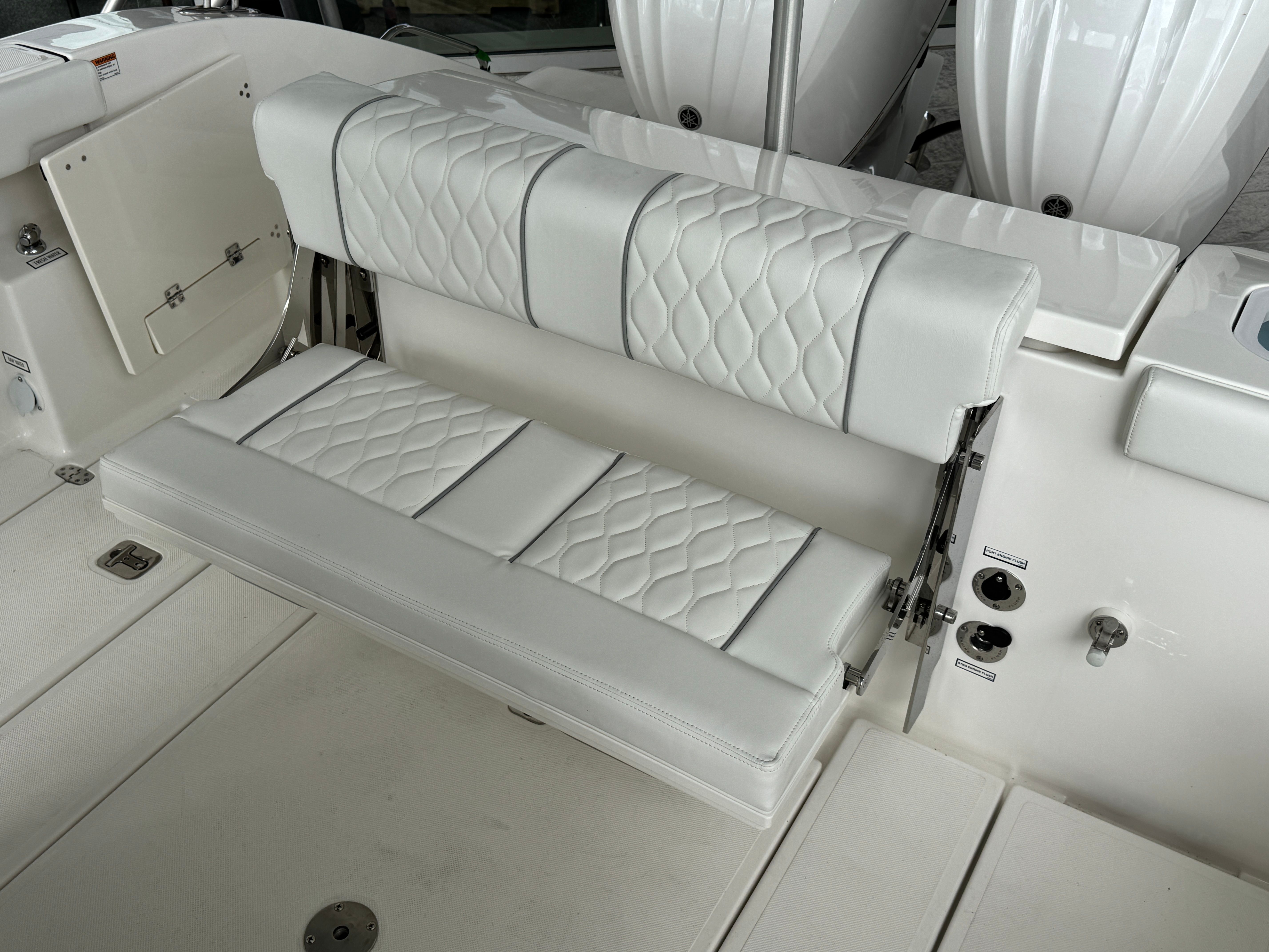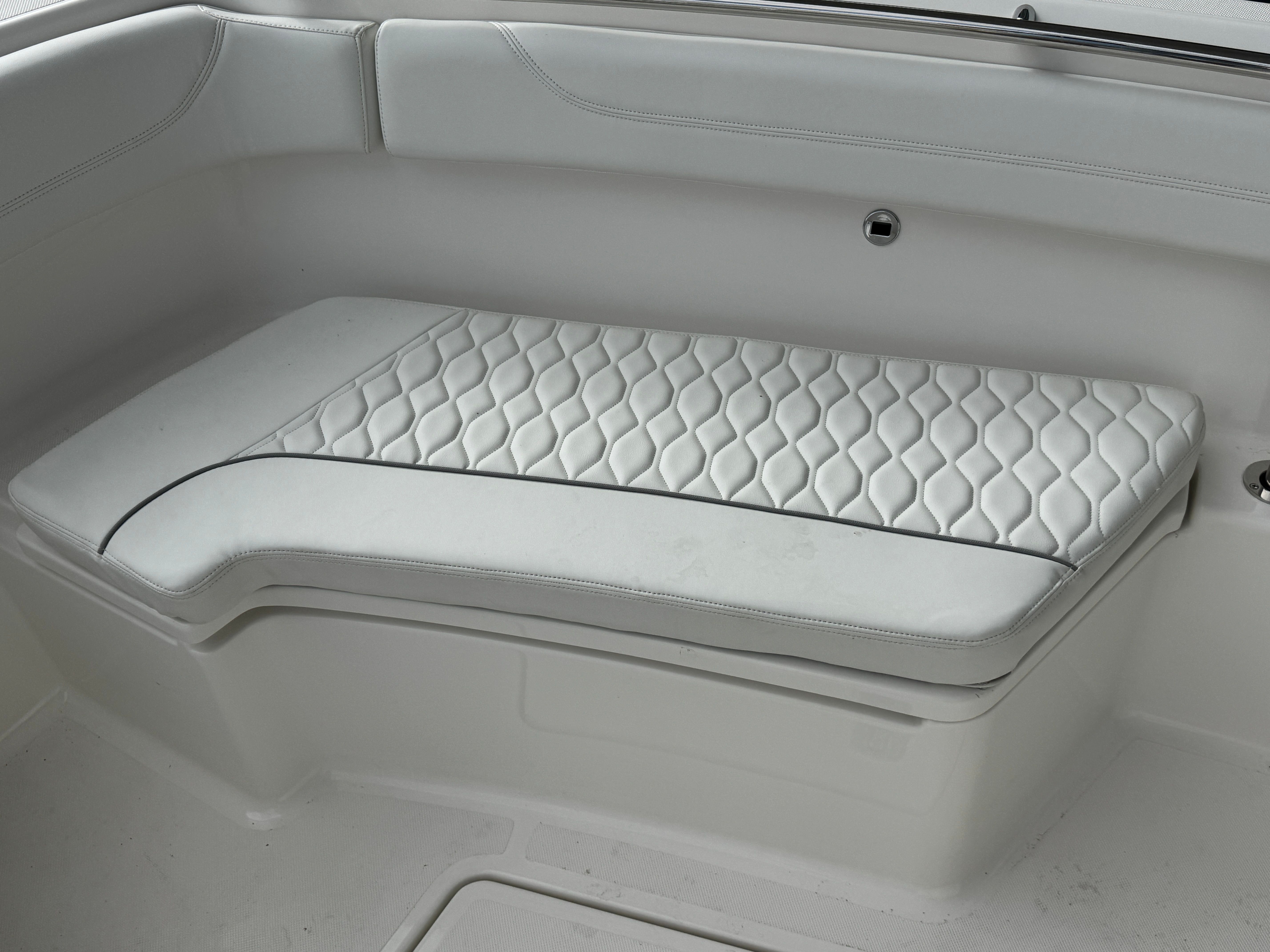 The Pursuit S 288 is as practical as it is stylish. Its 30-foot length provides ample storage for gear, supplies, and personal items, ensuring you’re always prepared for your next adventure. The integrated digital steering and joystick control make docking and maneuvering effortless, even in crowded marinas or tight spaces. Fuel efficiency is enhanced by the advanced Yamaha engines, allowing you to spend more time on the water and less time refueling. The dockside power connection supports all your electrical needs, from charging devices to powering appliances, while the manual engine flushing system simplifies maintenance and helps extend the life of your investment.