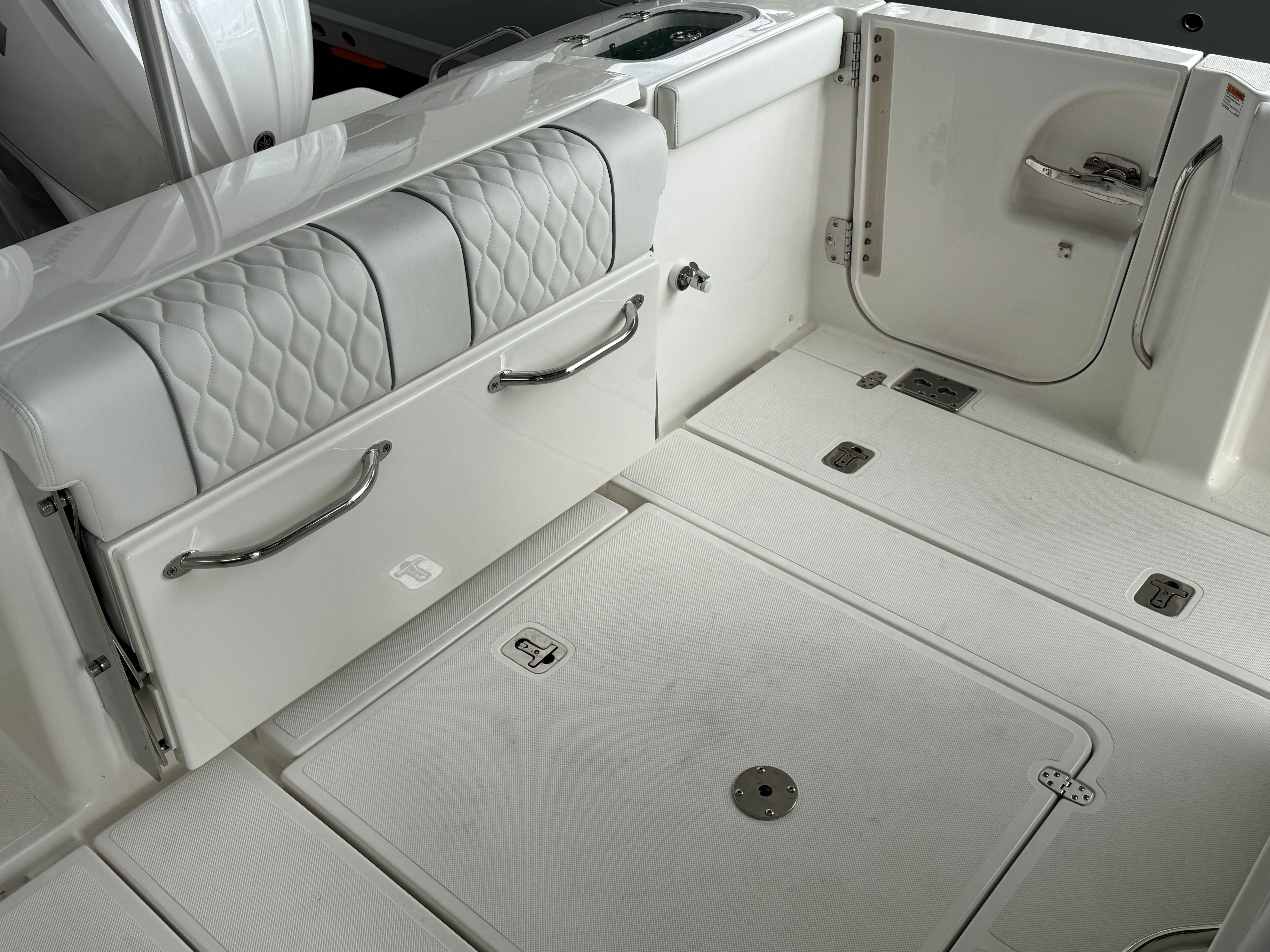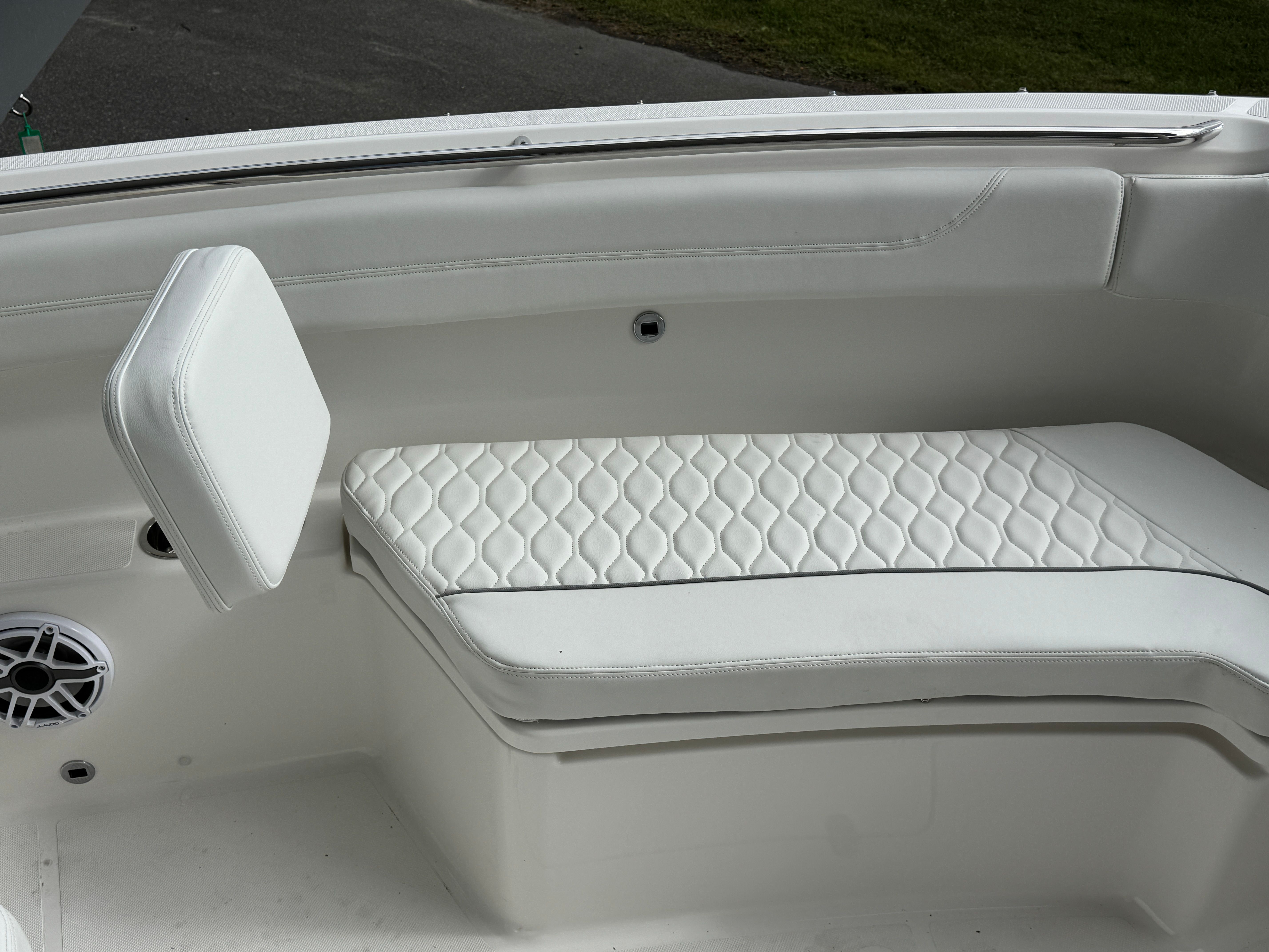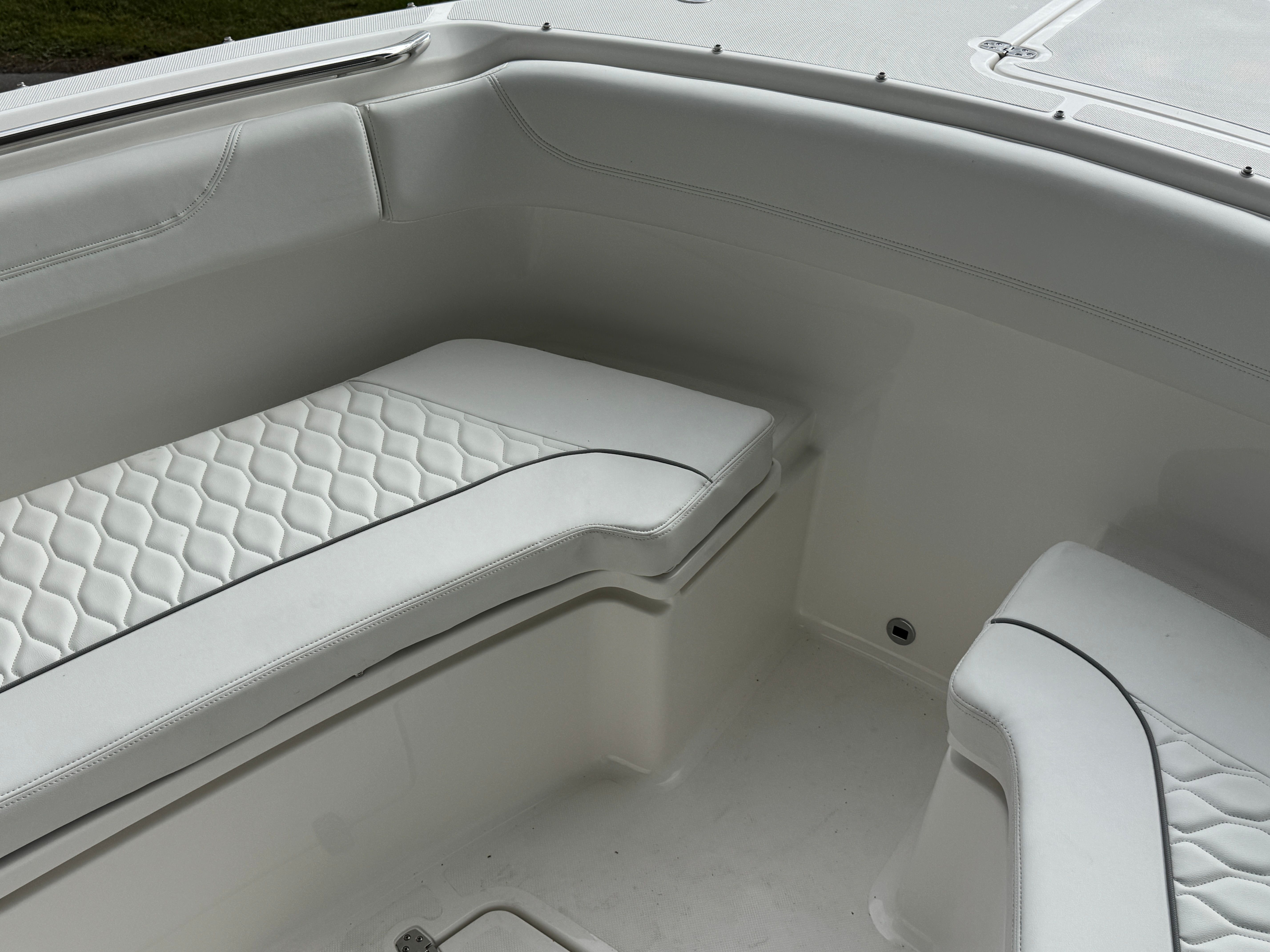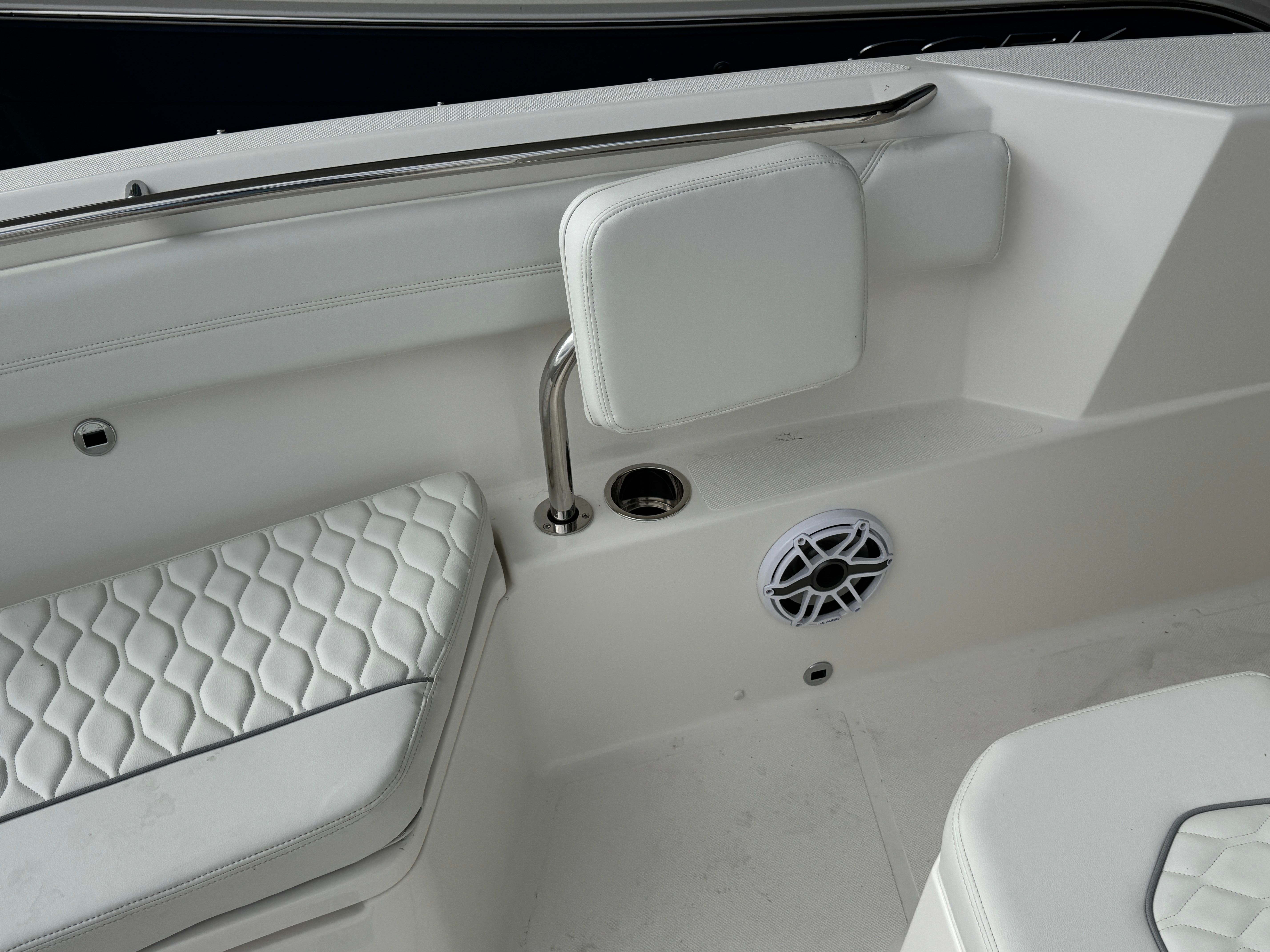 The Pursuit S 288 is as practical as it is stylish. Its 30-foot length provides ample storage for gear, supplies, and personal items, ensuring you’re always prepared for your next adventure. The integrated digital steering and joystick control make docking and maneuvering effortless, even in crowded marinas or tight spaces. Fuel efficiency is enhanced by the advanced Yamaha engines, allowing you to spend more time on the water and less time refueling. The dockside power connection supports all your electrical needs, from charging devices to powering appliances, while the manual engine flushing system simplifies maintenance and helps extend the life of your investment.