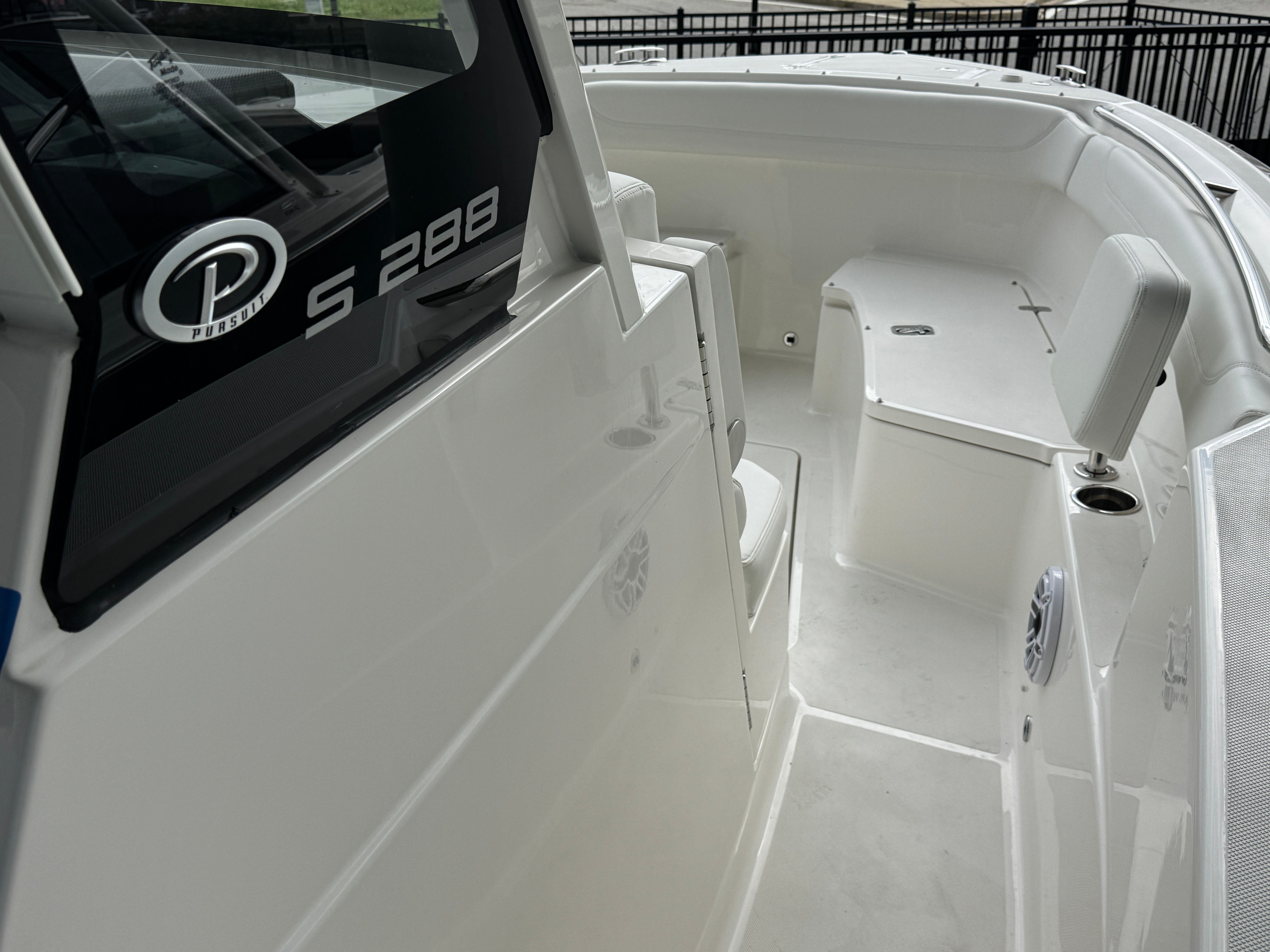 Owning the Pursuit S 288 Center Console means embracing a lifestyle of fun, relaxation, and adventure. The spacious layout is perfect for hosting family and friends, with plenty of room to stretch out, enjoy meals, or soak up the sun. The advanced helm and steering systems make piloting this boat a joy, whether you’re an experienced captain or new to boating. The hardtop rod holders and dedicated storage solutions keep your gear organized, while the sunshade and table add comfort and convenience for long days on the water. Every detail is designed to maximize your enjoyment, making this Pursuit boat for sale an ideal choice for those who value both performance and luxury.