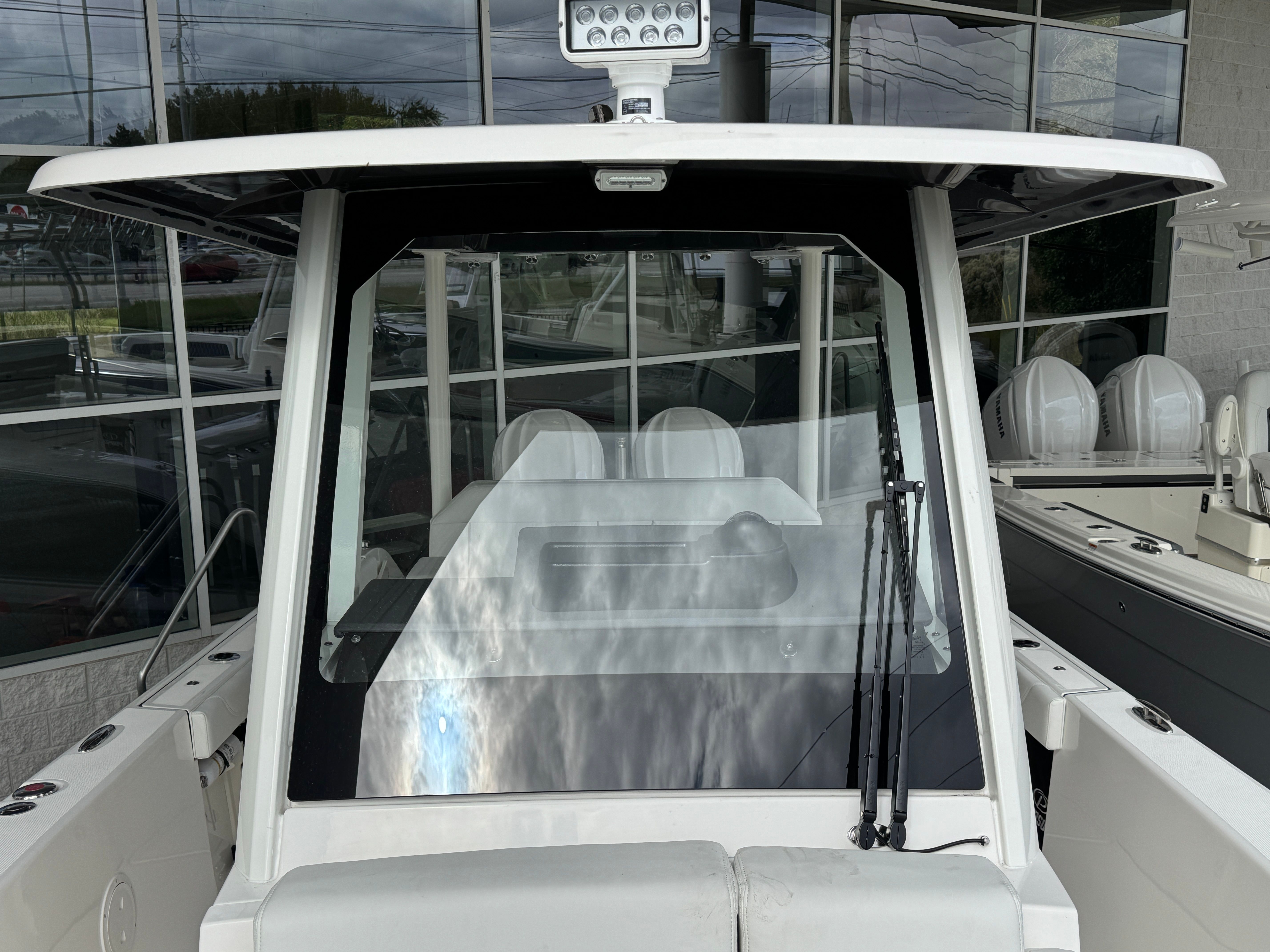 - Twin Yamaha Digital F300 V6 Offshore (Pearlescent White) w/Integrated Digital Electric Steering (DES) and Helm Master EX Digital Electronic Control (DEC) (does not include joystick control), Multifunction Display Interface and Manual Engine Flushing System