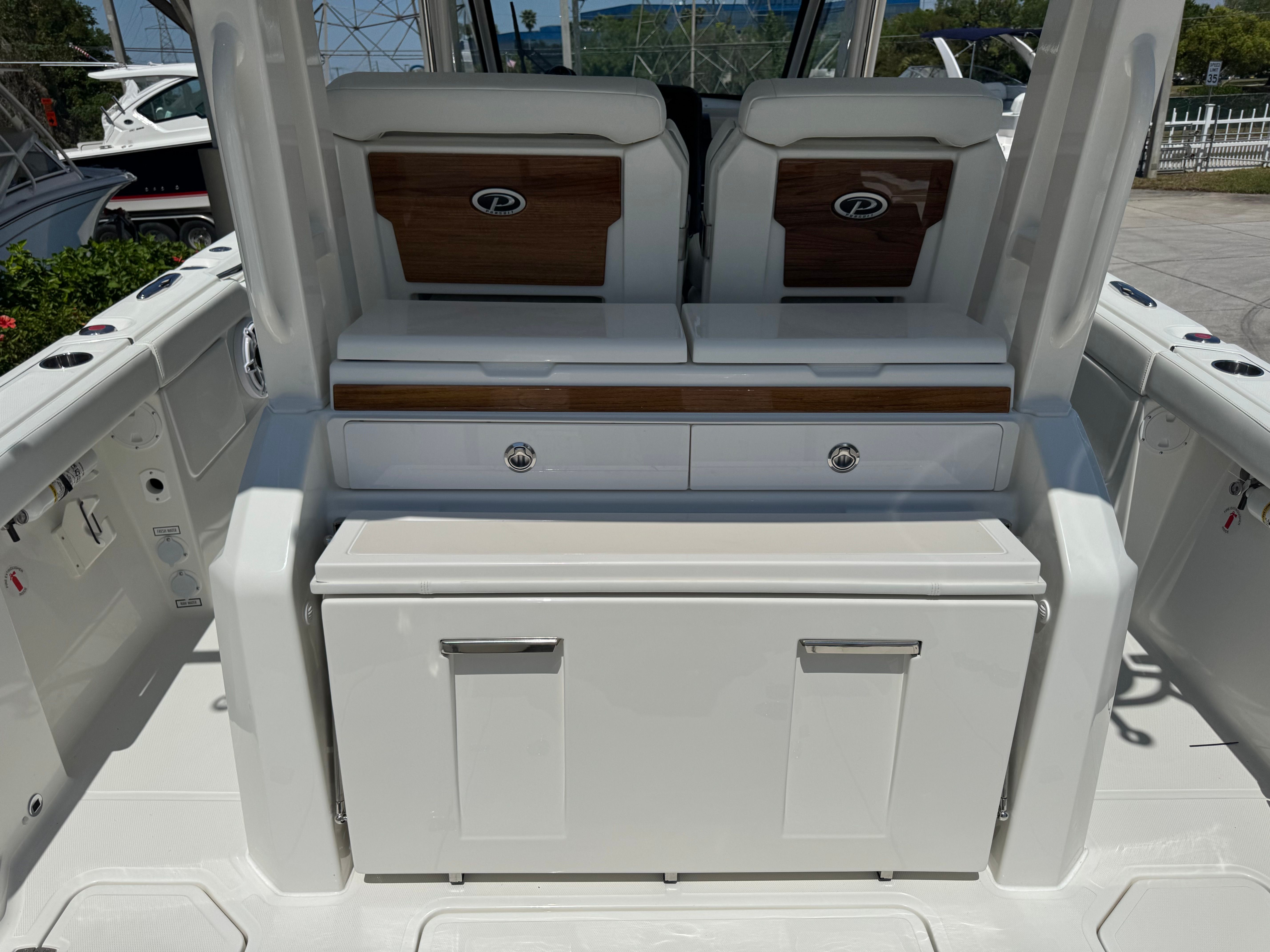 At the heart of the Pursuit S 328’s exhilarating performance are twin Yamaha F350USA2 outboard engines, delivering a combined 700 horsepower. These engines are renowned for their reliability, smooth operation, and impressive power, ensuring you have the muscle to tackle open waters with confidence. The inclusion of Yamaha® Joystick Control with Full Maneuverability transforms docking and tight-quarters handling into a stress-free experience, allowing you to navigate with precision and ease. Whether you’re accelerating onto plane or cruising at a comfortable speed, the S 328’s performance is both thrilling and refined, making every outing memorable.