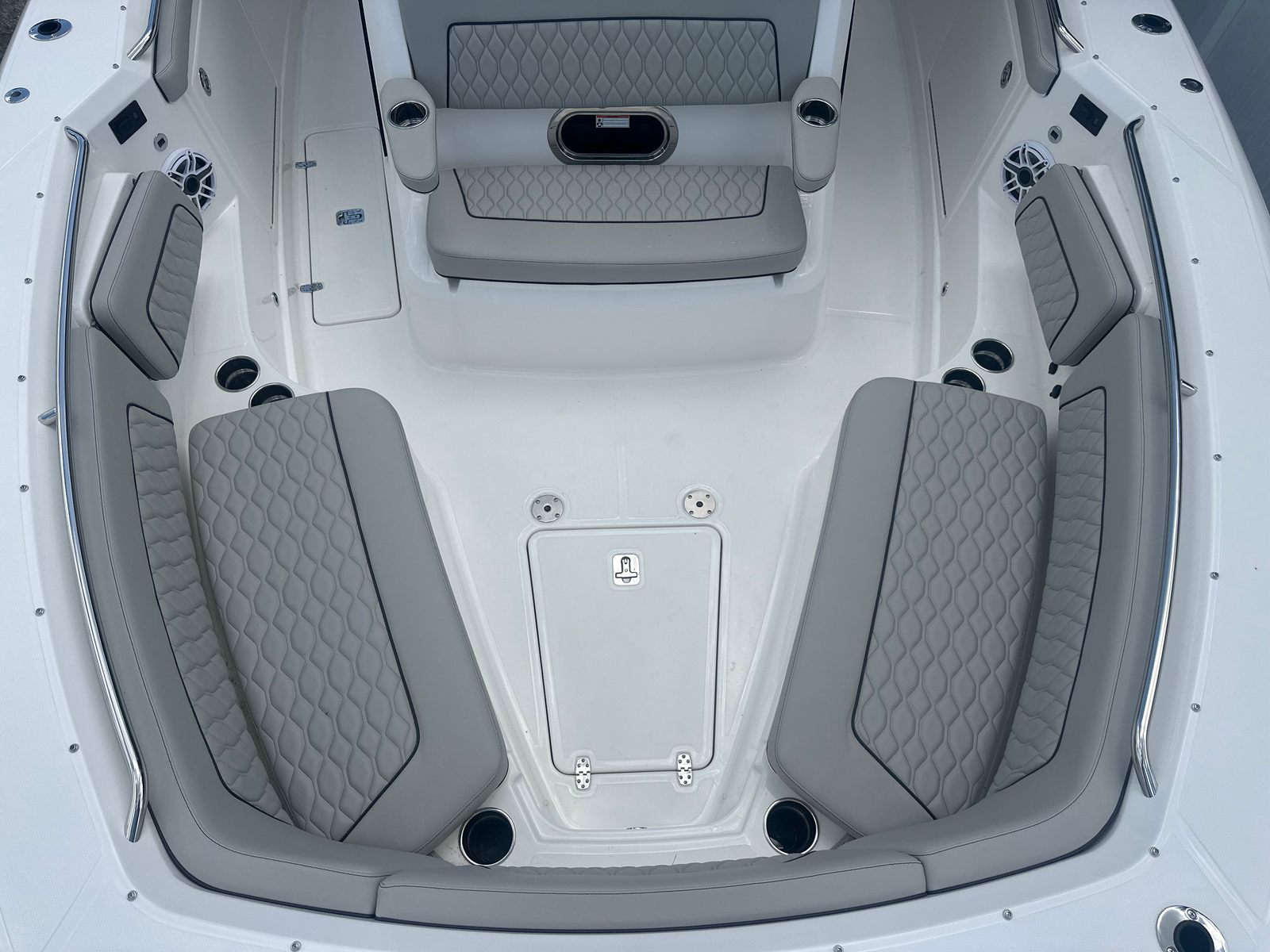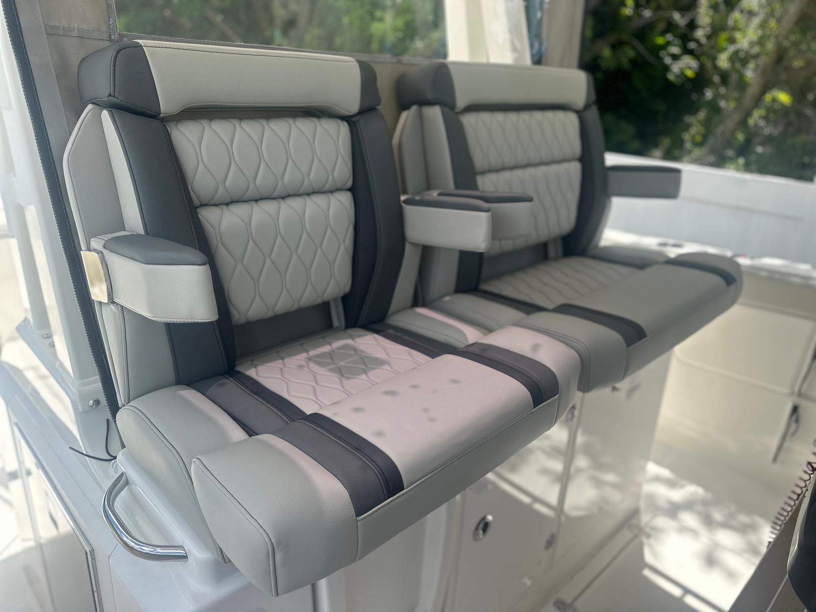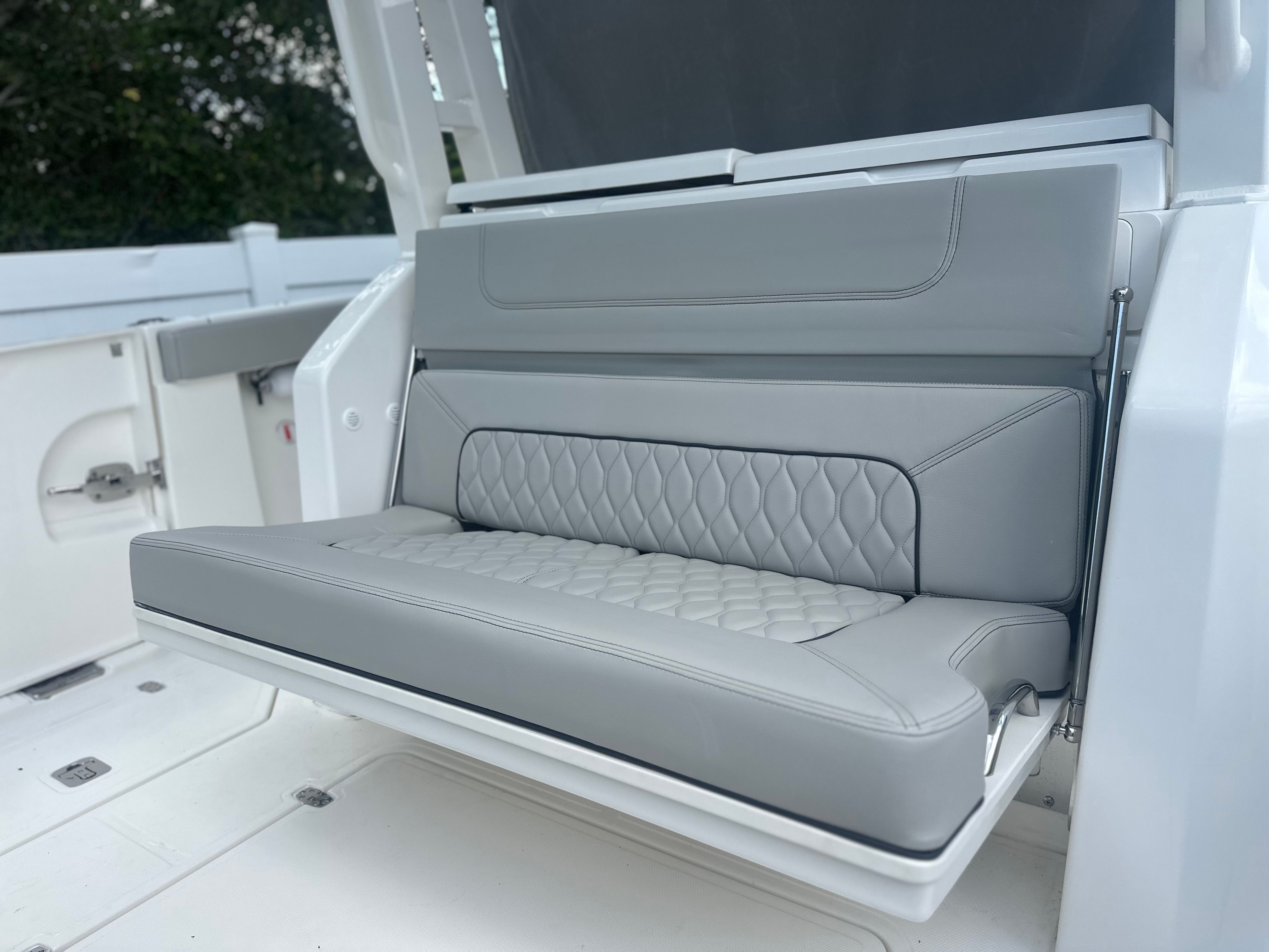 The Pursuit S 328 Center Console is loaded with premium features that elevate your boating experience. The Seakeeper Gyro Stabilization System dramatically reduces roll, providing unmatched stability and comfort even in choppy conditions. The helm console, finished in a sophisticated Carbon color, is complemented by a Fresh White hardtop liner, creating a clean and modern aesthetic. Inside, the Tranquil Sea Interior Package offers a serene and inviting atmosphere, perfect for relaxing after a day of adventure. The inclusion of a diesel genset and cabin air conditioning ensures that you and your guests stay comfortable, no matter the weather or time of day. Every detail of the S 328 is crafted to enhance your enjoyment and make every outing memorable.
