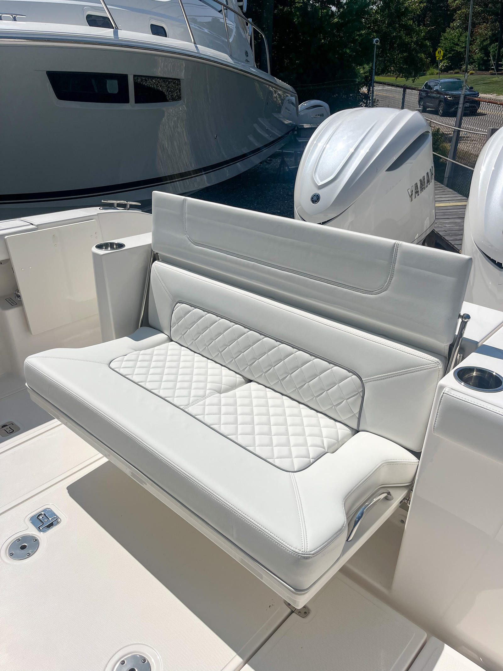 At the heart of the Pursuit S 328 are twin Yamaha Digital F350 V6 Offshore engines, finished in Pearlescent White for a striking visual impact. With a combined 700 horsepower, these engines provide exhilarating acceleration, impressive top speeds, and smooth cruising capabilities. The integrated Digital Electric Steering (DES) and Helm Master EX Digital Electronic Control (DEC) system ensure precise handling and effortless control, allowing you to navigate with confidence in a variety of conditions. The Multifunction Display Interface keeps you informed and in command, offering real-time data and intuitive controls at your fingertips. For those who demand the ultimate in maneuverability, the Yamaha Joystick Control with Full Maneuverability, Set PointTM, and Autopilot features deliver unparalleled ease when docking, anchoring, or holding position. This advanced system transforms the boating experience, making tight quarters and challenging conditions manageable with just a touch of the joystick. Whether you are an experienced captain or new to boating, the Pursuit S 328’s performance features inspire confidence and excitement every time you take the helm.