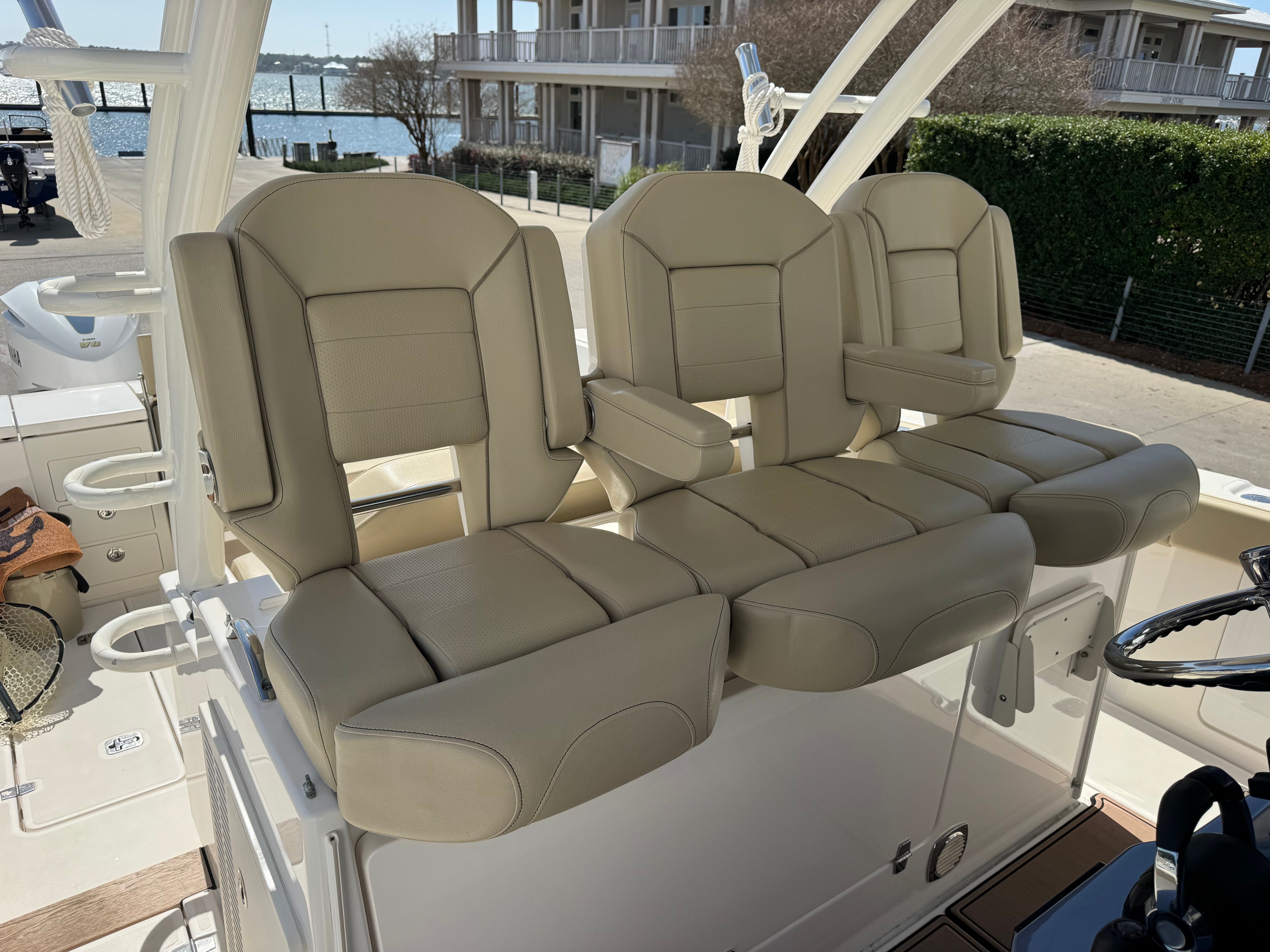 Practicality is at the heart of the Pursuit S 368’s design. The ample storage options make it easy to keep the deck organized and clutter-free, whether you are stowing fishing gear, water toys, or picnic supplies. The Center Console layout simplifies docking and maneuvering, giving you excellent visibility and control in tight spaces. Fuel efficiency is enhanced by the advanced hull design and triple-engine configuration, allowing you to spend more time on the water and less time at the fuel dock.The Pursuit S 368’s durability means less time worrying about maintenance and more time enjoying your investment. The high-quality materials and construction techniques used in this boat are designed to stand up to the rigors of marine environments, ensuring years of reliable service. Whether you are trailering the boat to new locations or keeping it at your favorite marina, the S 368 is built for convenience and peace of mind.