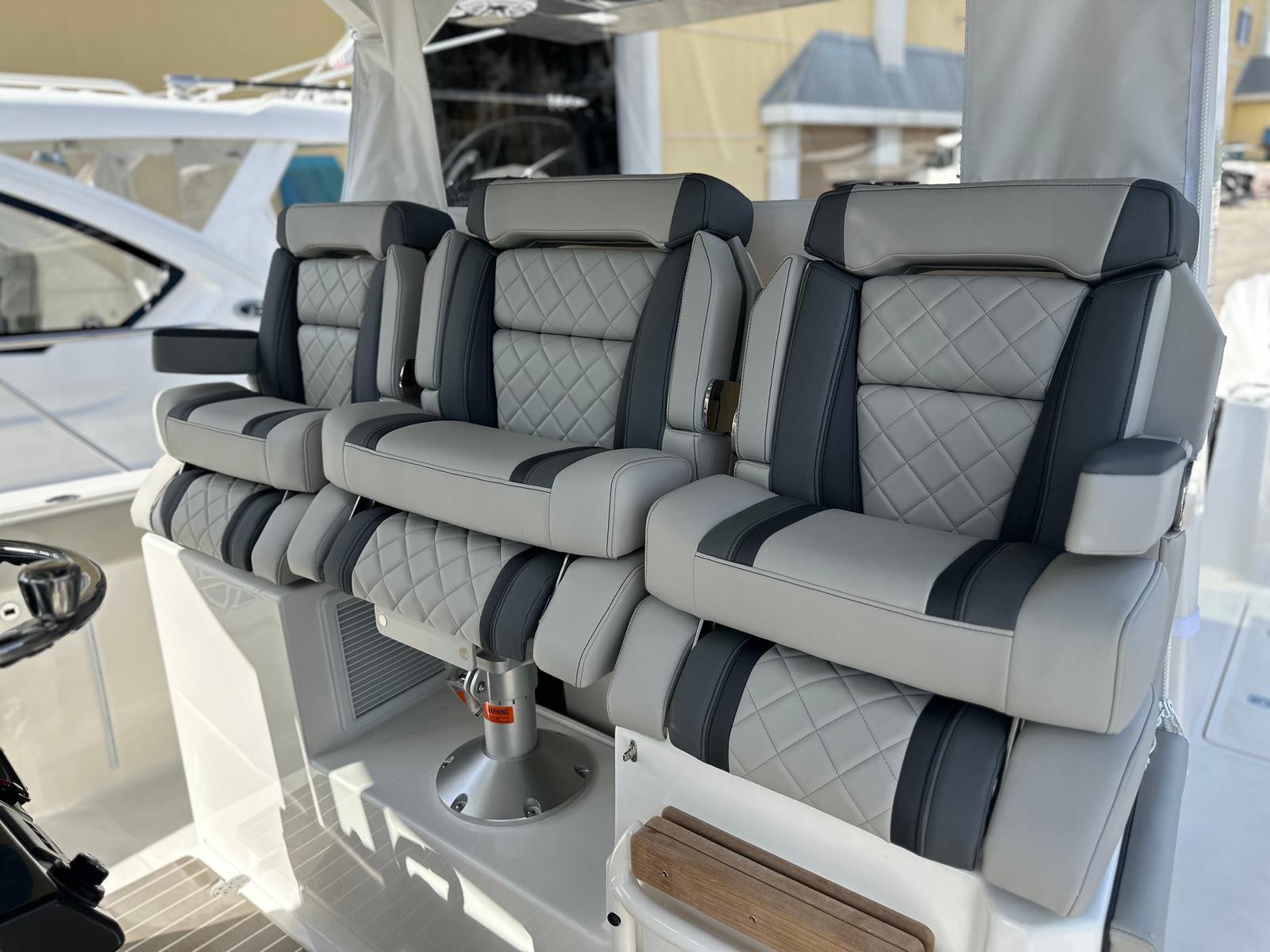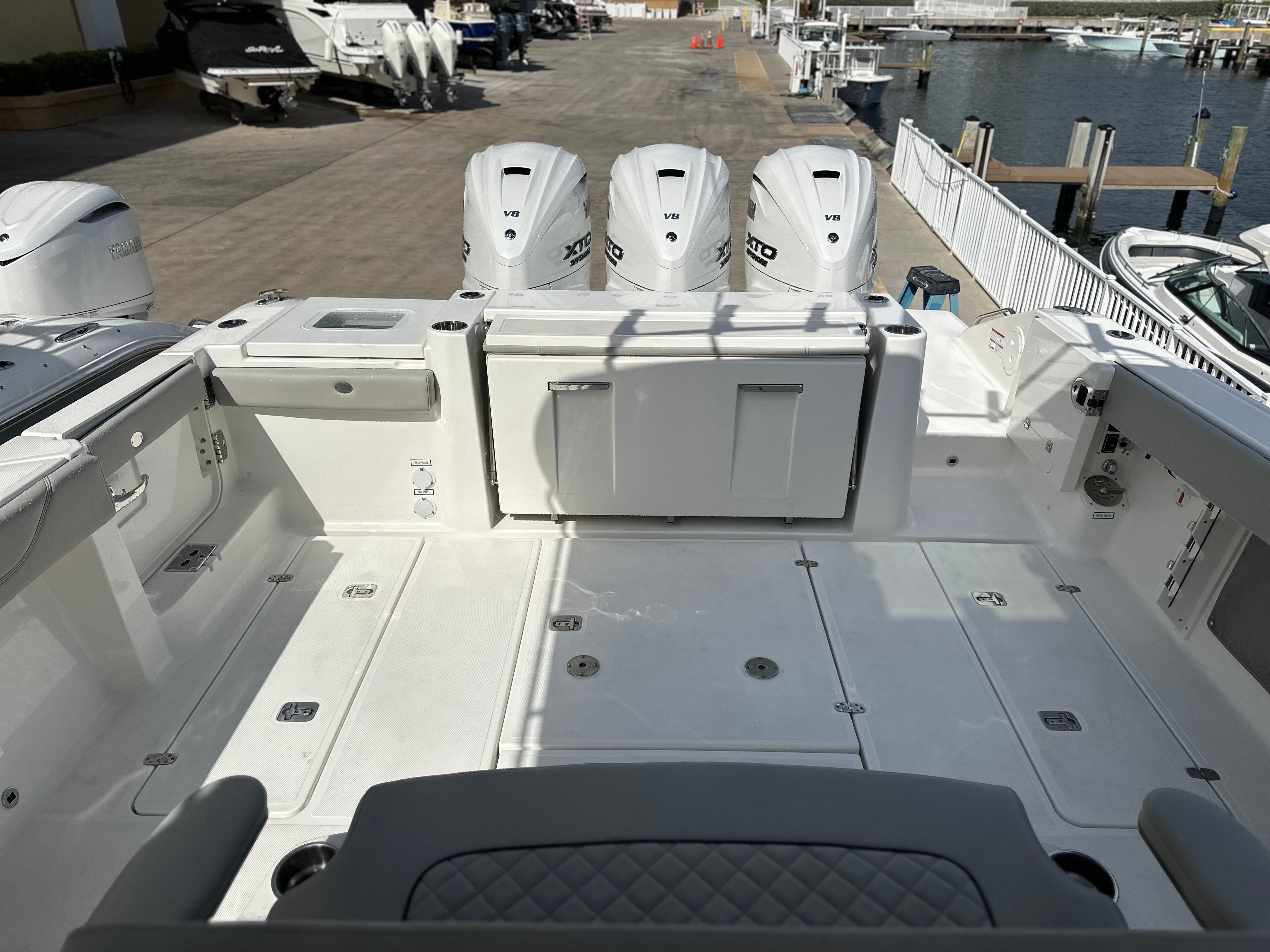 At the heart of the Pursuit S 378 are three powerful engines, delivering a combined 1350 horsepower. This impressive setup provides exhilarating speed, responsive handling, and the confidence to tackle offshore adventures or quick trips to your favorite coastal destinations. The triple-engine configuration ensures optimal performance, whether you are cruising at a leisurely pace or pushing the throttle for an adrenaline-filled ride. The S 378’s advanced hull design enhances stability and efficiency, offering a smooth and dry ride even in choppy conditions. With this level of power and engineering, you can expect a boating experience that is both thrilling and reliable.