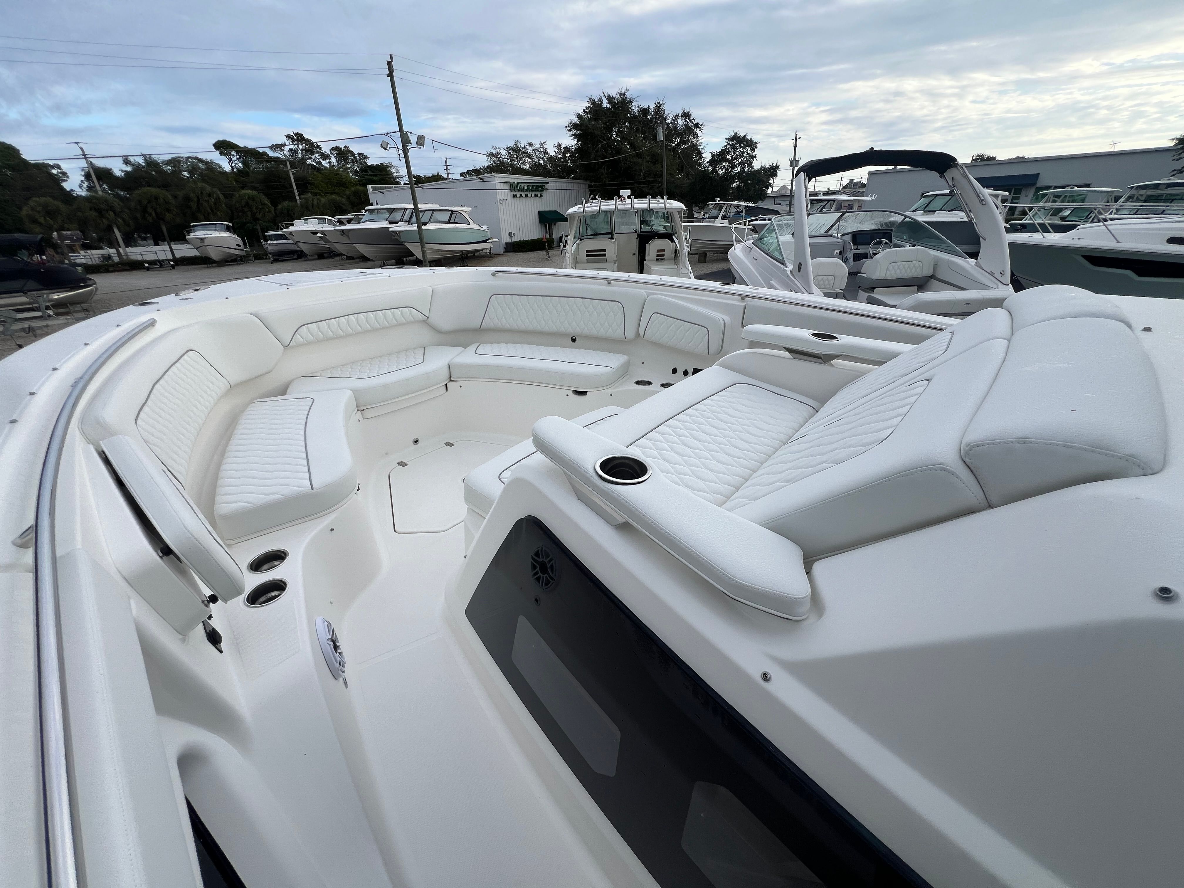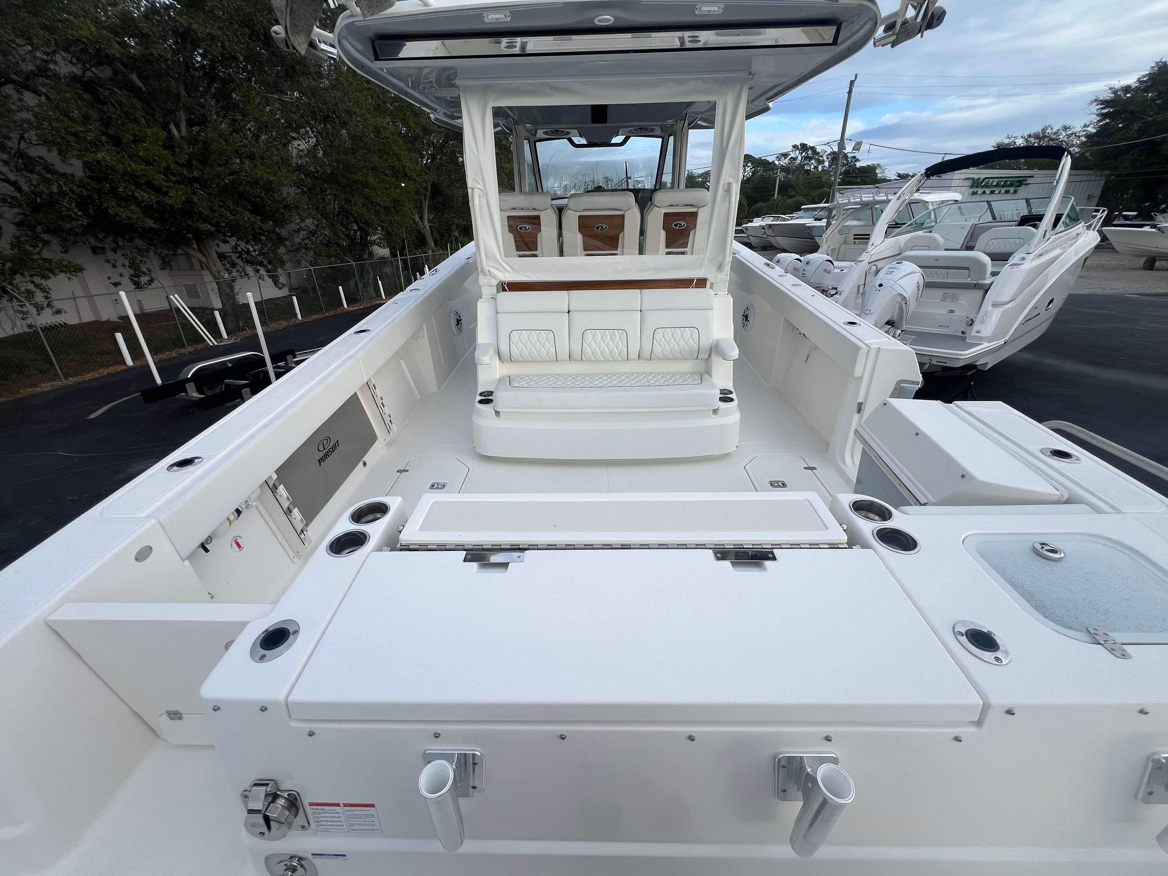 Owning the Pursuit S 388 Center Console means embracing a lifestyle of fun, adventure, and relaxation. The spacious layout offers plenty of room for family and friends to gather, making it perfect for socializing, dining, or simply enjoying the view. The advanced air conditioning system keeps everyone comfortable, while the retractable sunshade and stowable bow sunshade provide customizable options for enjoying the outdoors. Anglers will appreciate the abundance of rod holders and the thoughtful design that makes fishing trips more enjoyable and productive.The Pursuit S 388’s sleek design and premium finishes ensure you’ll turn heads wherever you go, while the powerful triple Yamaha engines deliver the performance you need for thrilling rides and smooth cruising. Whether you’re hosting a sunset cocktail party, embarking on a weekend getaway, or heading out for a day of fishing, this Center Console boat offers the versatility and comfort to make every outing unforgettable.