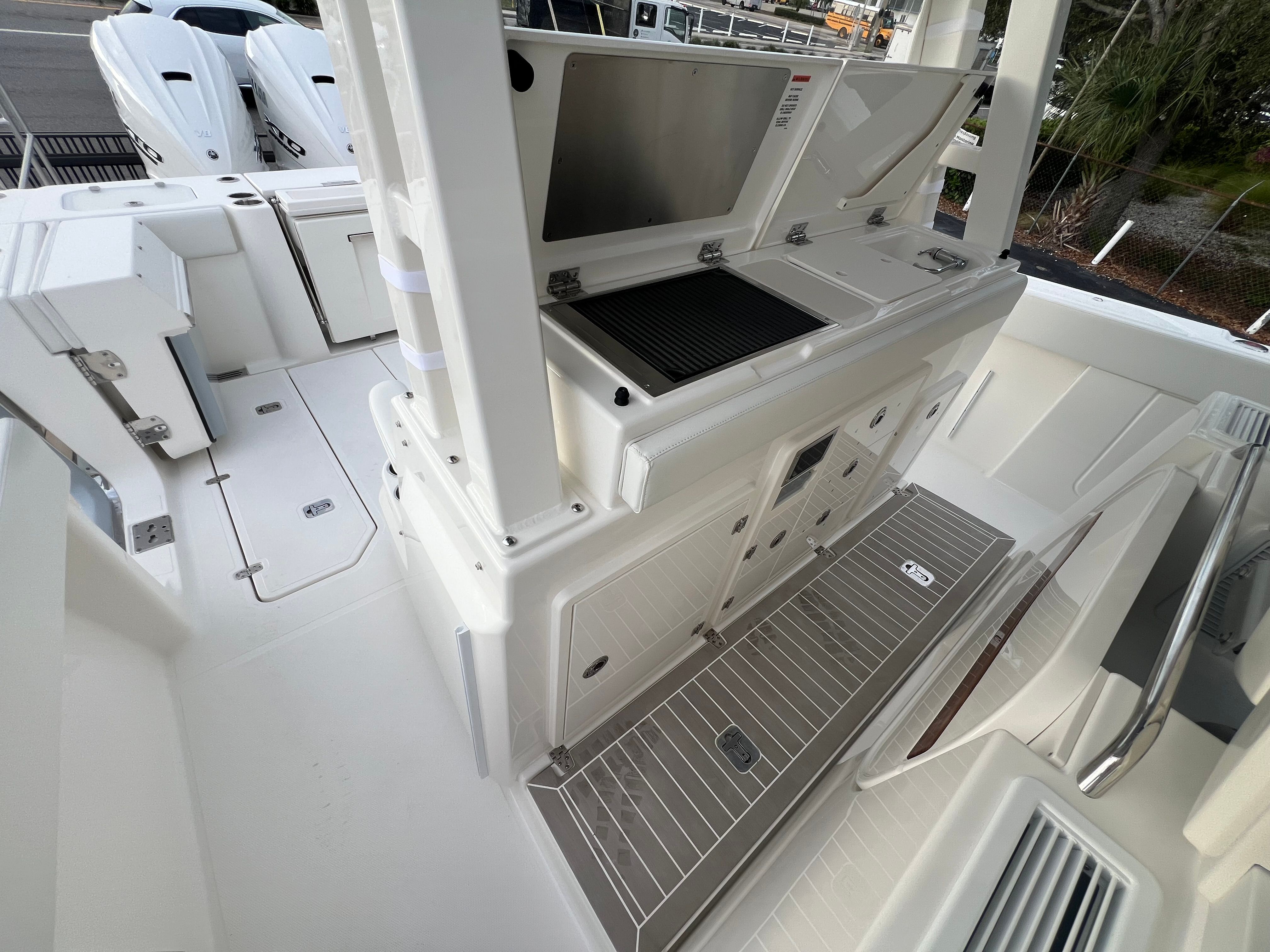 Power and precision are at the heart of the Pursuit S 388’s performance. Equipped with triple Yamaha F450XTO engines, this Center Console boat boasts a combined 1,350 horsepower, delivering exhilarating speed and smooth handling in a variety of conditions. Whether you’re cruising along the coastline, heading out for a day of offshore fishing, or exploring hidden coves, the S 388’s advanced propulsion system ensures a responsive and reliable ride. The triple engine setup not only provides impressive acceleration but also enhances maneuverability, making docking and navigating tight spaces effortless.