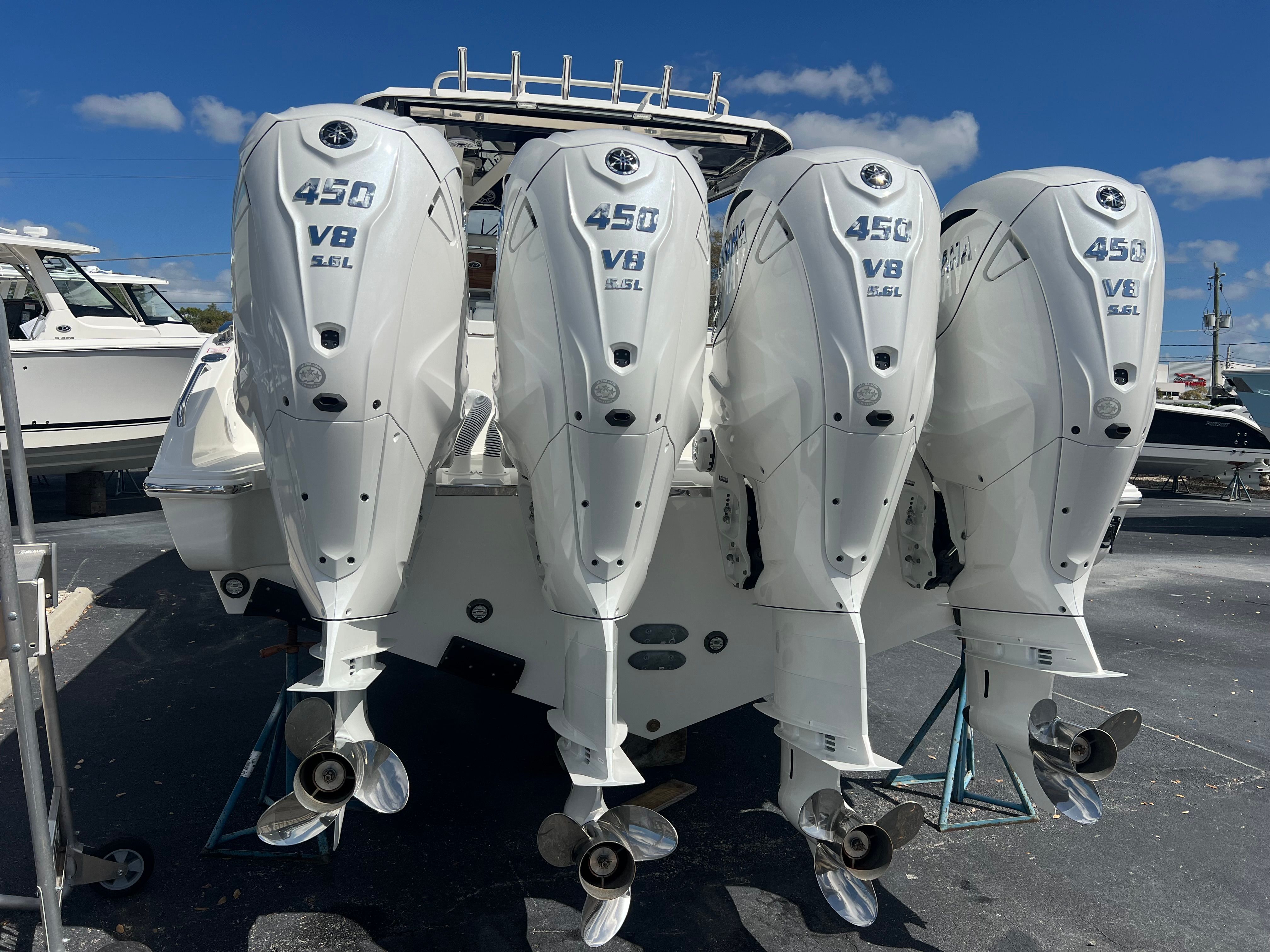 Power and precision are at the heart of the Pursuit S 428. Equipped with four robust engines delivering a combined 1,800 horsepower, this center console boat offers thrilling acceleration, impressive top speeds, and the confidence to tackle offshore conditions with ease. Whether you are chasing the horizon or cruising along the coast, the S 428’s advanced hull design ensures a smooth, stable ride. The quad-engine setup not only provides unmatched performance but also enhances maneuverability and reliability, making every journey both exciting and secure.