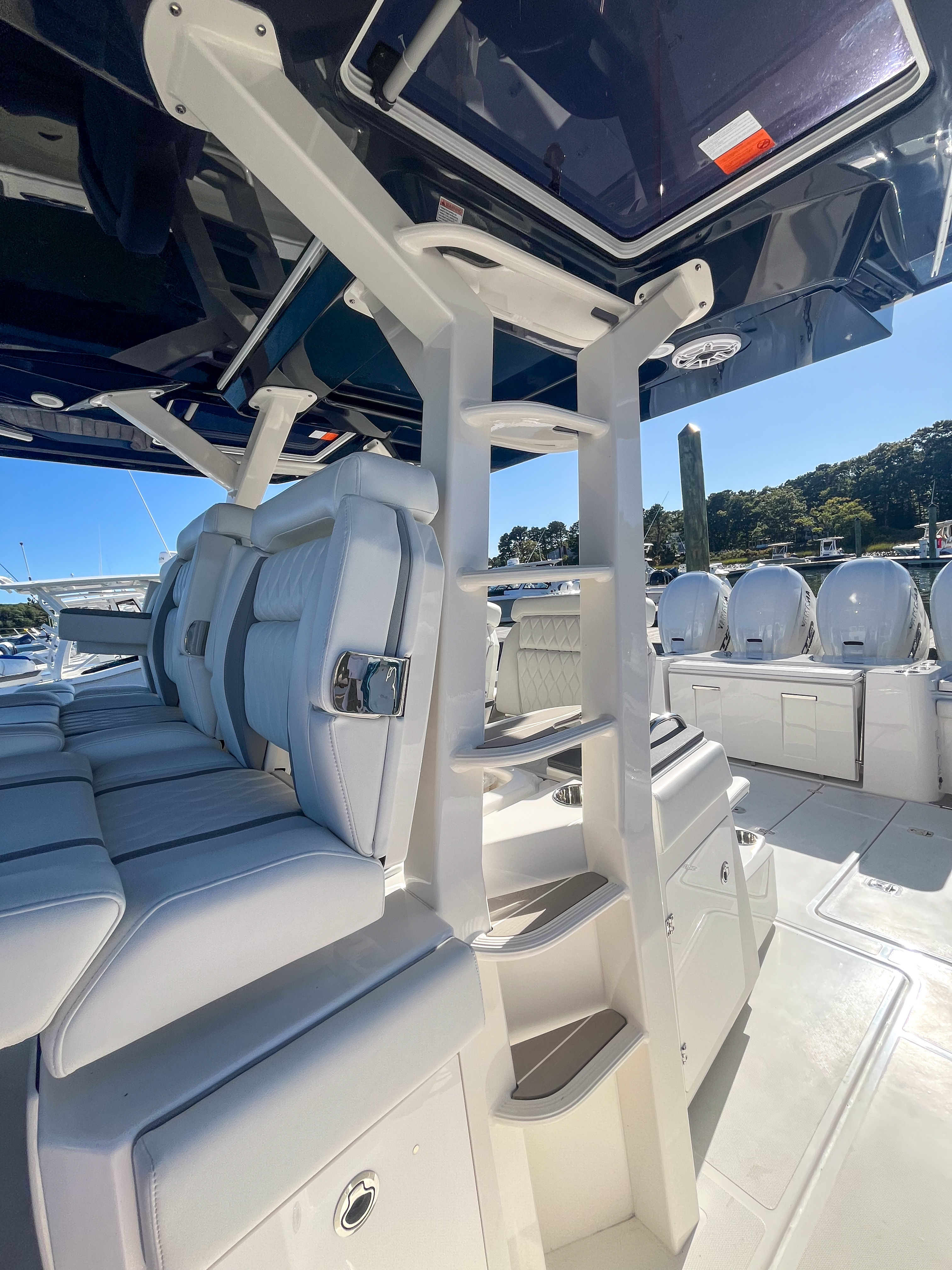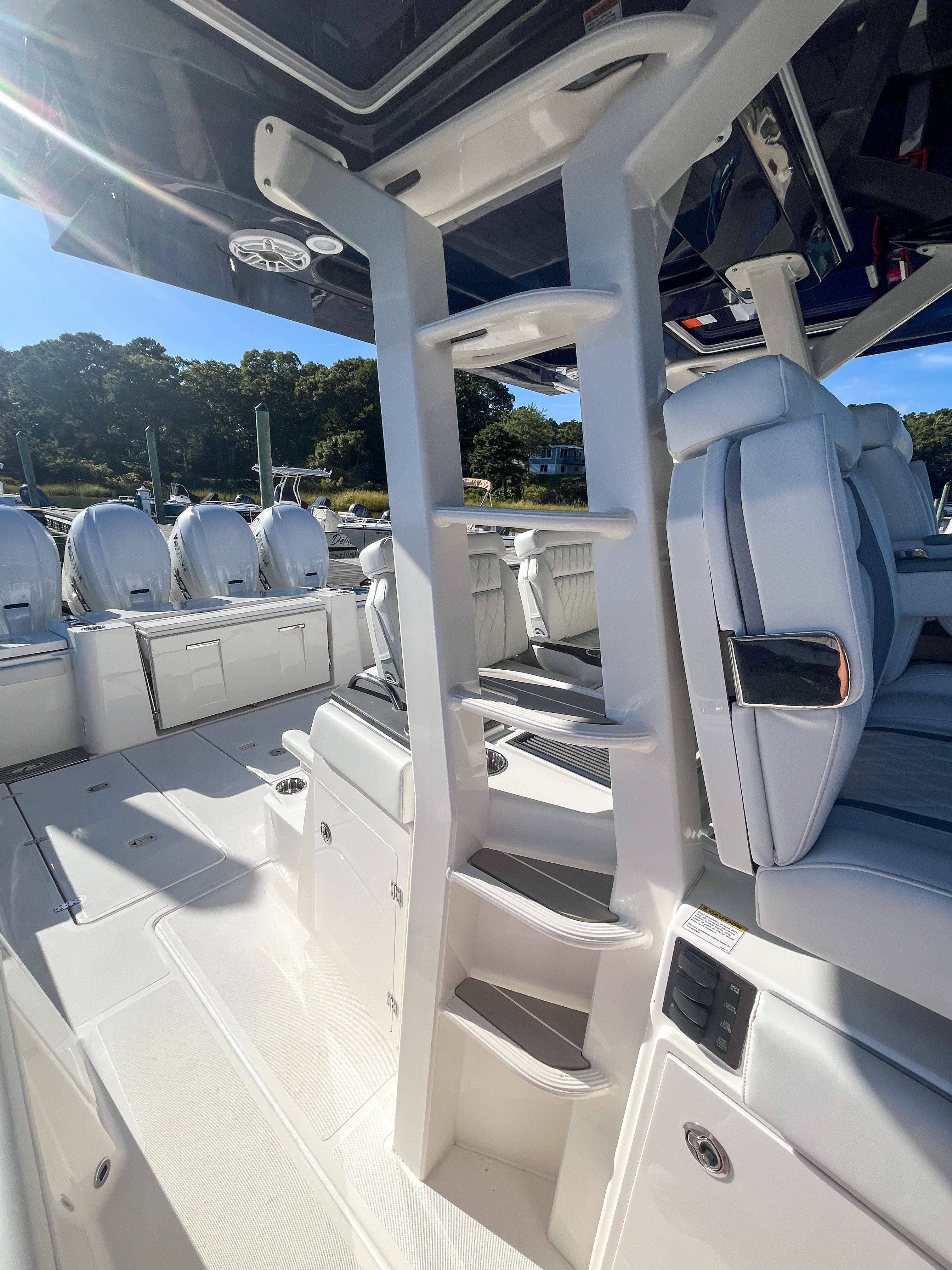 At the heart of the Pursuit S 428 are four powerful engines, delivering a combined 1,800 horsepower. This formidable power package ensures exhilarating speed, responsive handling, and the confidence to tackle offshore waters with ease. Whether you are cruising to your favorite sandbar, heading out for a day of deep-sea fishing, or simply enjoying a sunset cruise, the S 428’s performance is both thrilling and reliable. The advanced engineering behind Pursuit’s hull design ensures a smooth, dry ride, even in challenging conditions, so you can focus on enjoying every moment on the water.