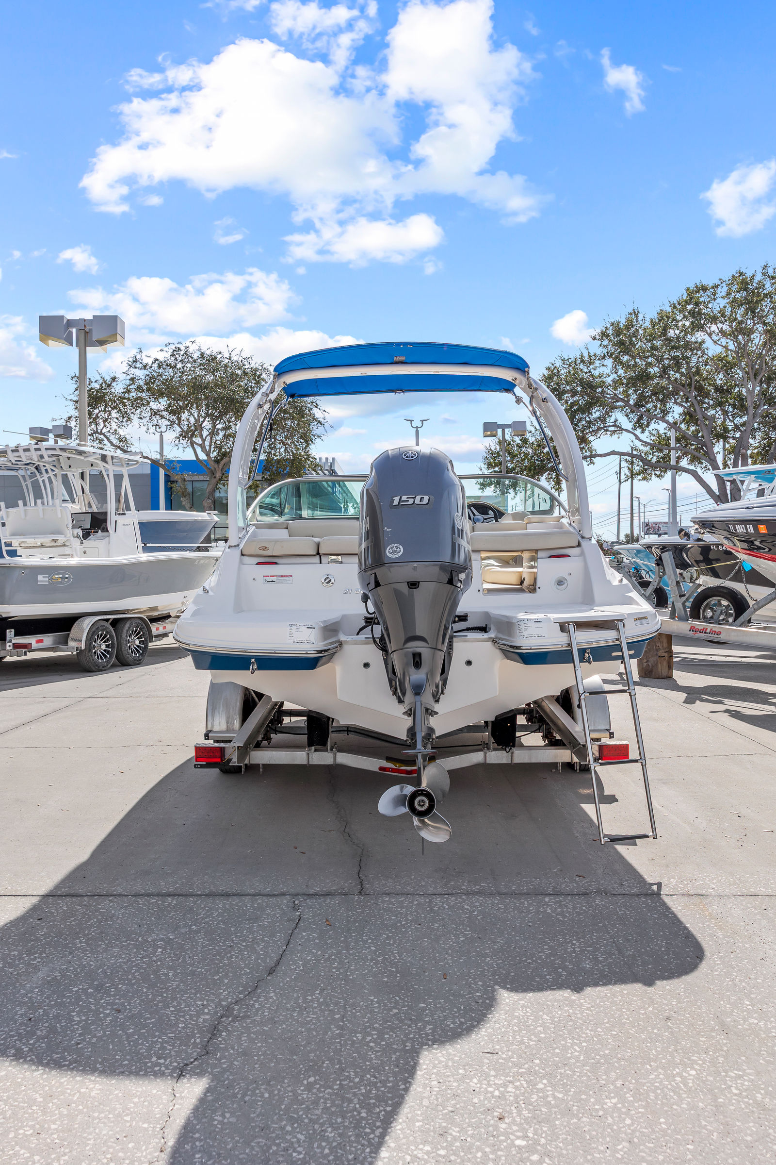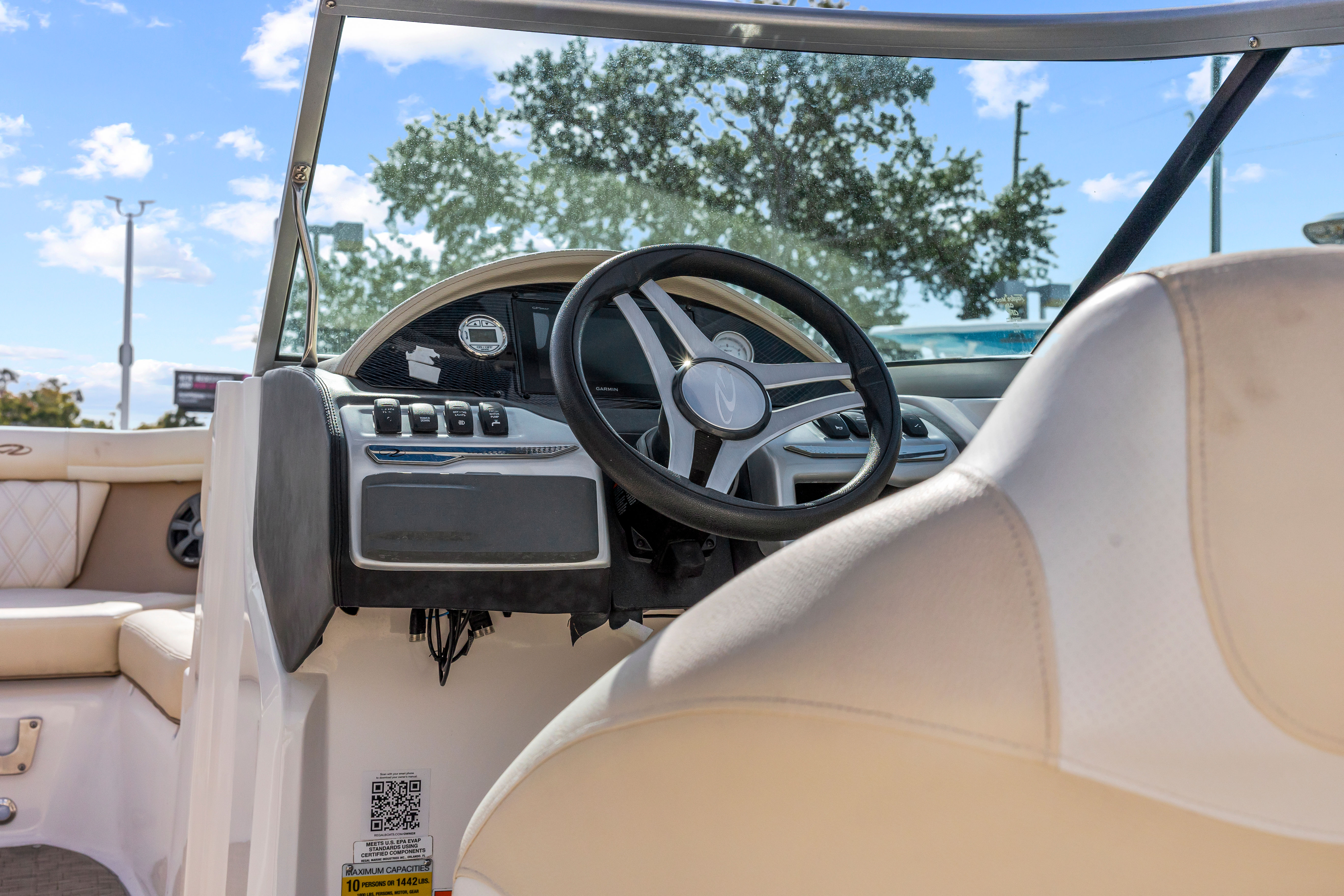 Powered by a single engine with 150 horsepower and only 160 engine hours, the Regal 21 OBX offers a dynamic and responsive ride. The outboard engine configuration ensures smooth acceleration, reliable performance, and efficient fuel consumption, allowing you to spend more time on the water and less time at the pump. Whether you are cruising along the shoreline, towing water toys, or exploring new destinations, this bowrider boat for sale delivers the power and agility you need for a wide range of activities. The 150-horsepower engine provides plenty of thrust for water sports and quick getaways, while the efficient design keeps operating costs in check.