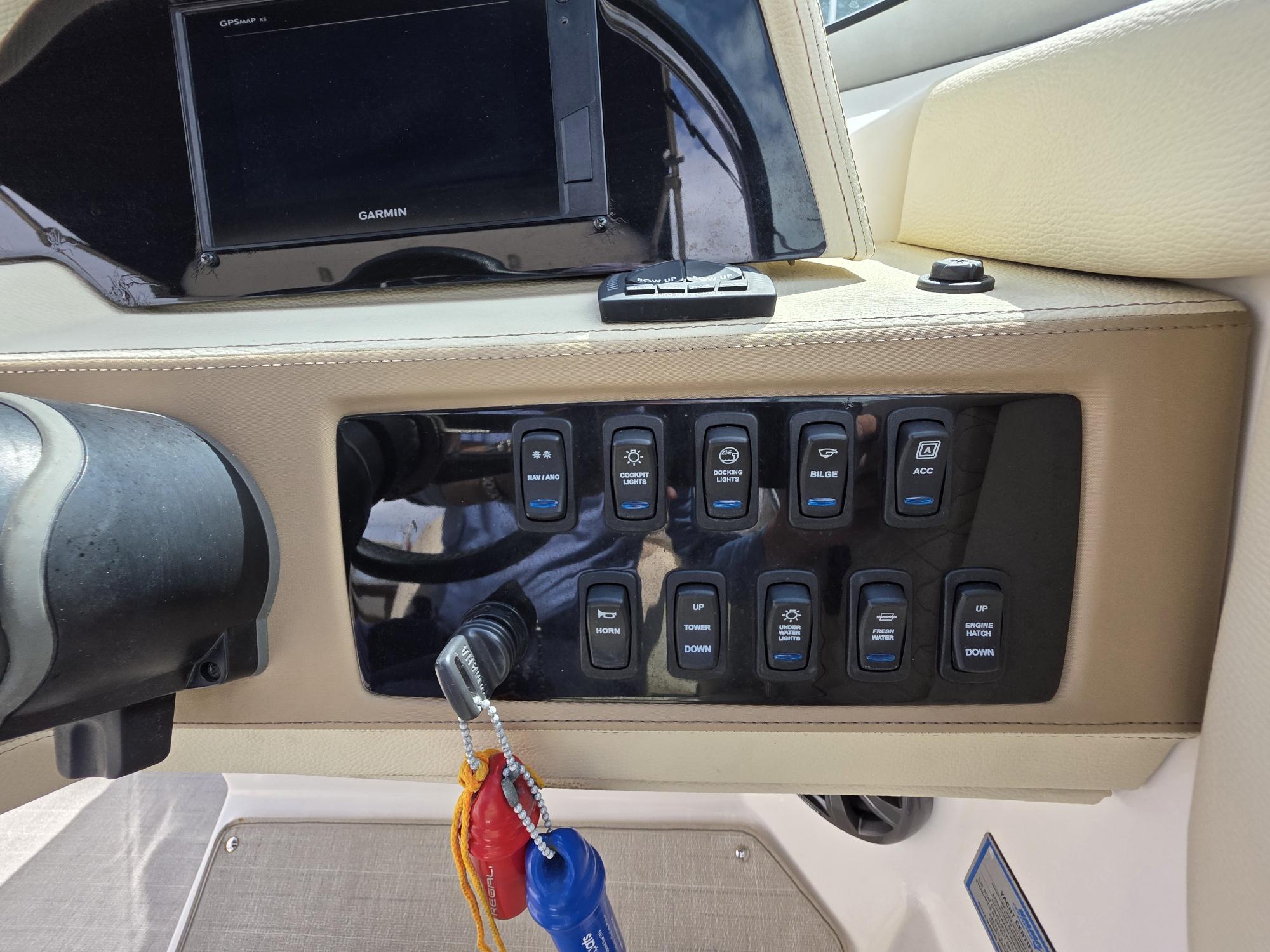 The helm is designed with the captain in mind, featuring an ergonomic layout and premium electronics that make navigation simple and enjoyable. A Garmin GPSMap XS system provides advanced navigation, chart plotting, and situational awareness, ensuring you’re always in control on the water. An auto trim tabs controller further enhances performance by automatically optimizing the boat’s running angle for a smoother, more efficient ride in varying conditions.