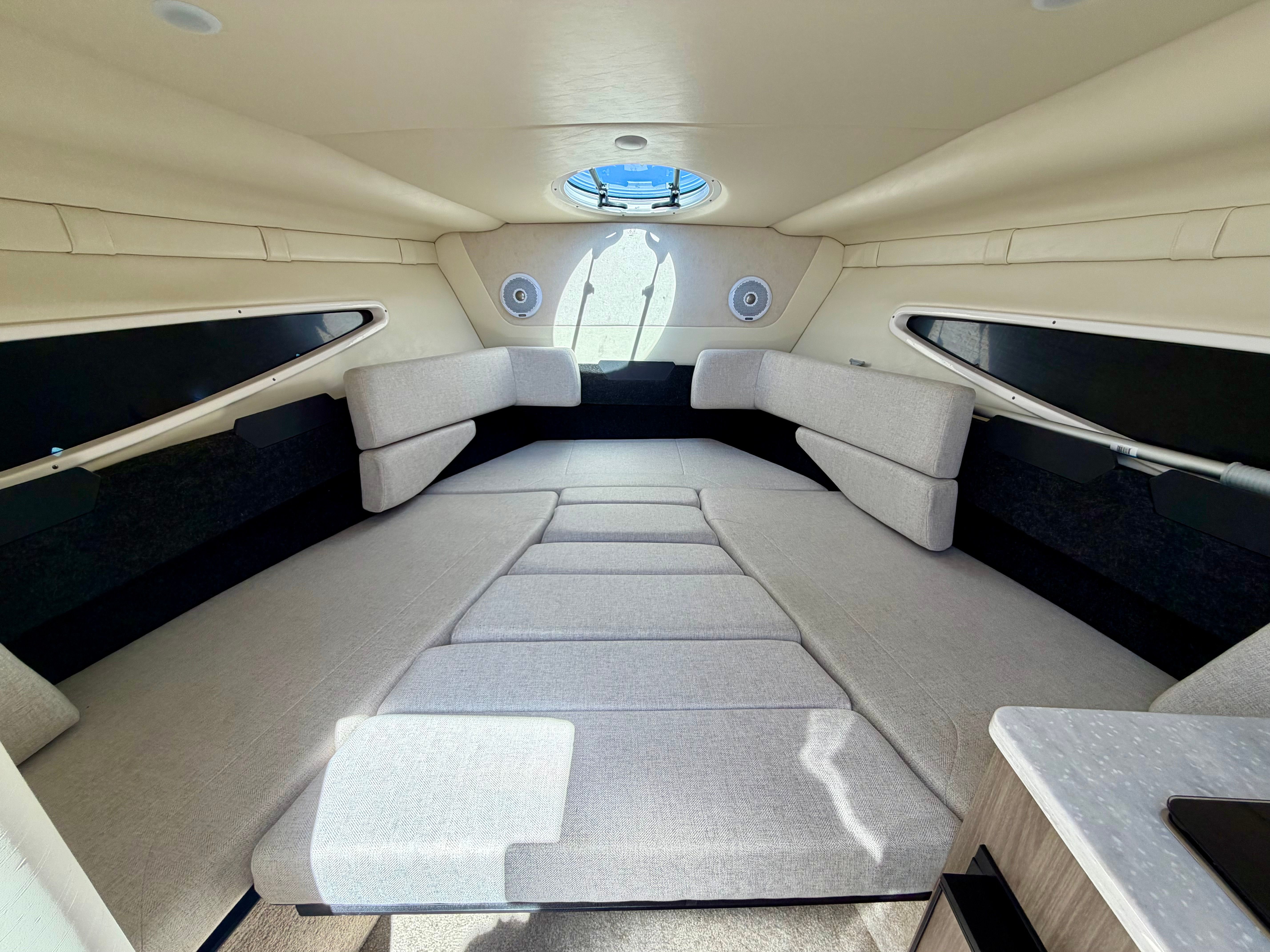 The spacious cockpit is perfect for entertaining, while the well-appointed and tasteful cabin includes a galley, head, and sleeping accommodations for overnight trips. Premium finishes, smart storage, and Regal’s signature attention to detail make this boat a standout. Ideal for weekend getaways or day cruising, she's ready to make memories with a new home.
