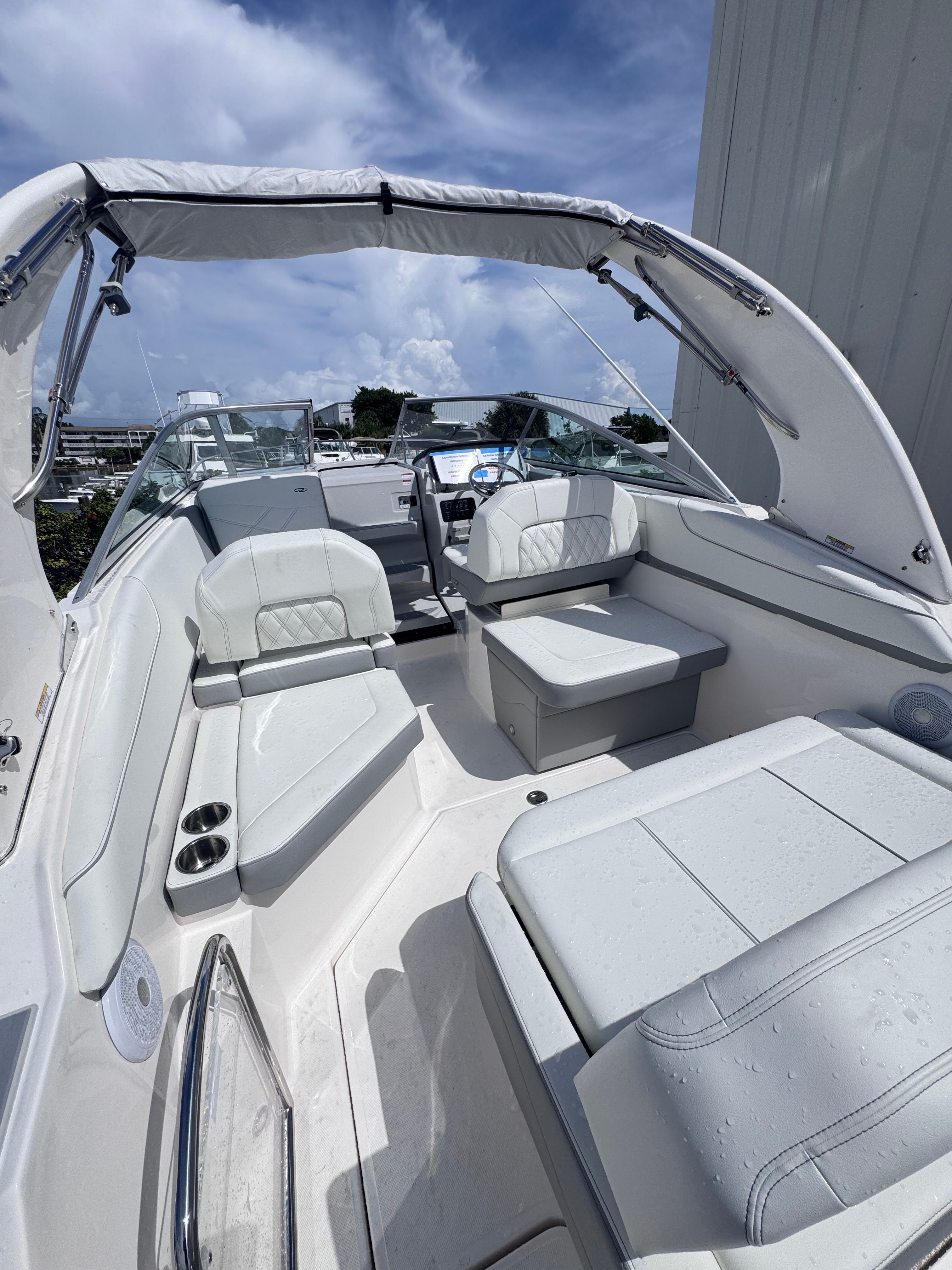 The 2026 Regal 26 XO is loaded with premium features that set it apart from other cruiser boats for sale. The cockpit is protected by a stylish steel grey canvas cover, ensuring your seating area remains clean and comfortable regardless of the weather. The Snowcap and Coastal design elements add a touch of elegance, while the Strato Wind countertops provide a modern and durable surface for food preparation and entertaining.For those who value comfort and convenience, this Regal boat for sale comes equipped with a gas 110V generator and air conditioning, ensuring a pleasant onboard environment even during the hottest summer days. The bow thruster makes docking and maneuvering in tight spaces a breeze, while the hot water heater adds a touch of luxury for extended stays on the water. Every feature is thoughtfully integrated to enhance your boating experience, making the 26 XO a standout choice in the cruiser market.