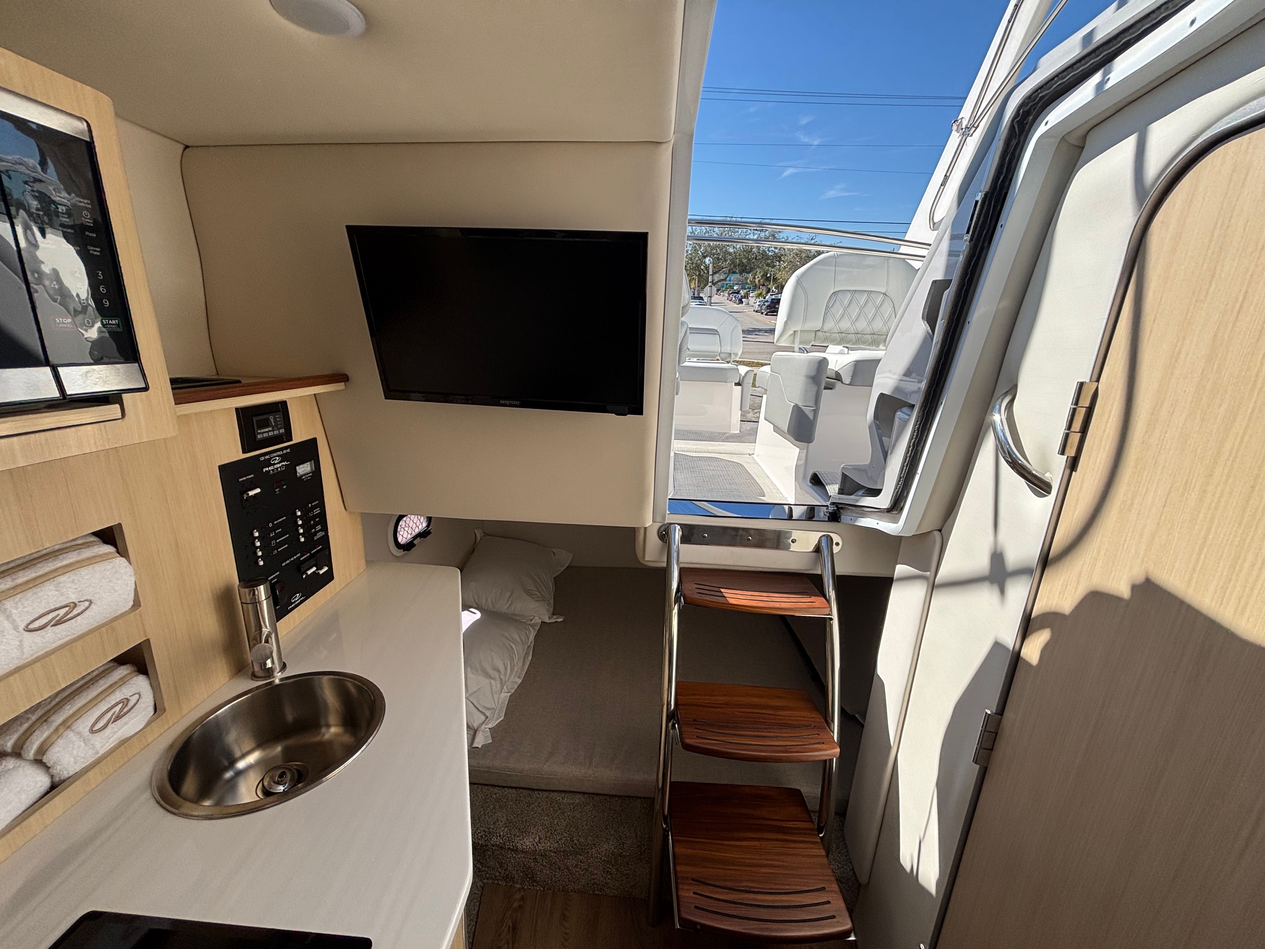 At the heart of the Regal 26 XO is a powerful Yamaha V6 350HP engine with integrated steering, finished in a striking white. This advanced engine delivers impressive horsepower, ensuring smooth acceleration and reliable performance whether you are cruising along the coastline or exploring new waters. The integrated steering system enhances maneuverability, making docking and navigating tight spaces effortless. With just one engine to manage, you benefit from simplified maintenance and efficient operation, allowing you to focus on enjoying your time on the water.