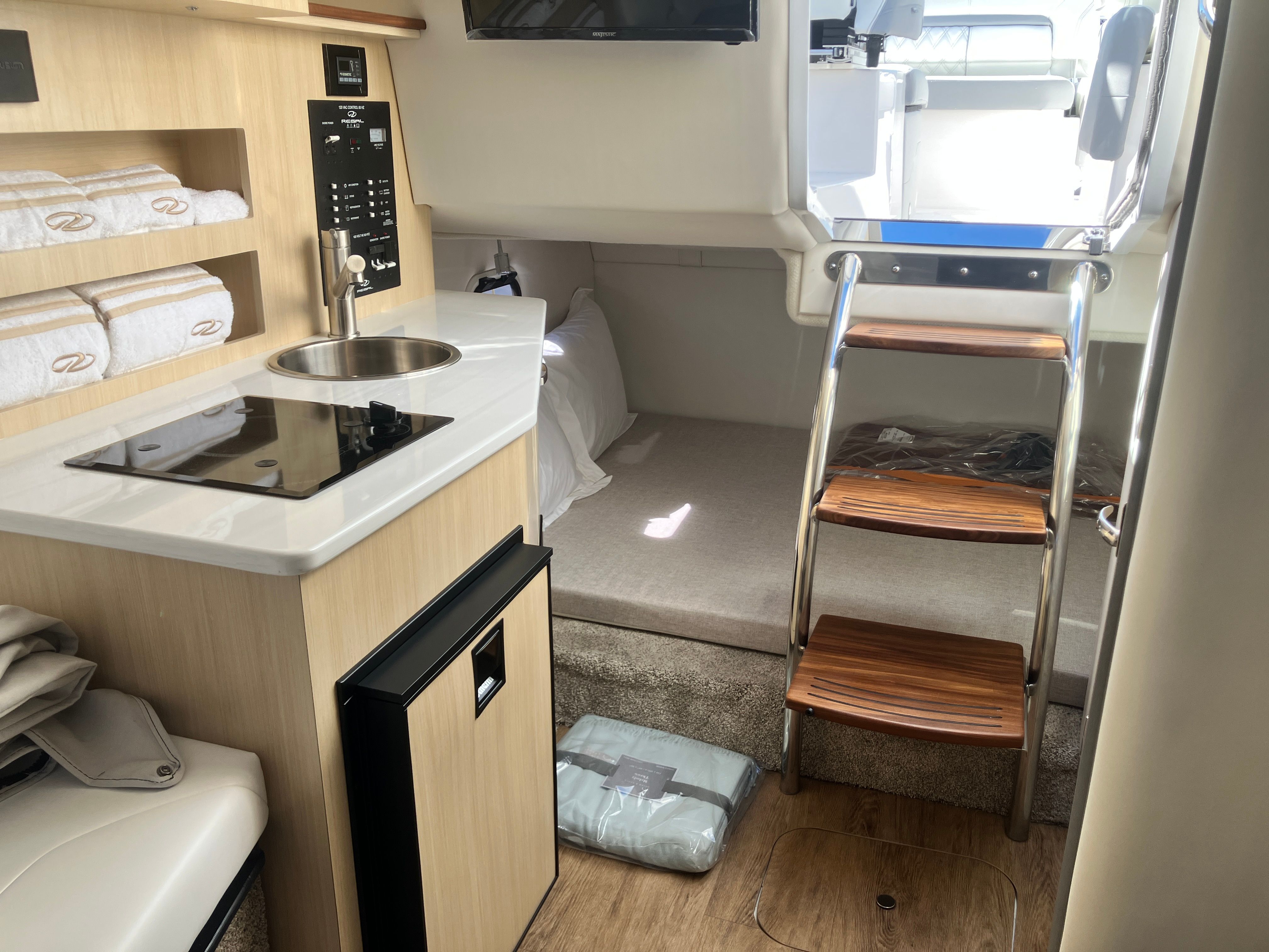 The versatility of the Regal 26 XO makes it the perfect companion for a variety of on-water adventures. Imagine setting out with your family for a day of cruising along the coastline, stopping at secluded beaches for a swim or a picnic. The spacious cockpit and comfortable seating make it easy to entertain guests, whether you are hosting a lively gathering or enjoying a quiet evening under the stars.For fishing enthusiasts, the ample deck space and easy access to the water provide a great platform for casting lines and reeling in the catch of the day. If luxury getaways are more your style, the elegant interior and premium finishes create a relaxing retreat where you can unwind and escape the hustle and bustle of everyday life. The Regal 26 XO is equally at home on calm lakes, winding rivers, or open coastal waters, offering unmatched versatility and performance.