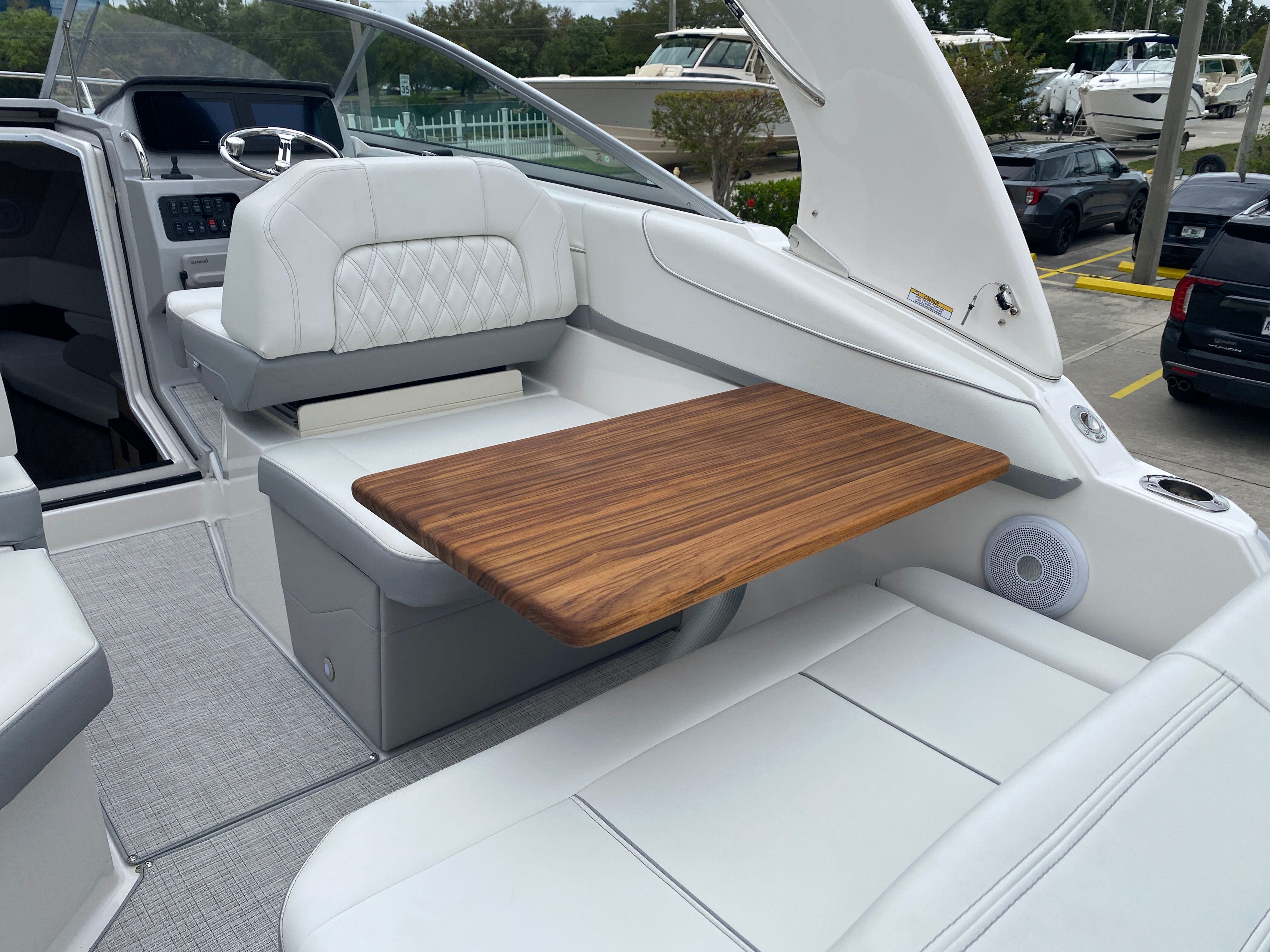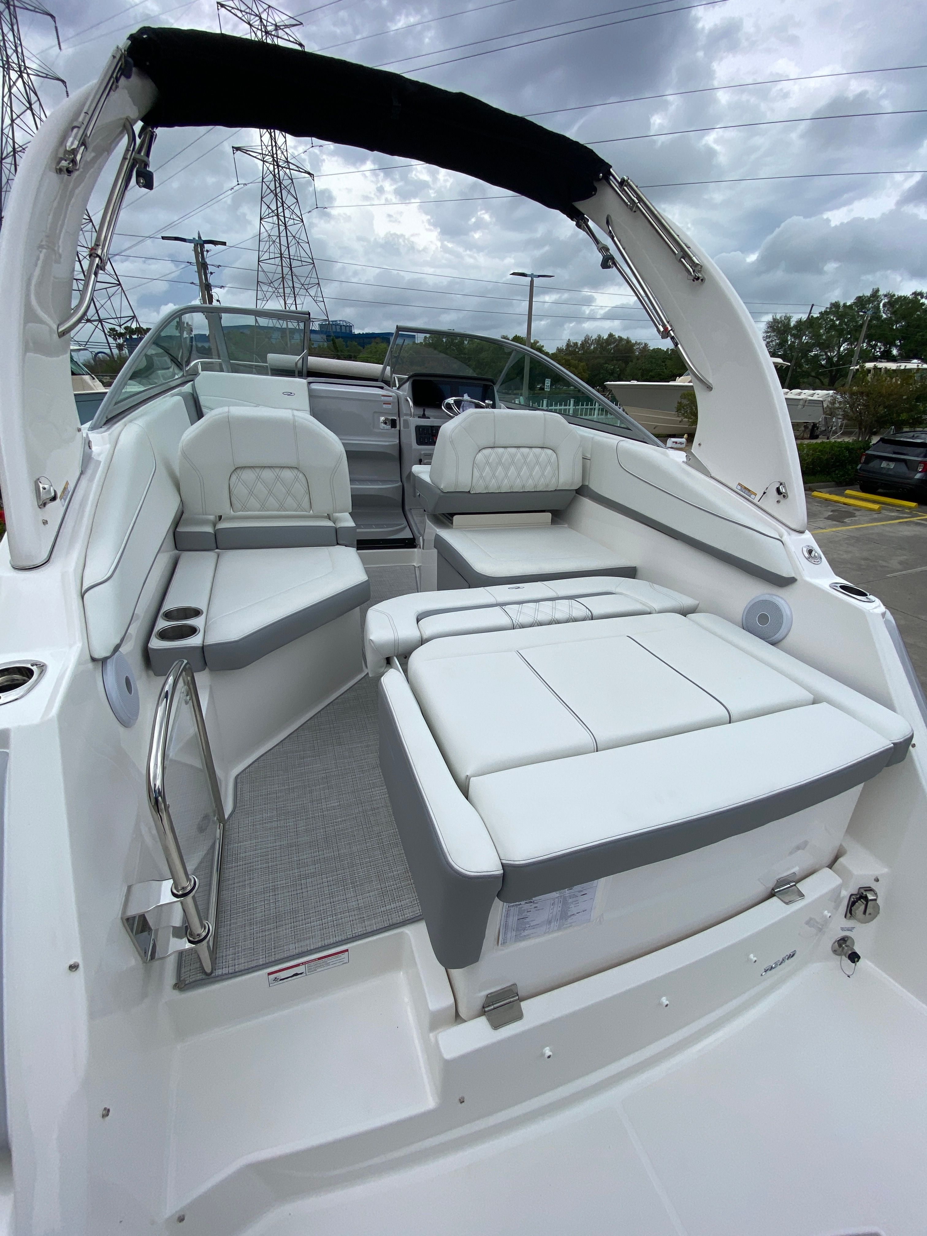 The Regal 26 XO is not just about looks and performance; it is also designed with practicality in mind. The manageable 27.25-foot length makes docking and maneuvering a breeze, even for those new to boating. The efficient engine and smart design contribute to excellent fuel economy, allowing you to explore further without worrying about frequent refueling stops. The included cockpit cover and canvas help protect your investment from the elements, while the Seagrass mat ensures easy cleanup after a day of fun. Whether you are storing gear, preparing for a day trip, or simply enjoying the convenience of a well-designed cruiser, the Regal 26 XO makes ownership easy and enjoyable.