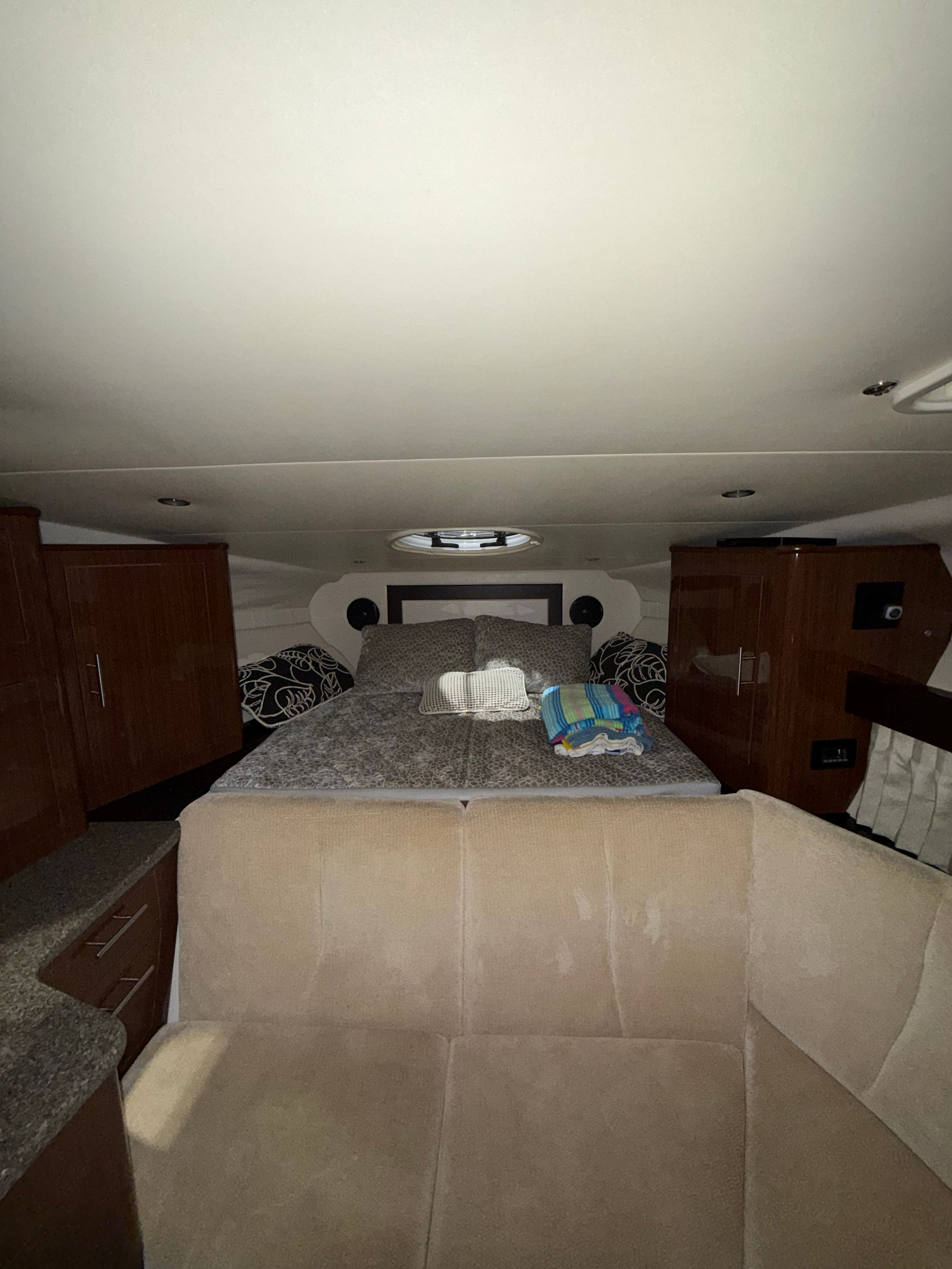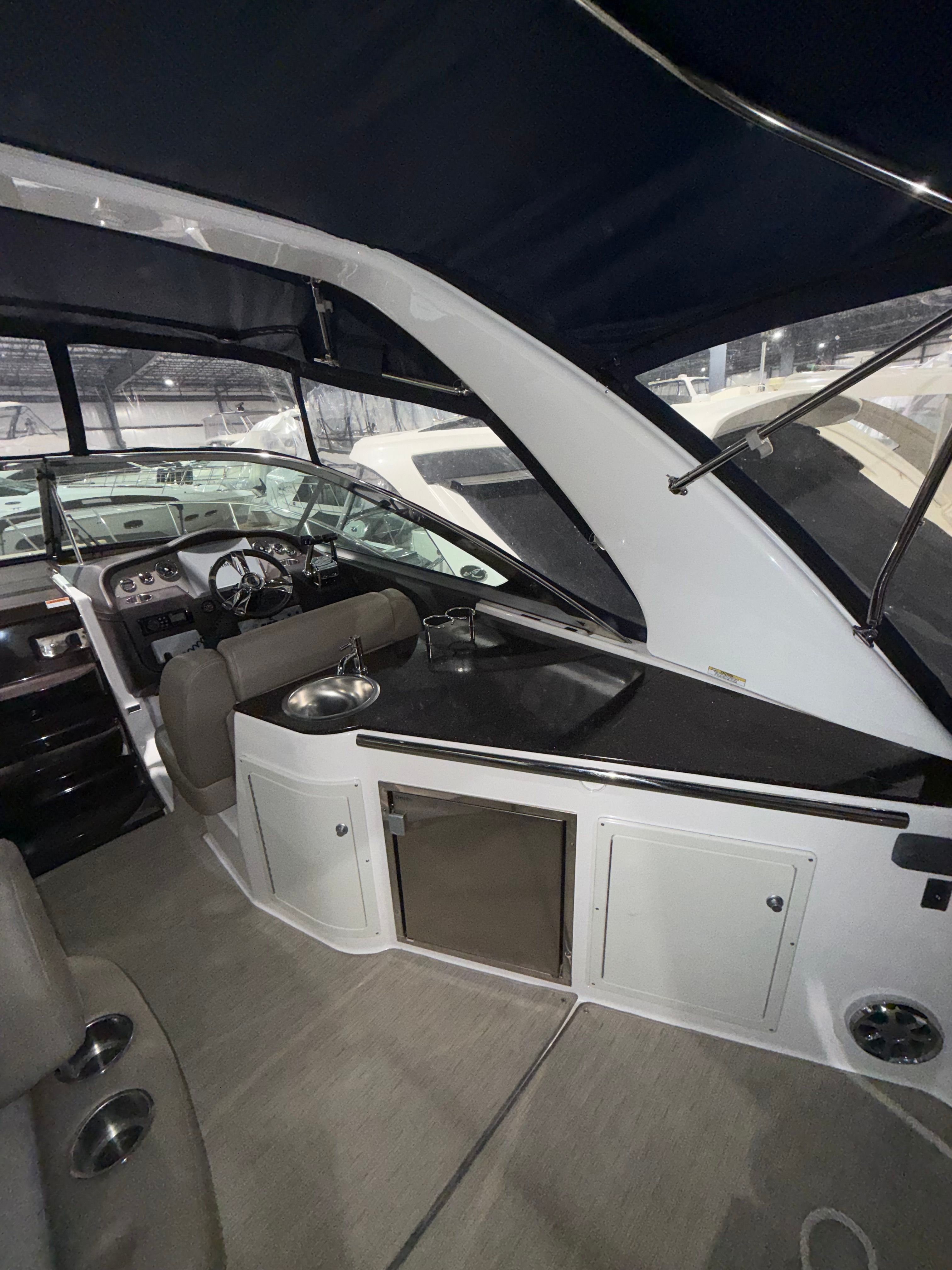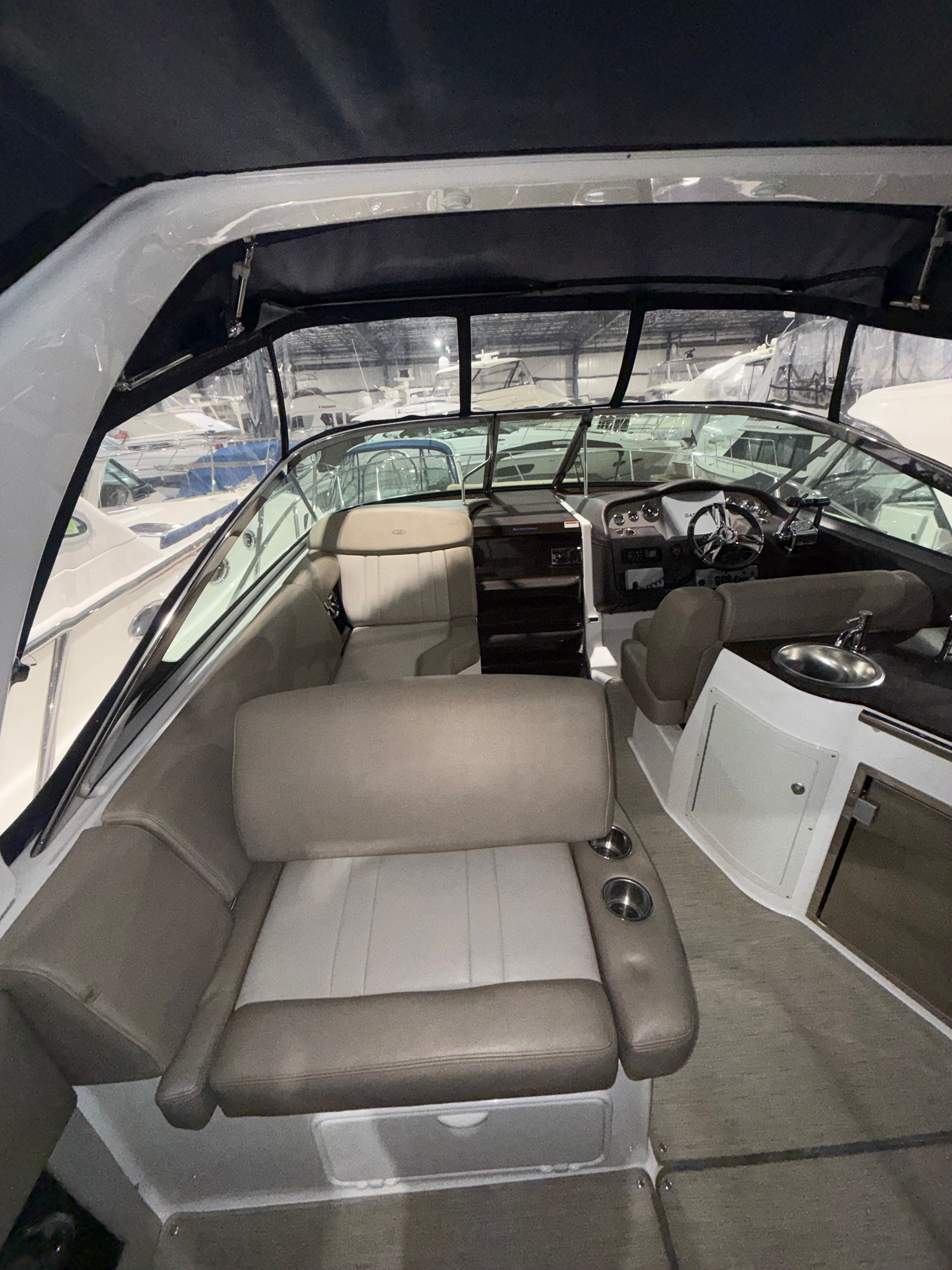 Owning the Regal 32 Express means embracing a lifestyle of fun, relaxation, and social connection. The spacious cockpit and thoughtfully designed seating areas make it easy to host gatherings, share meals, or unwind with loved ones. The aft cabin stateroom offers privacy and comfort for overnight trips, while the versatile bench seating ensures everyone has a place to enjoy the ride. With premium cabinetry and ample storage, you’ll have everything you need for extended adventures without sacrificing comfort or convenience. The camper enclosure and high-quality canvas provide shelter from sun, wind, and rain, allowing you to enjoy your cruiser boat for sale in a variety of weather conditions. The cockpit carpet adds a touch of luxury, making every moment onboard feel special. Whether you’re anchored in a quiet cove or cruising to your favorite destination, the Regal 32 Express delivers the perfect blend of excitement and relaxation.