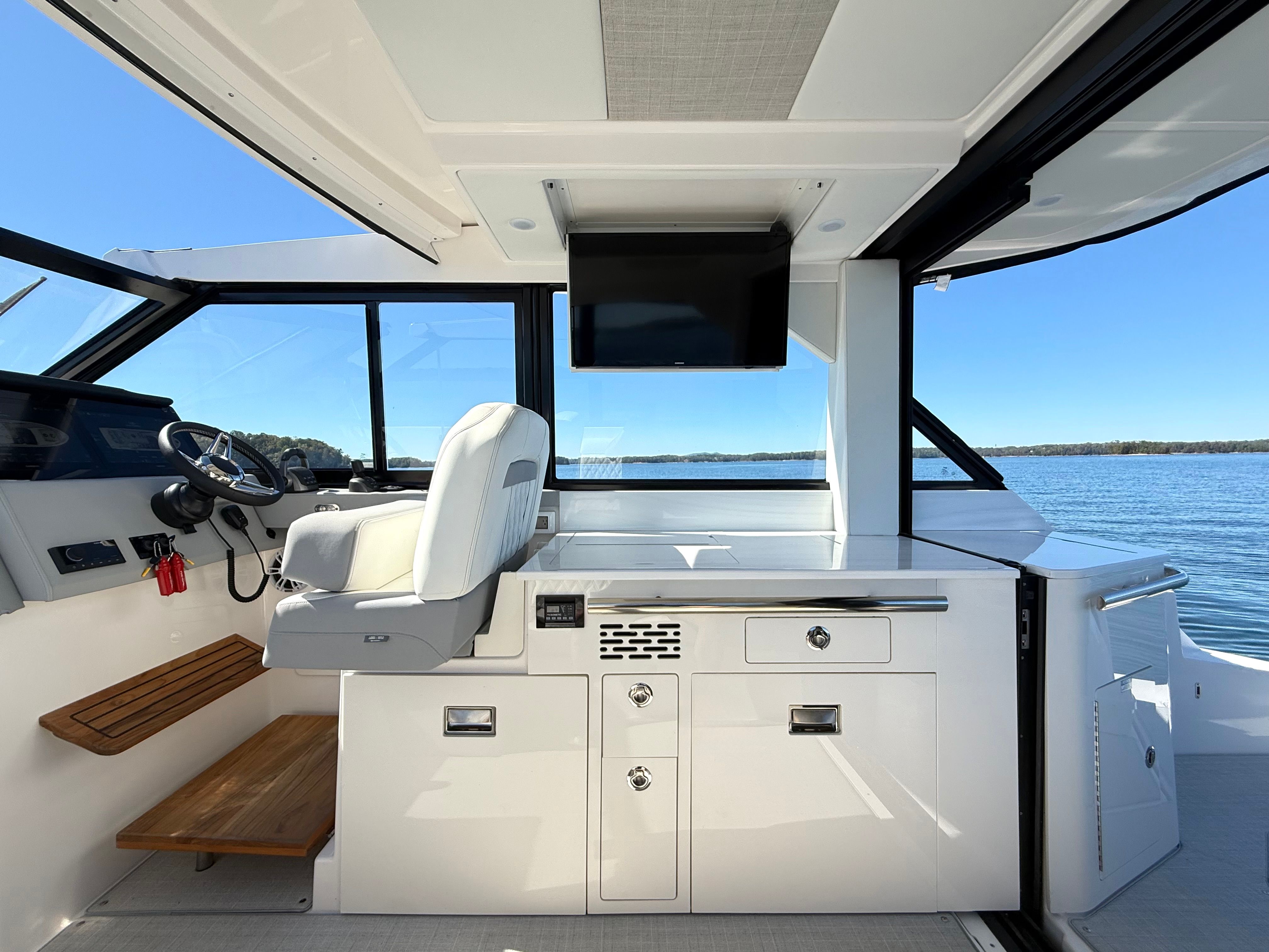 Beyond its luxurious appeal, the Regal 36 Grande Coupe offers practical advantages that enhance the ownership experience. The twin Volvo engines not only provide impressive power but also contribute to efficient fuel consumption, allowing you to travel farther with confidence. The joystick control system simplifies docking, making it easy for both experienced captains and newcomers to handle the yacht in various conditions. Ample storage space ensures that all your gear, supplies, and personal items are neatly organized, while protective covers and enclosures keep the interior and exterior in top condition. These practical features make this Regal boat for sale a smart investment for anyone who values convenience and reliability.