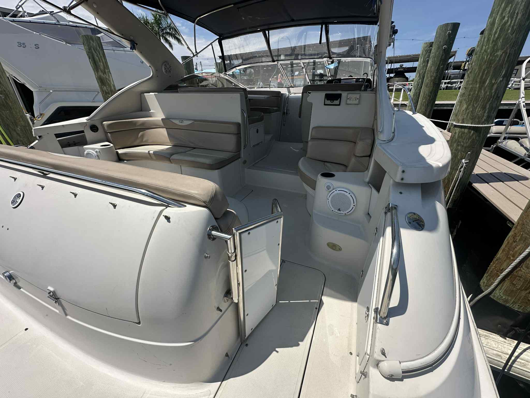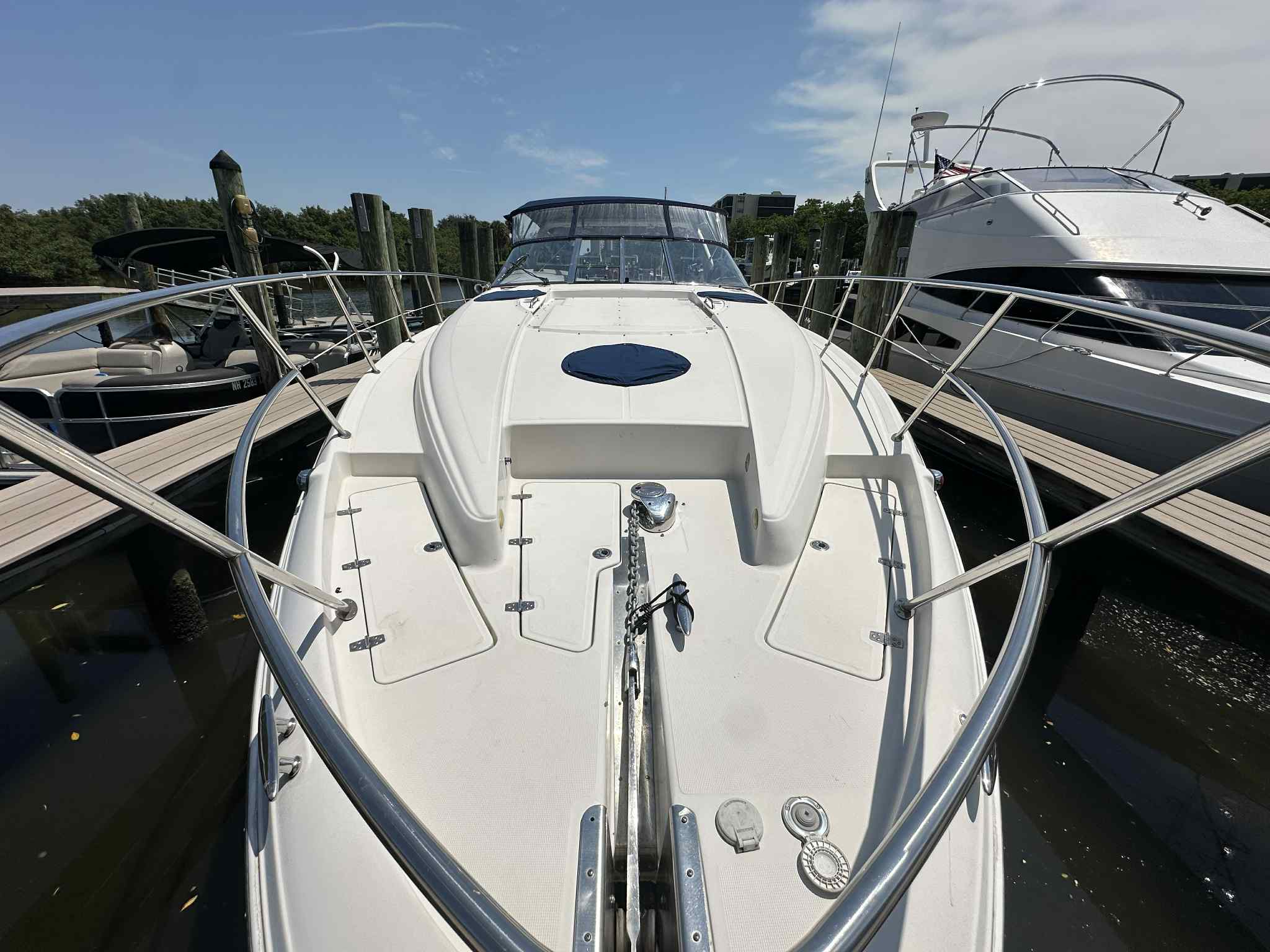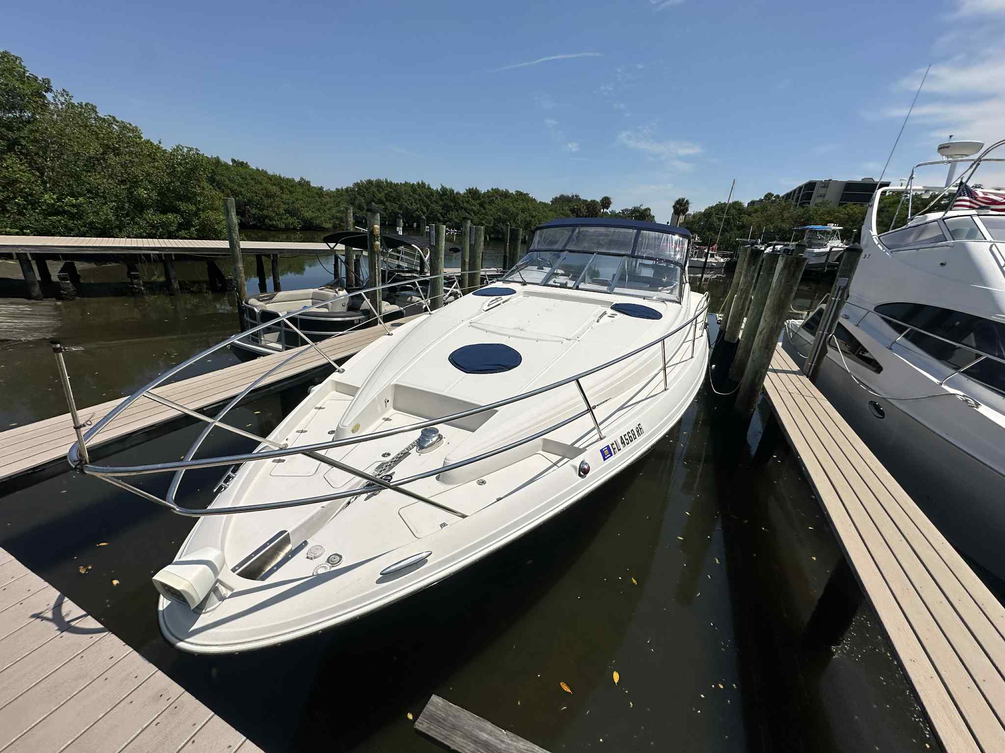 Owning a Regal 4160 Commodore opens the door to a world of fun and adventure. The spacious design makes it easy to host family and friends, whether you’re enjoying a sunny afternoon cruise or anchoring for a swim in a secluded cove. The comfortable accommodations below deck mean you can extend your outings overnight or even for a weekend, turning every trip into a mini-vacation.The powerful twin engines provide the thrill of speed when you want it, while the stable hull design ensures a smooth and comfortable ride even in choppier conditions. This combination of excitement and comfort makes the 4160 Commodore a versatile choice for boaters who want the best of both worlds.